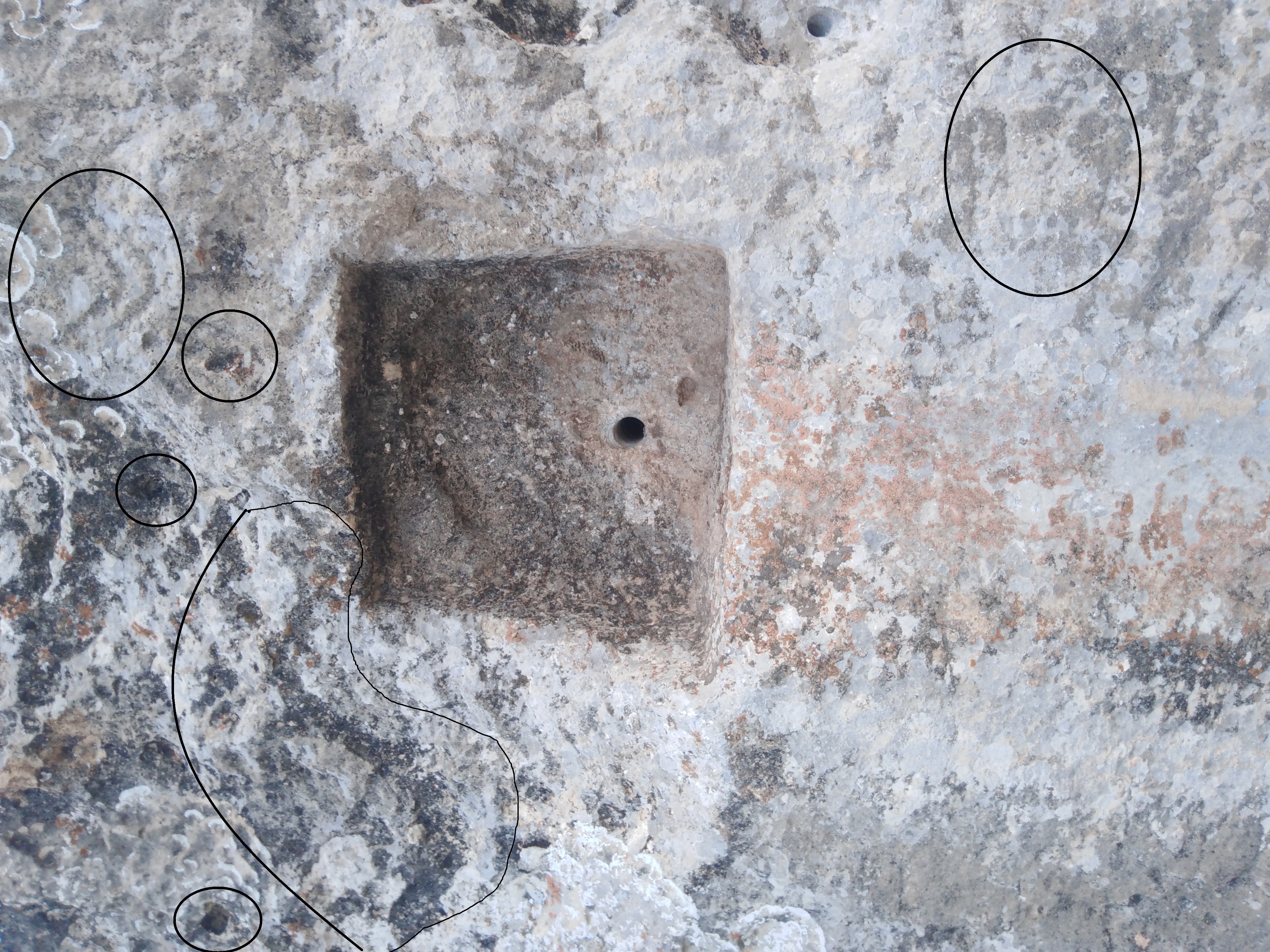 Salam Aleykum. Kare içinde murc izi kaya mezarıdır, müjdesi vardır. Alt tarafda bir murc izi daha var, mezarın o yönde olduğunu düşünüyorum. Alt tarafında boşluk ara cihazla ya çubukla. Karenin altında olmas mühtemeldir mezarın.