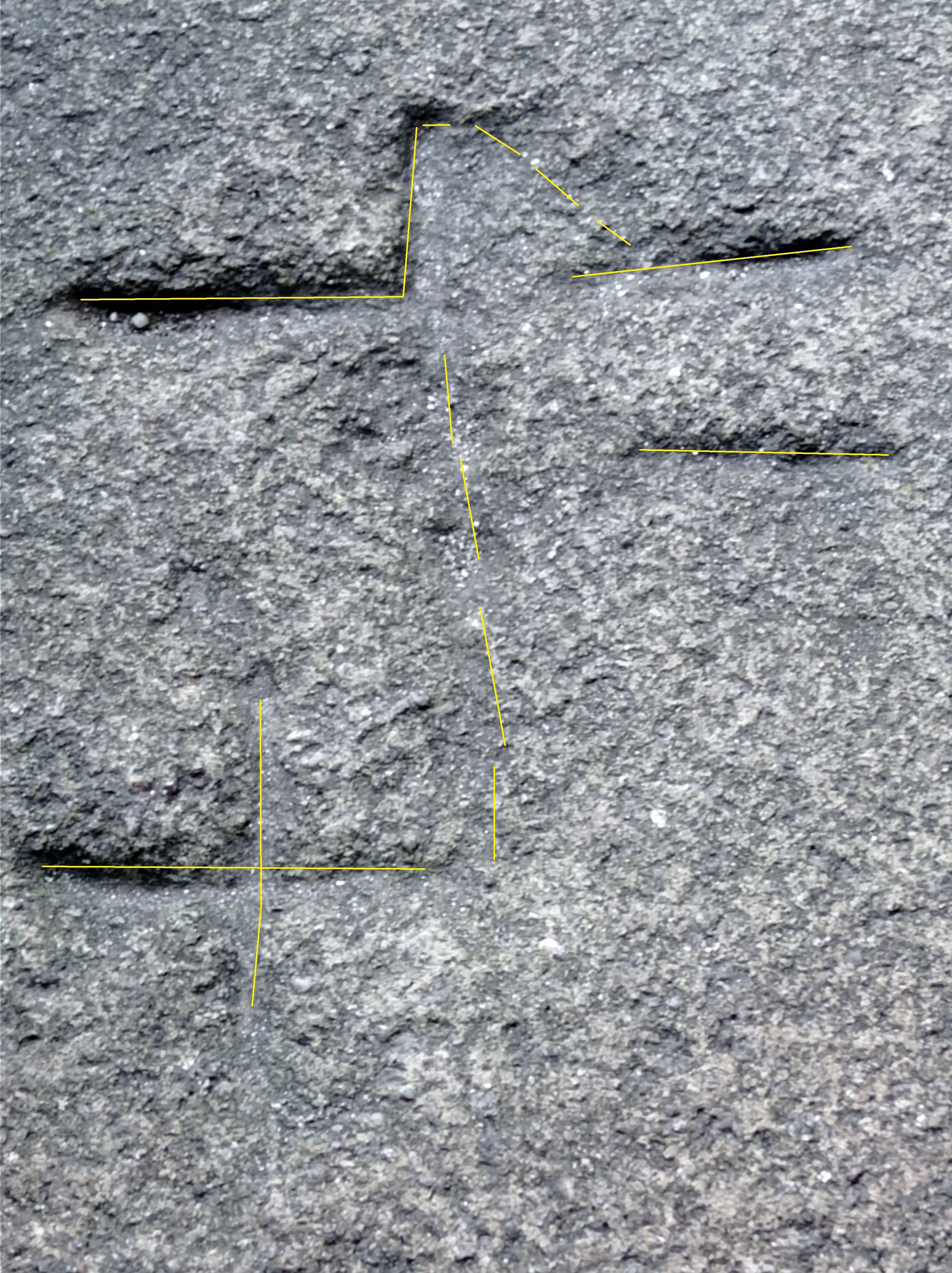 Resim aynen yukledigim gibi ustam ok ile gosterdigin yon kayanin ust kismi, hac veya X yonunde yaklasik 5 mt.'de calisma yaptik ama netice''0'' oldu. 15 adim calismasi aklimaa gelmedi yani yapmadik. O donem bu isaretin diger konumdaki isaretlerimle ilgili oldugunu dusunmustum ama kiremitteki isaretleri cozemeyince bu da arsive kalkti.