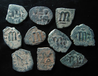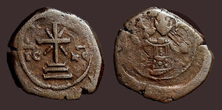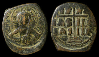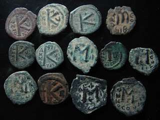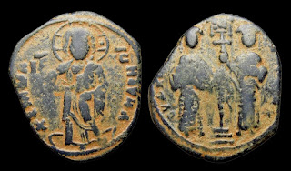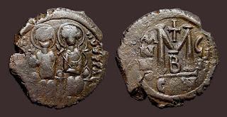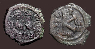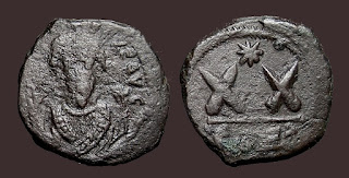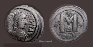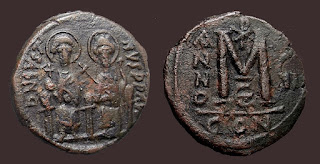 2) Bakir paralarda bazen dönemin ünlü isimleri tasvir edilerek Bizans topraklarının birliği üzerinde imgelemelere de başvurulmuştur. Bu işlemelere sahip paraların değerleri biraz daha fazladır. Aşağıdaki fotoğrafta detaylar mevcuttur: