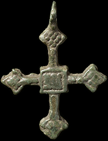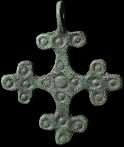 | [HR][/HR][FONT=Trebuchet MS, Geneva, Arial, Helvetica, SunSans-Regular, sans-serif][SIZE=-1]Ortaçağ Avrupa, c. MS 9-12. Yüzyıl. "Beş Yara Mesih" konfigürasyonunda beş dairesel element içeren yuvarlatılmış terminalli küçük bronz çapraz. H: 27 mm (1 1/16 ") Süspansiyon halkası bozulmadan fakat aşınma / kullanımdan çok ince Koyu kahverengi patina Ex-Thomas Bentley Cederlind emlak, Portland, OR # JM2244: 125 $[/SIZE][/FONT] | [HR][/HR][FONT=Trebuchet MS, Geneva, Arial, Helvetica, SunSans-Regular, sans-serif][SIZE=-1]Ortaçağ Avrupa, c. MS 8-11. Yüzyıl. Bronz çapraz kolye. Delikli nokta "Beş Yara Yaratan" tasarımı ve süslü terminallerle süslenmiştir. Koyu zeytin yeşili patinalı, süspansiyon halkası kırık. H: 37 mm (1 1/2 ") Ex-Thomas Bentley Cederlind mülkiyeti, Portland, OR # JM2245: 150 $[/SIZE][/FONT] | [HR][/HR][FONT=Trebuchet MS, Geneva, Arial, Helvetica, SunSans-Regular, sans-serif][SIZE=-1]Ortaçağ Avrupa, c. MS 8-11. Yüzyıl. Bronz çapraz kolye. Delikli nokta "Beş Yara Yaratan" tasarımı ve süslü terminallerle süslenmiştir. Toprak dolgularıyla zeytin yeşili patinası. 40 mm