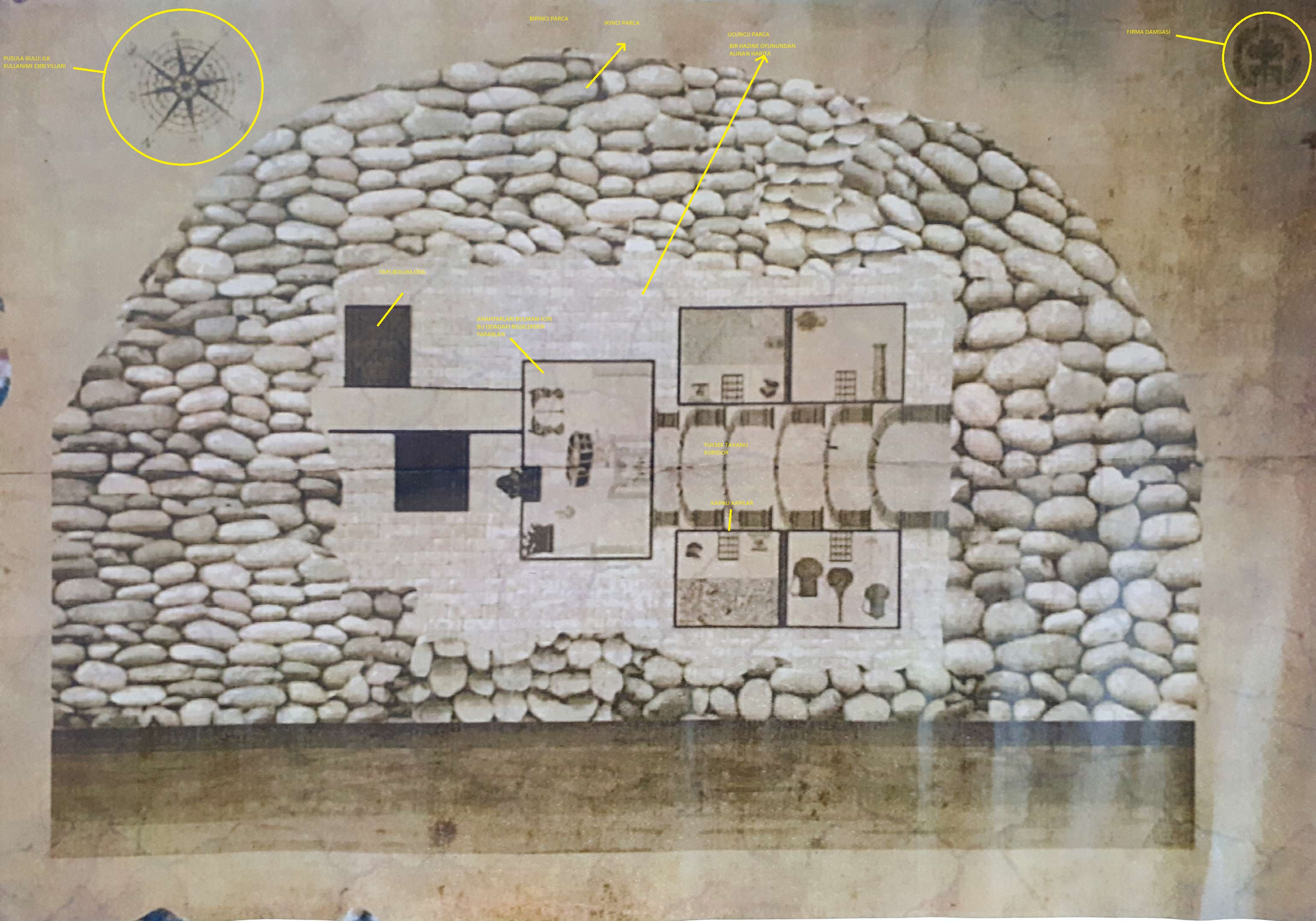 Harita, malzemenin tek bir noktada olmadığını, statüye göre odalara dağıtıldığını gösteriyor:
