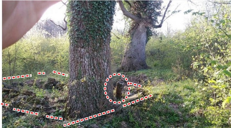 @dardanos ustam bak şimdi o taş dizilmeleri eskiden vardı dağıldıkca düzeltilmiş. Sütun taşının olduğu ağaçla karşıdaki büyük ağacın arasında da bir oda açılmış eskiden ama boş oda. Sütun taşının olduğu ağaç ile resimde görünmeyen 2 ağaç daha var üçleme yapıyor aşağıda attığım resmi büyütürseniz bu bariz görünüyor. Fakat yakın çevrede başka ağaçlarda varmış eskiden zamanla kurumuş yada Yıldırım düşmesinden dolayı kesilmiş onun içinde üçleme o ağaçlarla bozuluyor ama ortada üçleme varsa o sütunun yanındaki açağlar üçleme. Diğer büyük meşe ağacı kadar yaşları olmasada üçleme yapıyor. Mezarlık alanının yukarıdan çekilmiş resmini bulursam onuda atarım üçgen benzer tarafı var arazinin