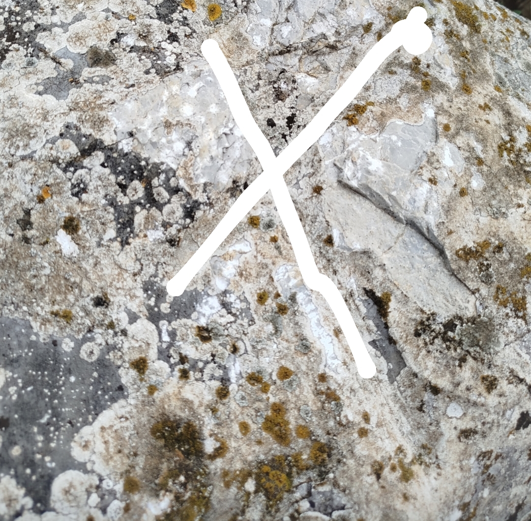 x işareti uzunluğundan kısasına kadar çizdim. Eski Yunan yeri bir höyüğün yamacında bulunuyor bir kardeşim bu işaretin biraz altında makine ötüyor dedi orayada gittim bana tuzaklı koyma taş gibi geldi ama herhangi bir kol o tarafı göstermiyor yardımcı olur musunuz . İşarette nokta gibi koyduğum yerde murç izi var.