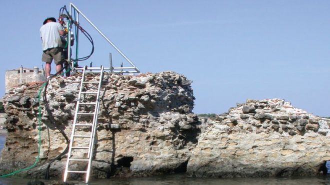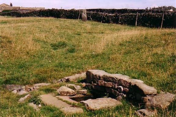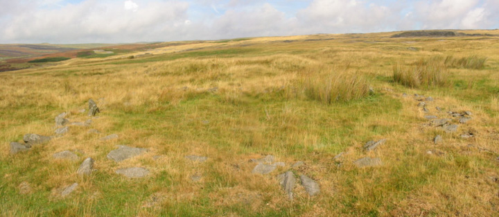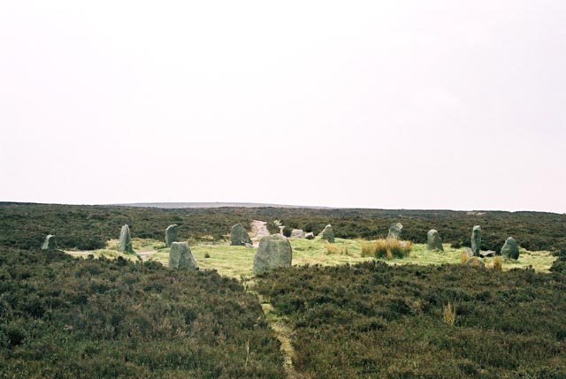 Menwith Hill dinleme istasyonu, taşın sağ üst kısmındaki ufukta görülebilir.