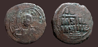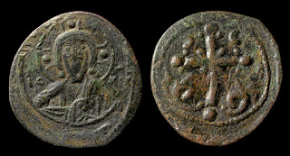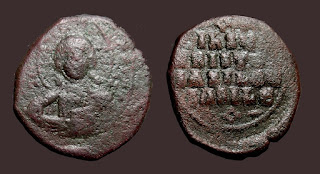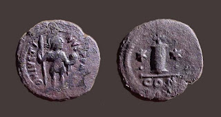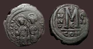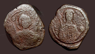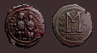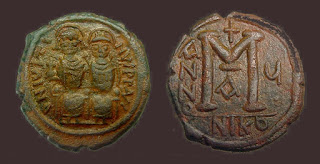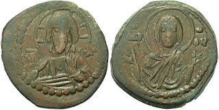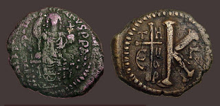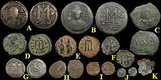 2) Bakir paralarda bazen dönemin ünlü isimleri tasvir edilerek Bizans topraklarının birliği üzerinde imgelemelere de başvurulmuştur. Bu işlemelere sahip paraların değerleri biraz daha fazladır. Aşağıdaki fotoğrafta detaylar mevcuttur: