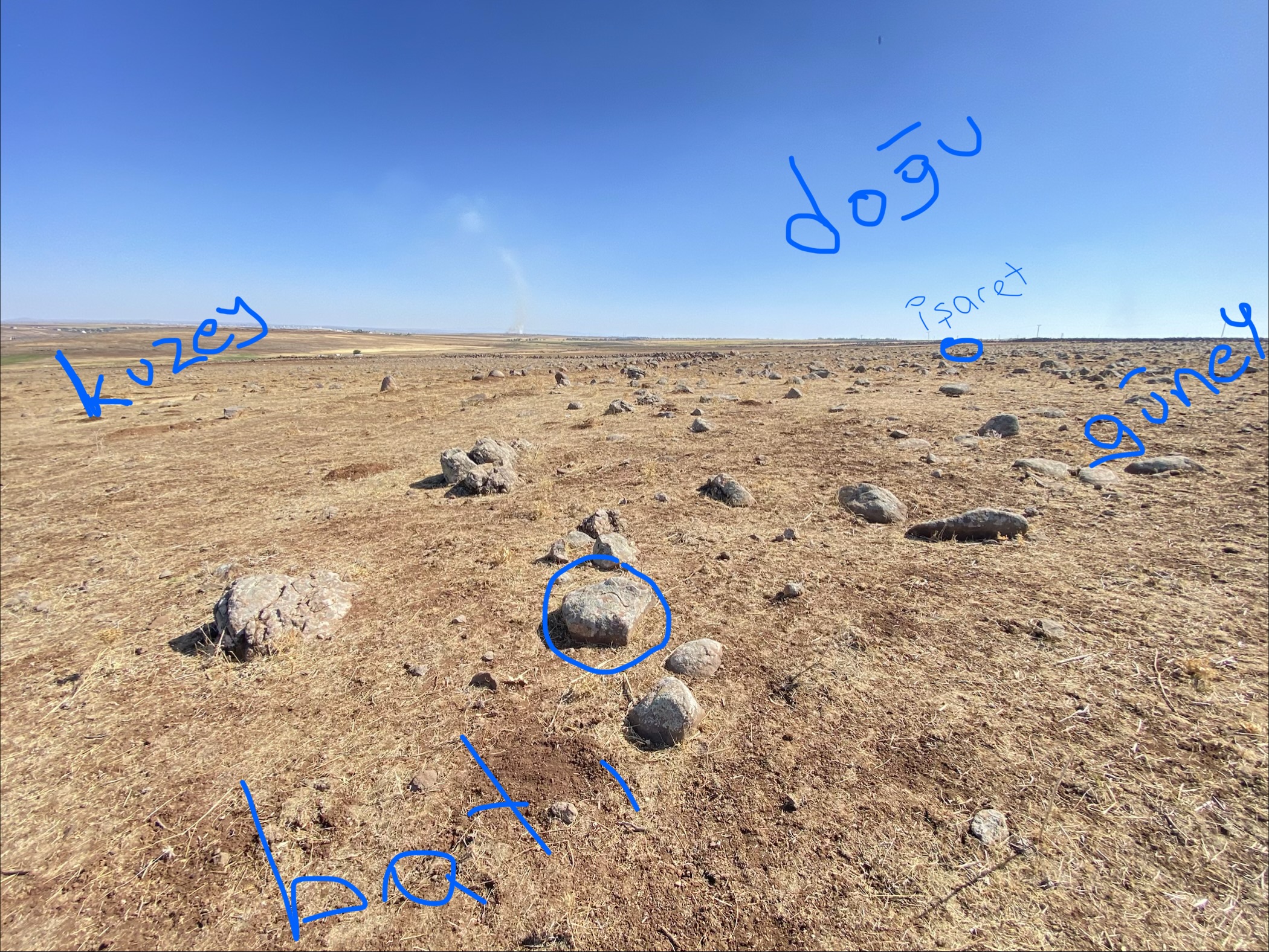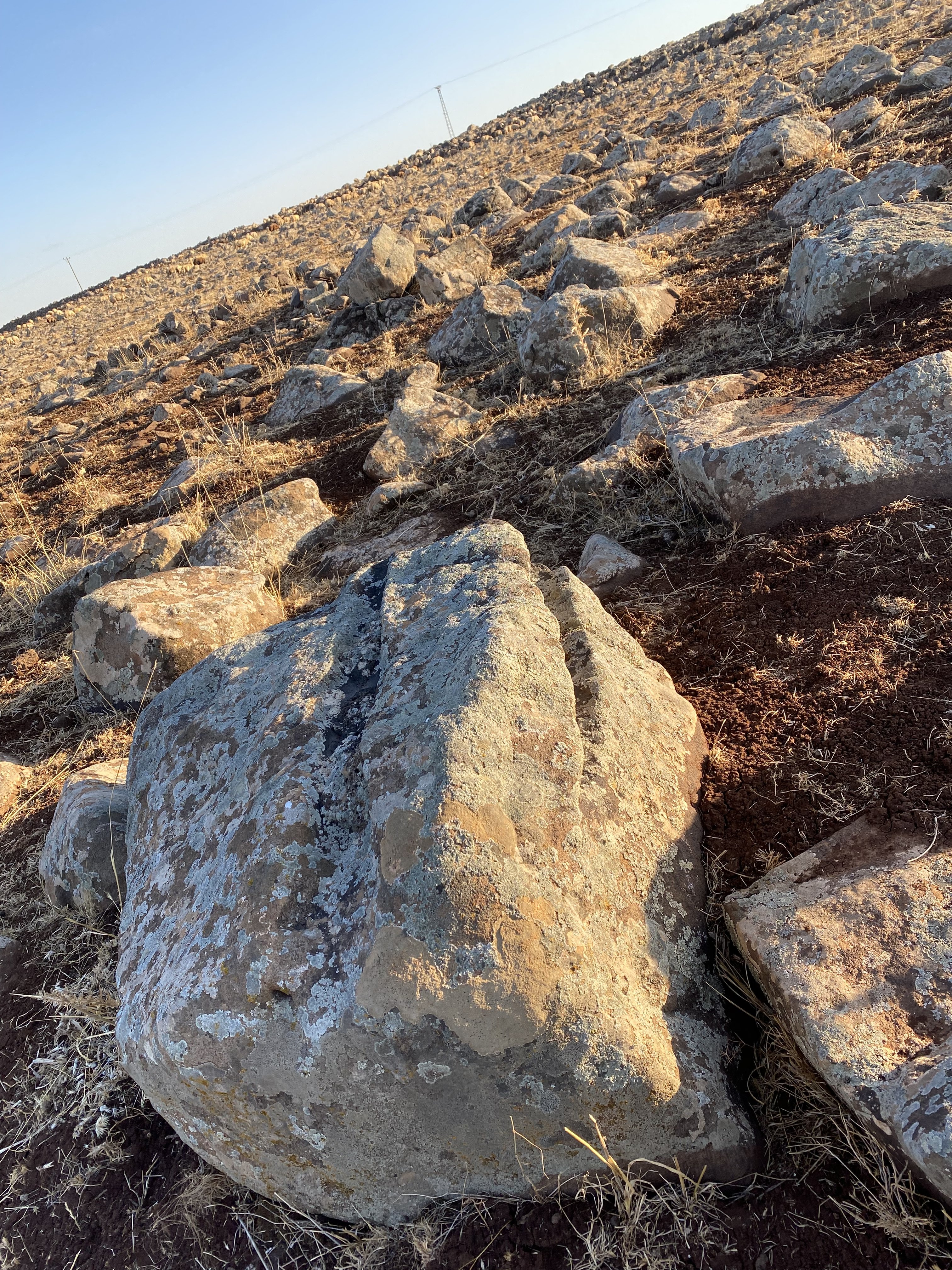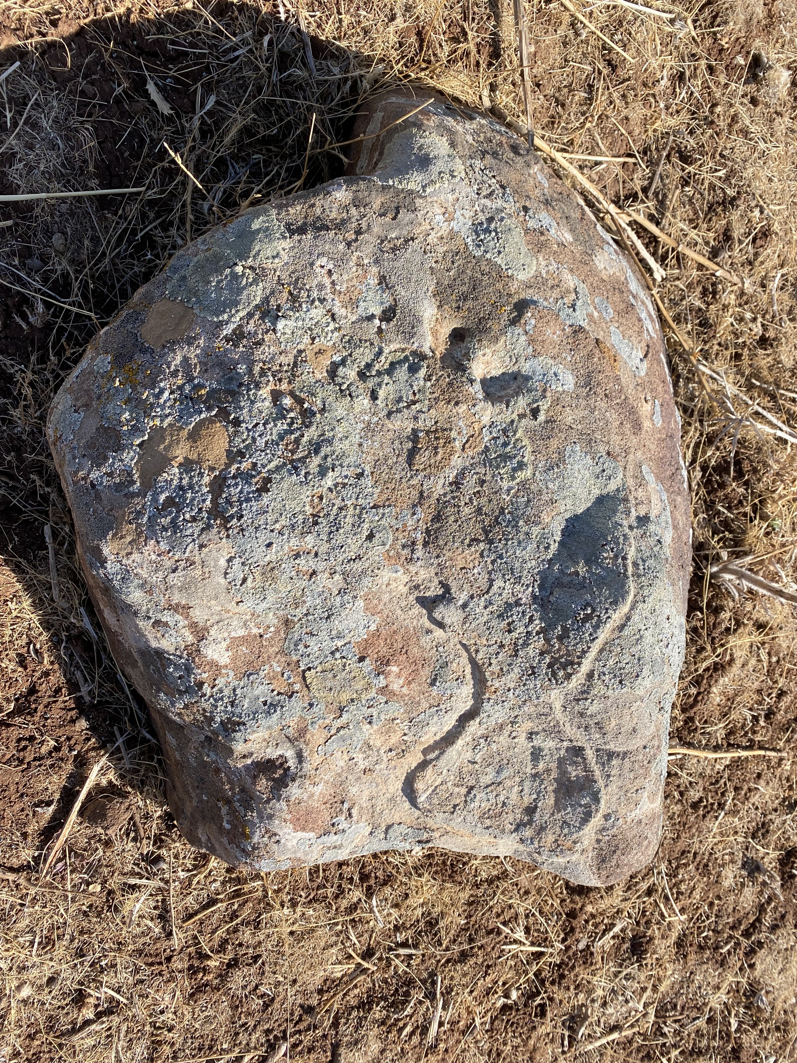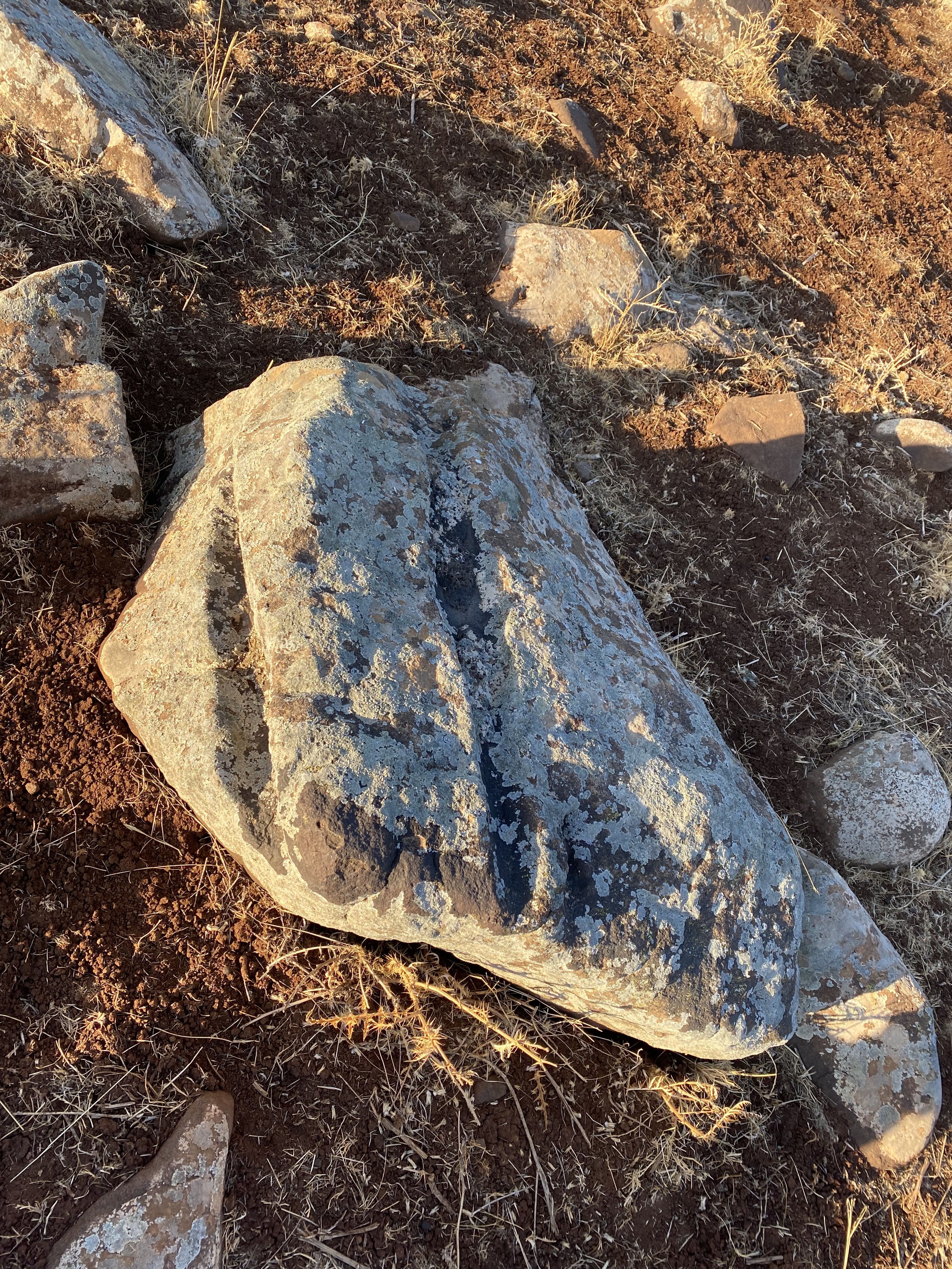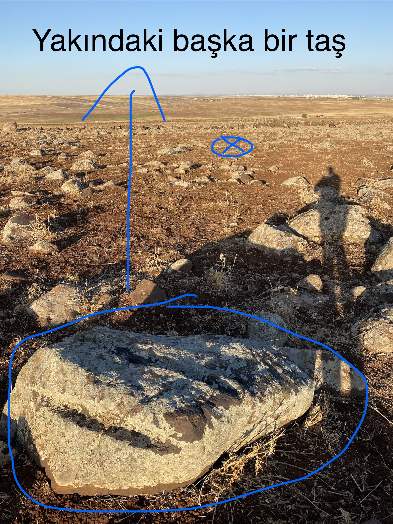 Toprak altında kalması normal zamanla mutlaka toprak birikiyor katman yükseliyor. Yani aslında sakladıkları gizledikleri için değil. En azından bunlar öyle değil... Zaten bu taşın zamanında orijinal duruşu da böyle değilmiş. Yönü biraz değişmiş. Çünkü tam Batı'ya yollamazdı normal şartlarda... Batı'ya gönderme sebebi o taşın zamanında yerinden oynatılmış olmasından dolayıdır.