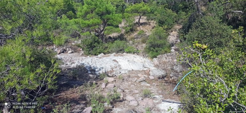 Ve bu çanakların biraz ilerisinde bir girinti var doğal oluşum gibi geldi bana aşağıya su iniyor gibi bununda onlarla ilgisi olma ihtimali varmıdır ustamaslında bu tip büyük oymaların mezarları çok uzağında olmazlar. Ne güzel kuyuyu bulmuşsun oradaki mezarlarıda bulman gerekir.
