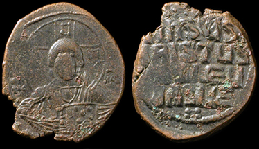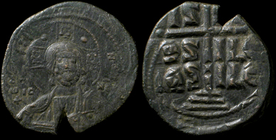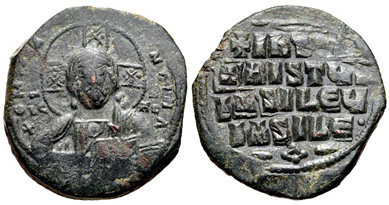 [SIZE=-1]1055 AD - Konstantin IX, 1042 Reign. D Sınıfı bronz Follis.