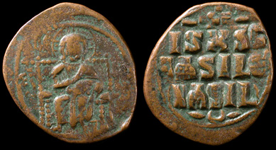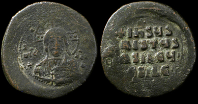 976 - MS John I, 969 Reign. A1 Sınıfı bronz Follis. İncil kitabında, + EMMANOVHA IX-XC ile karşı karşıya İsa. rev: dört satır IhSUS \ XRISTUS \ bASILEU \ Basile. Siyah patina güzel kırmızı-kum!Kocaman 31x33 mm. [/SIZE][SIZE=-1]# 424650: $ 110[/SIZE]
