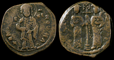 [SIZE=-1]Bizans İmparatorluğu. Constantine X Dukas zamanı ve onun imparatoriçe Eudocia 25 Aralık 1059-21 Mayıs 1067 AD.Mükemmel bronz Follis. Mesih üç basamakla üzerine çarpı ile Labarum tutarak, ayakta, sağ sol, Constantine ile ilgili İncil Kitabı, + EMMANOVHL IC-XC / Eudocia tutan, bakan ayakta. Her taç ve Loros giyer. Mükemmel arsız / kahverengi patine, keskin detay. Bu olsun yaklaşık olarak iyi! ref: 1853 Sararmış, BMC 18-31. 27 mm, 8.44 g. ex-Frank S. Robinson, NY. # CB2047: 250 TL[/SIZE] | [HR][/HR][SIZE=-1] [/SIZE][SIZE=-1]1055 AD - Konstantin IX, 1042 Reign. D Sınıfı bronz Follis.