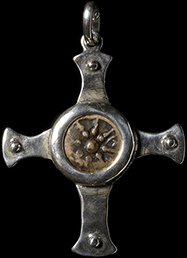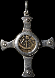 | [HR][/HR][FONT=Trebuchet MS, Geneva, Arial, Helvetica, SunSans-Regular, sans-serif][SIZE=-1]Ortaçağ Avrupa, c. MS 9-12. Yüzyıl. "Beş Yara Mesih" konfigürasyonunda beş dairesel element içeren yuvarlatılmış terminalli küçük bronz çapraz. H: 27 mm (1 1/16 ") Süspansiyon halkası bozulmadan fakat aşınma / kullanımdan çok ince Koyu kahverengi patina Ex-Thomas Bentley Cederlind emlak, Portland, OR # JM2244: 125 $[/SIZE][/FONT] | [HR][/HR][FONT=Trebuchet MS, Geneva, Arial, Helvetica, SunSans-Regular, sans-serif][SIZE=-1]Ortaçağ Avrupa, c. MS 8-11. Yüzyıl. Bronz çapraz kolye. Delikli nokta "Beş Yara Yaratan" tasarımı ve süslü terminallerle süslenmiştir. Koyu zeytin yeşili patinalı, süspansiyon halkası kırık. H: 37 mm (1 1/2 ") Ex-Thomas Bentley Cederlind mülkiyeti, Portland, OR # JM2245: 150 $[/SIZE][/FONT] | [HR][/HR][FONT=Trebuchet MS, Geneva, Arial, Helvetica, SunSans-Regular, sans-serif][SIZE=-1]Ortaçağ Avrupa, c. MS 8-11. Yüzyıl. Bronz çapraz kolye. Delikli nokta "Beş Yara Yaratan" tasarımı ve süslü terminallerle süslenmiştir. Toprak dolgularıyla zeytin yeşili patinası. 40 mm