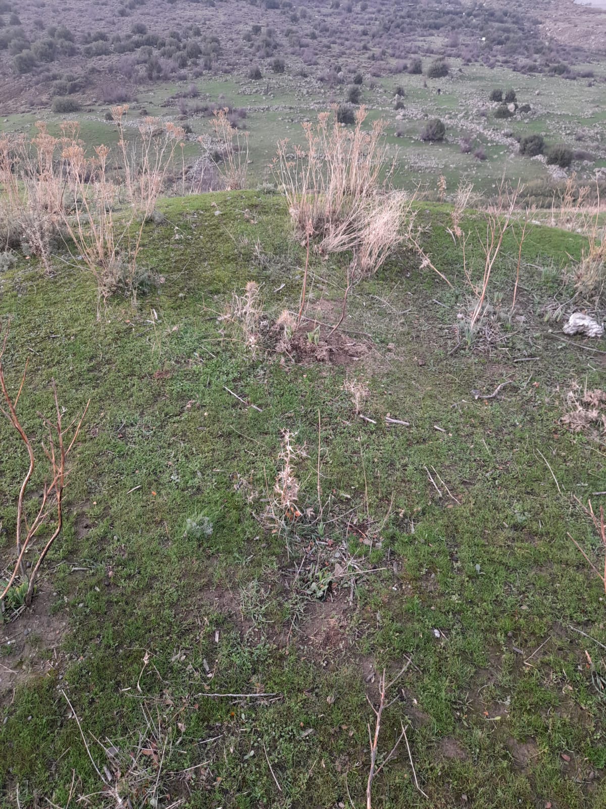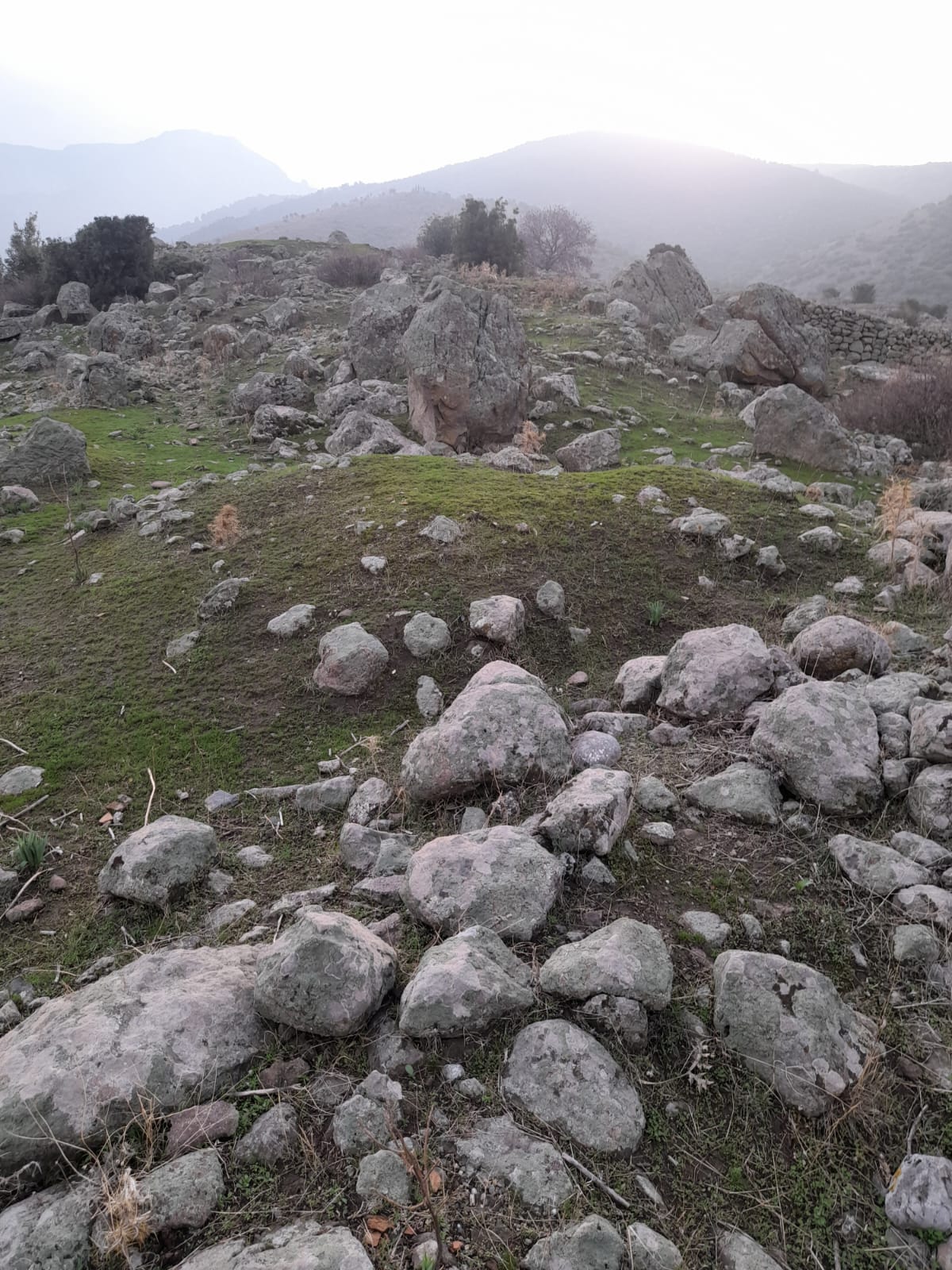Arazi moloz ve mıcırdan geçilmiyor, ufak tefek yığmalar var evet fakat burada hedef yığma değil,zemin altı kapaklı mezarlar olmalı, küçük tek loculus tip,mekandaki yarım kalmış kesim izleri bunu kanıtlar nitelikte.
