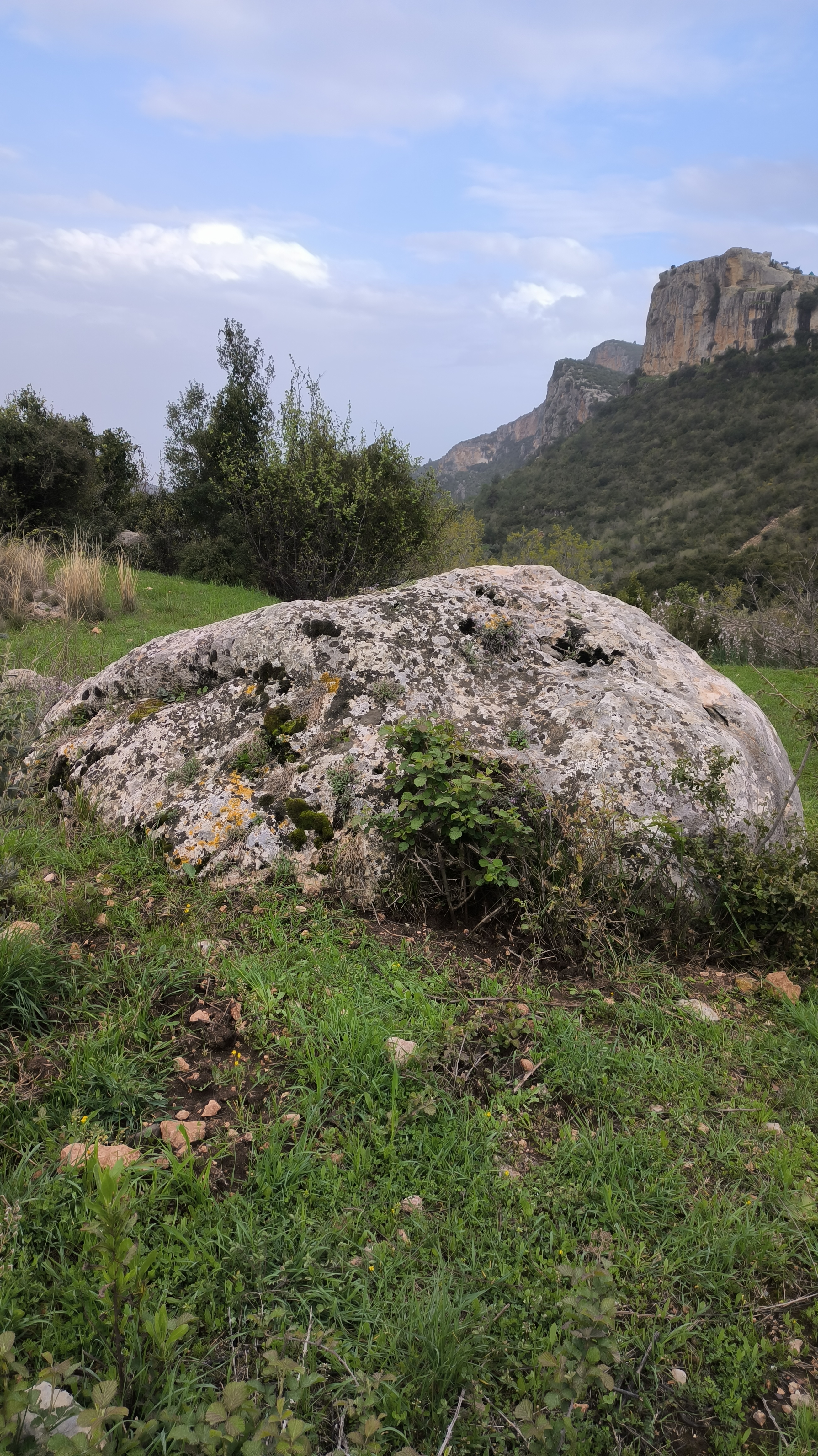 Taşın önünde başlayan boşluğu takip ettim boşluk düz hat şeklinde gidiyordu ortalama 100 adım sonra boşluk sol tarafa doğru kırdı 20 adım daha düz hat şeklinde devam ettim büyük bir kayada bitti Kaya'nın yüzeyini inceledim ve bi kaç adet işaret buldum sizlere iletiyorum resimleri ve videoda ise koltuktan itibaren o alana kadar nasıl gittigimi gösterdim