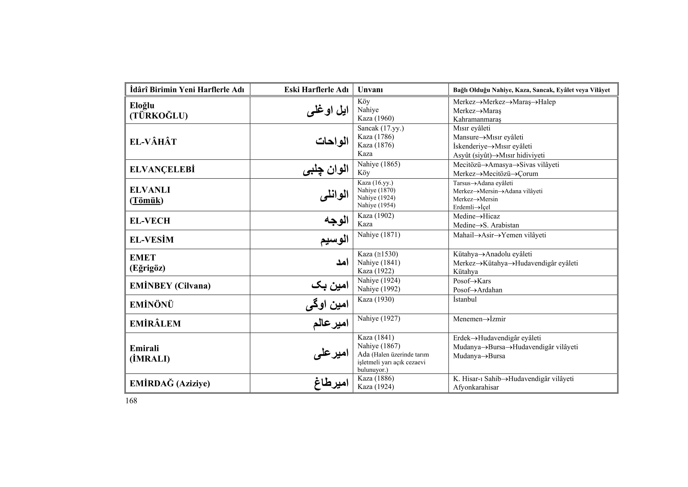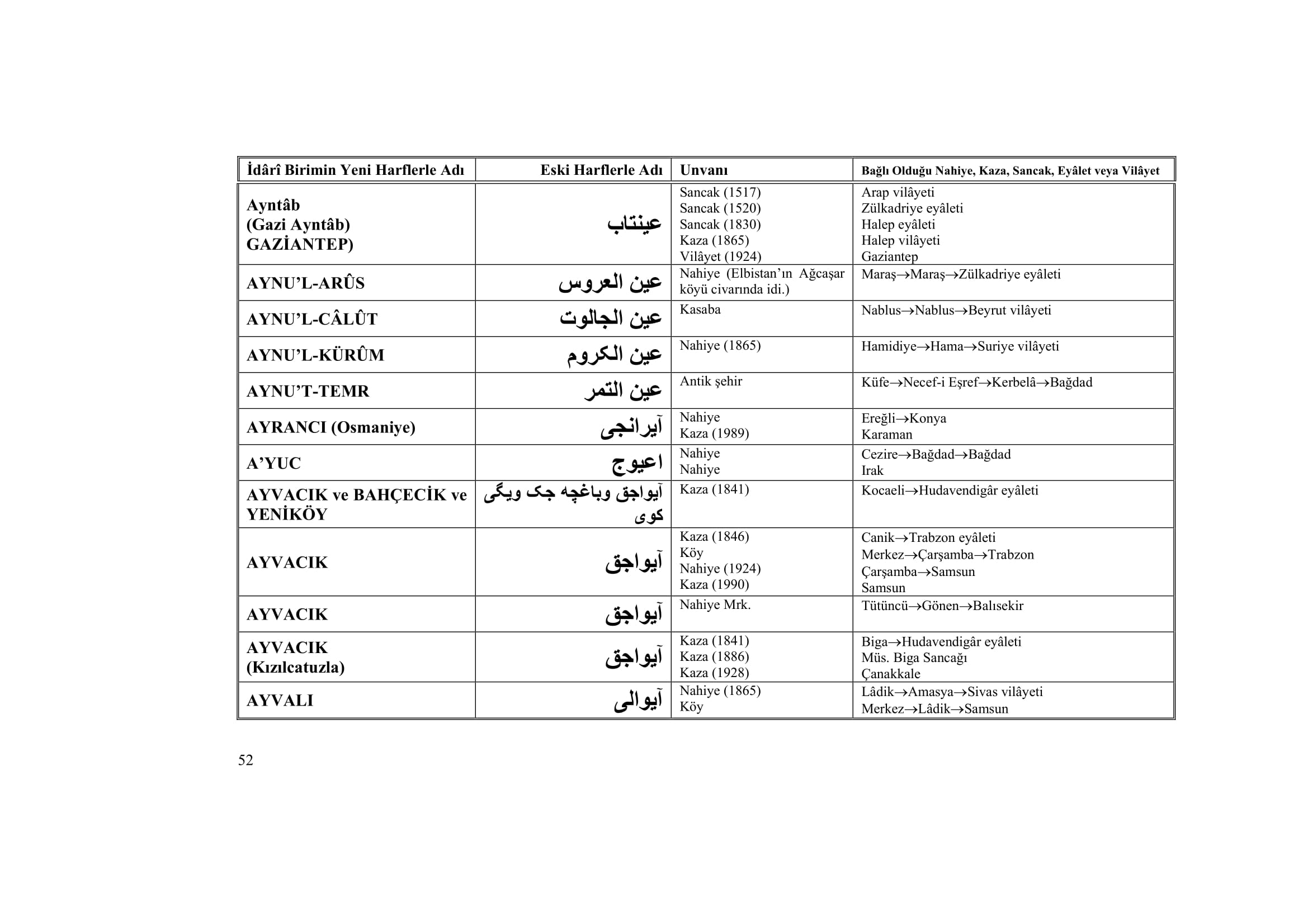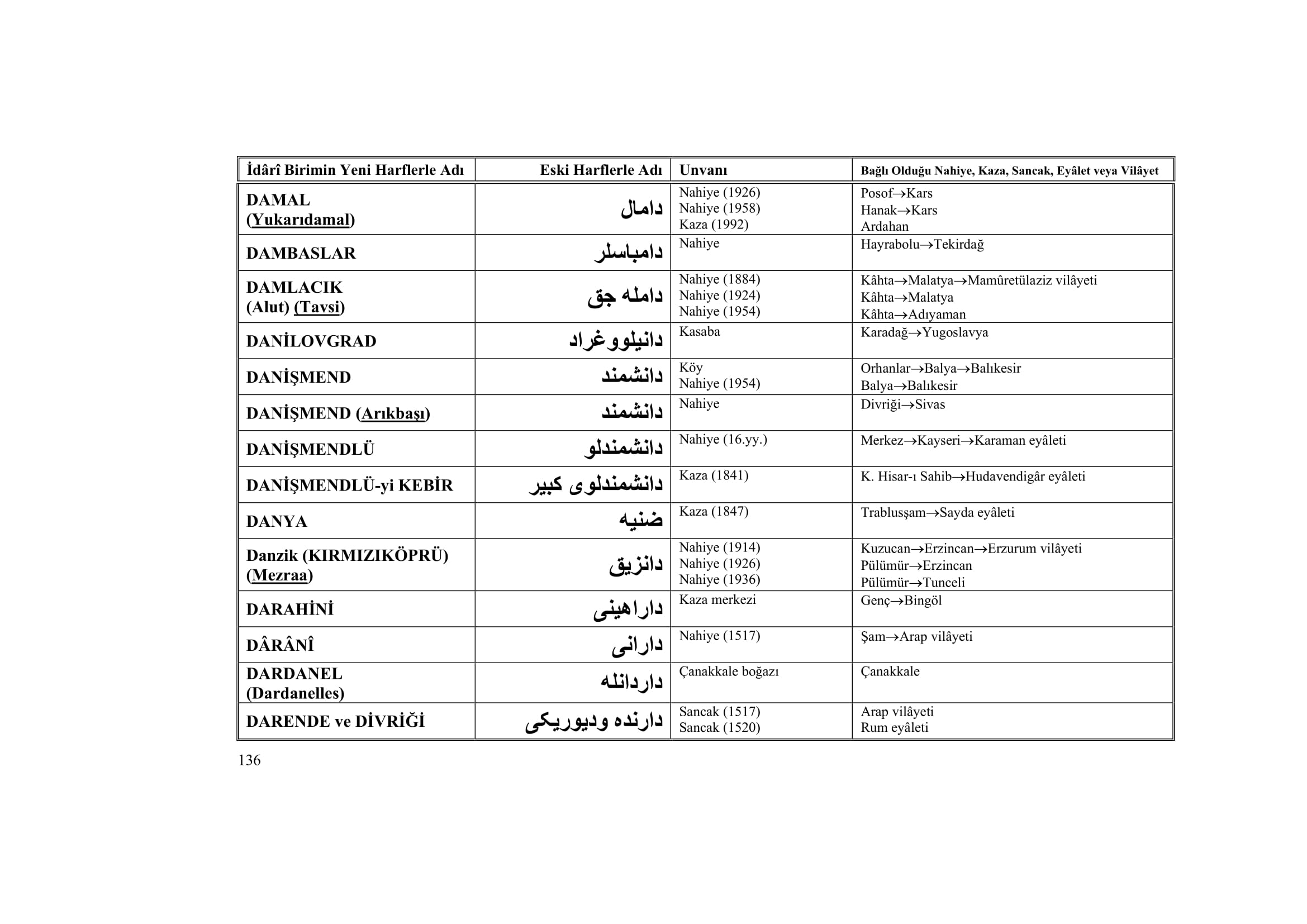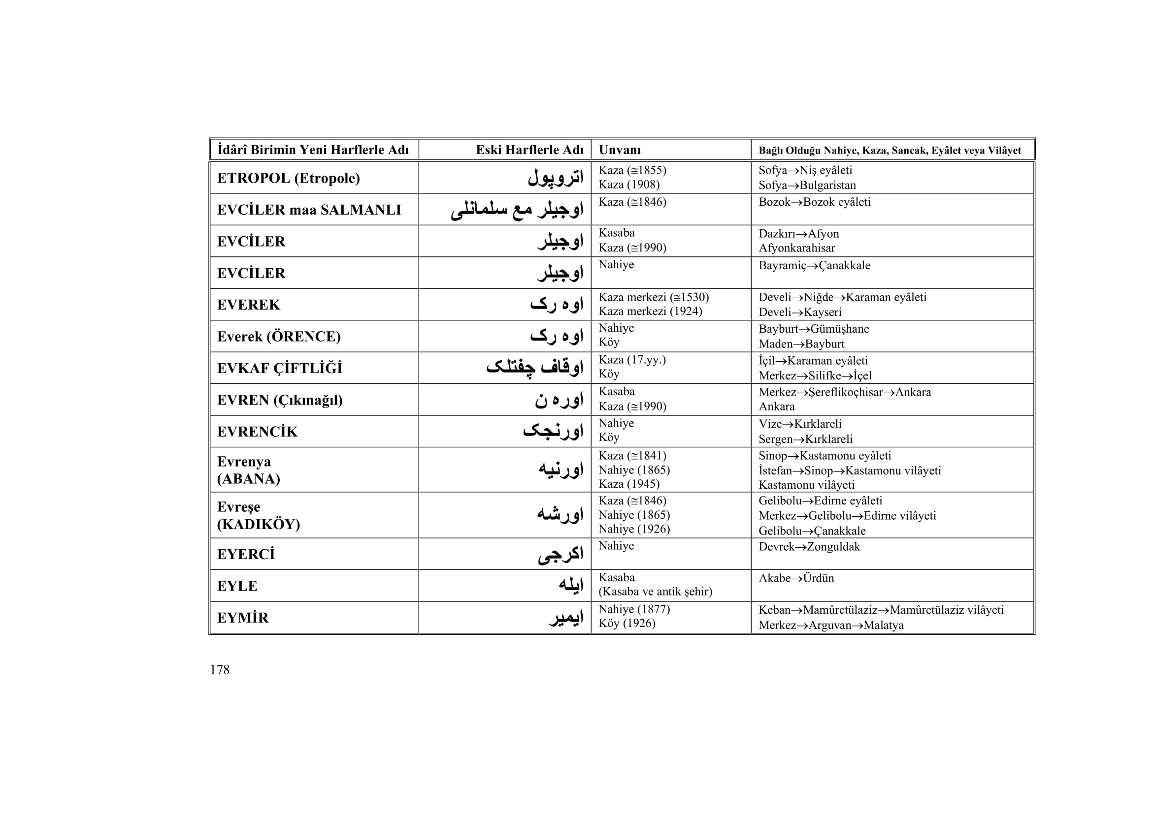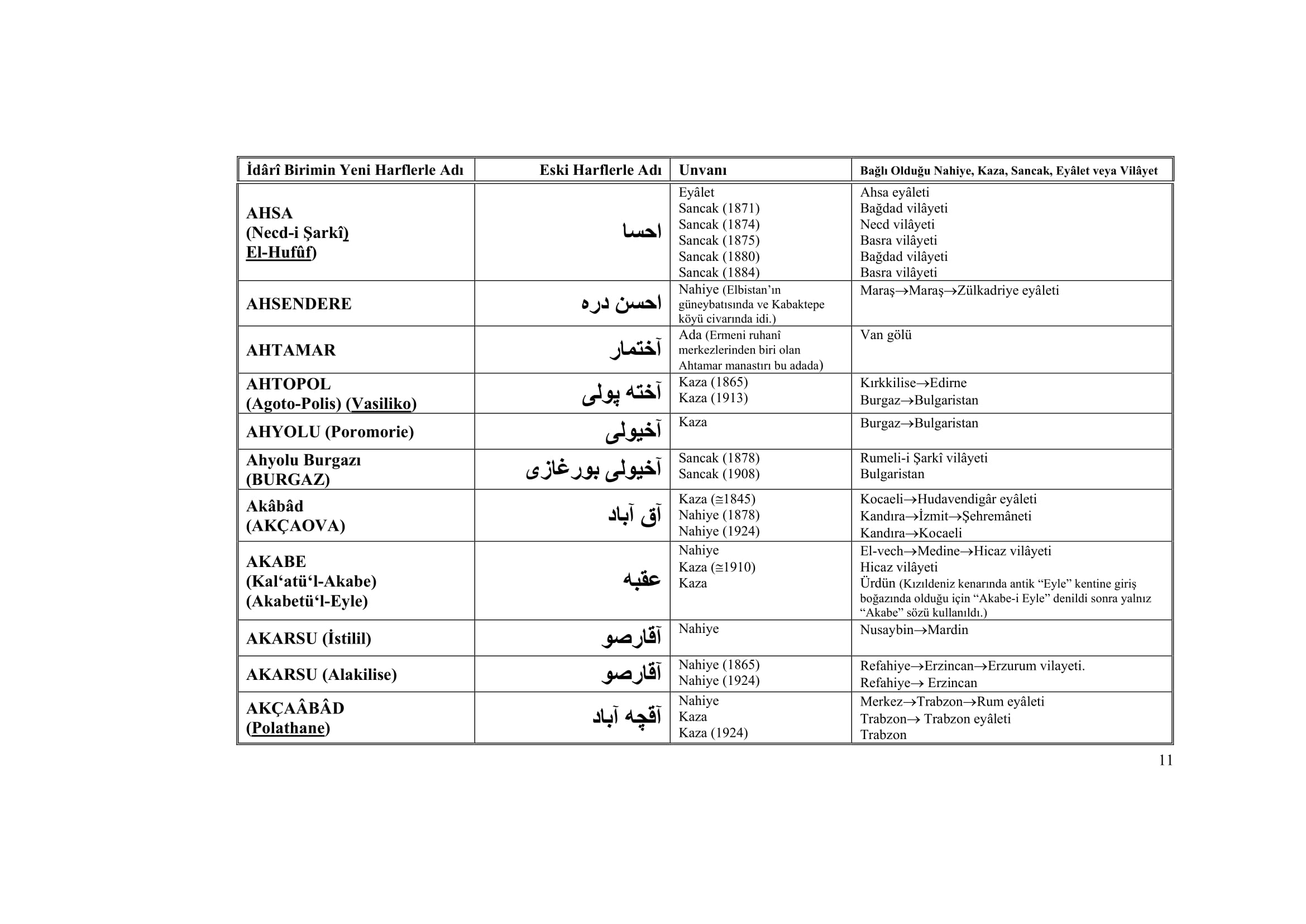 Şu an ismi bir çok kez değişen illerimiz, ilçelerimiz ve o dönemde Osmanlı hakimiyeti altında olan tüm topraklarda bulunan eyalet,vilayet, sancak, kaza ve nahiyeleri eski isimleriyle alfabetik sırada gösteren harika bir kaynakça. Eski ismi ile bildiğiniz ya da o dönem eski ismi ile anılan bir yeri bulmak adına kullanmak için güzel bir arşivdir.