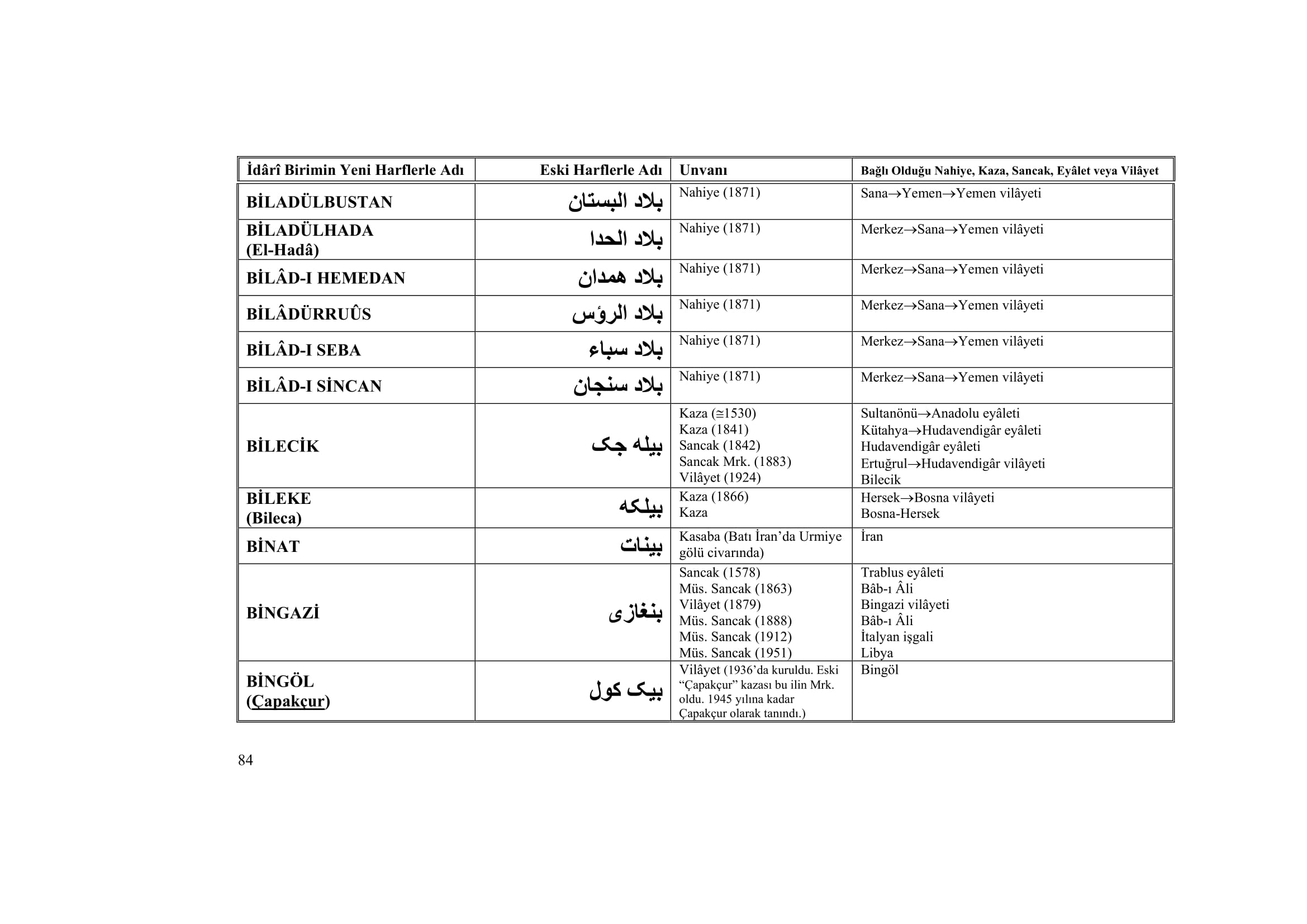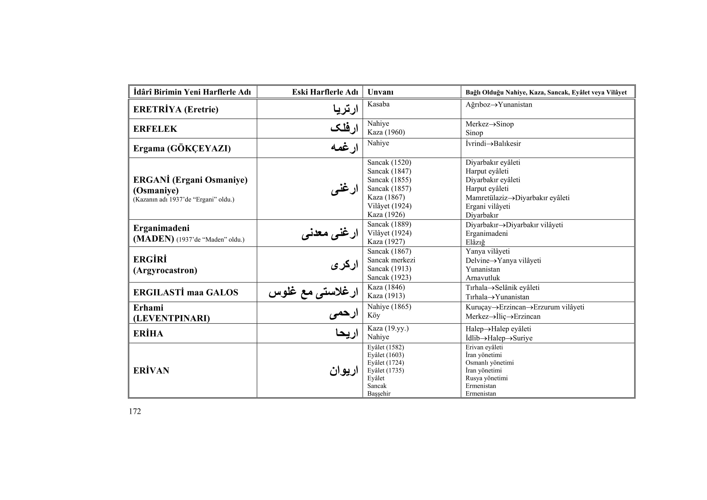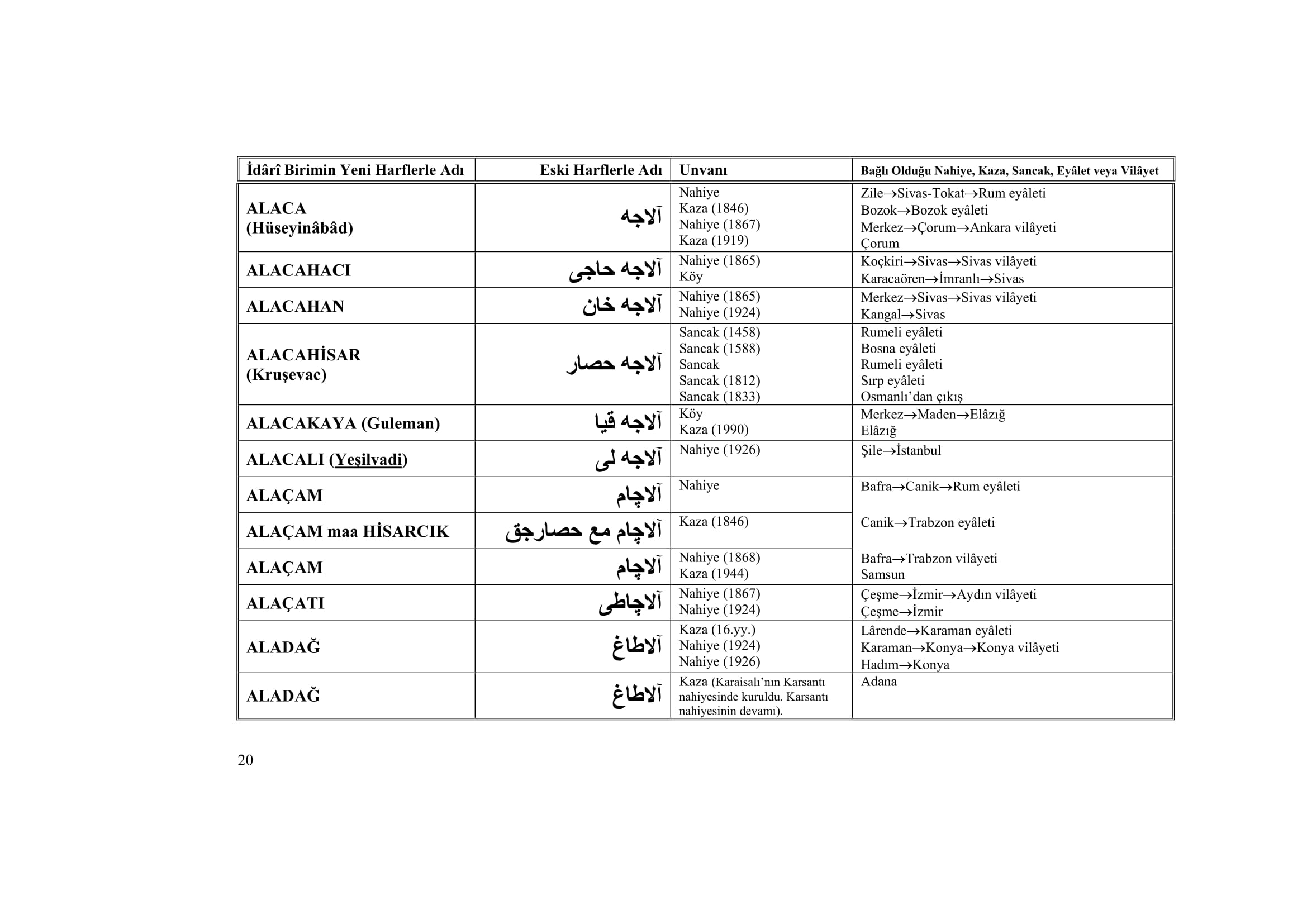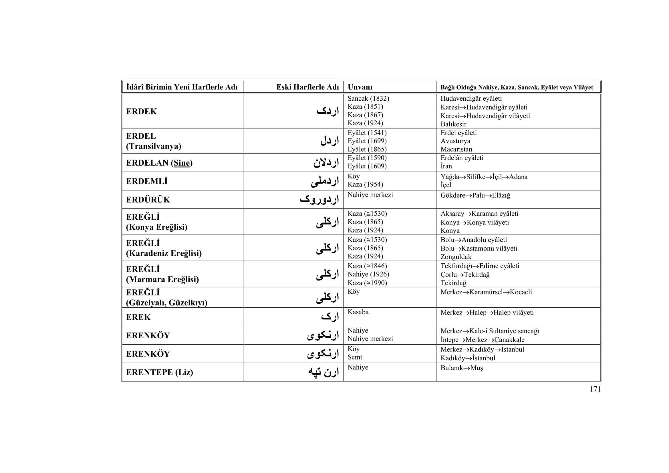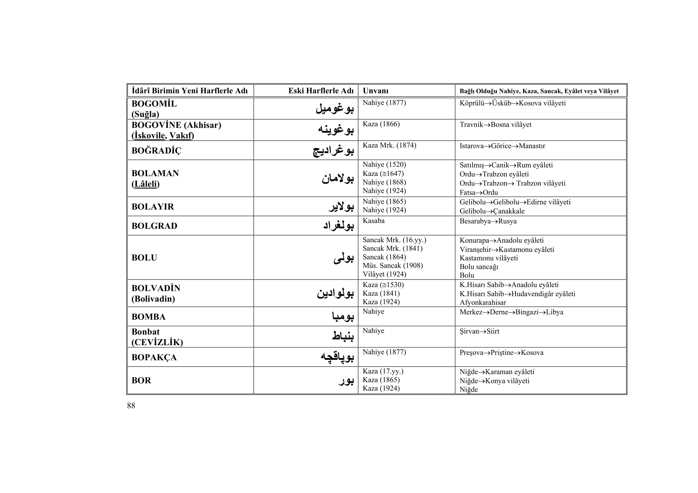 Şu an ismi bir çok kez değişen illerimiz, ilçelerimiz ve o dönemde Osmanlı hakimiyeti altında olan tüm topraklarda bulunan eyalet,vilayet, sancak, kaza ve nahiyeleri eski isimleriyle alfabetik sırada gösteren harika bir kaynakça. Eski ismi ile bildiğiniz ya da o dönem eski ismi ile anılan bir yeri bulmak adına kullanmak için güzel bir arşivdir.