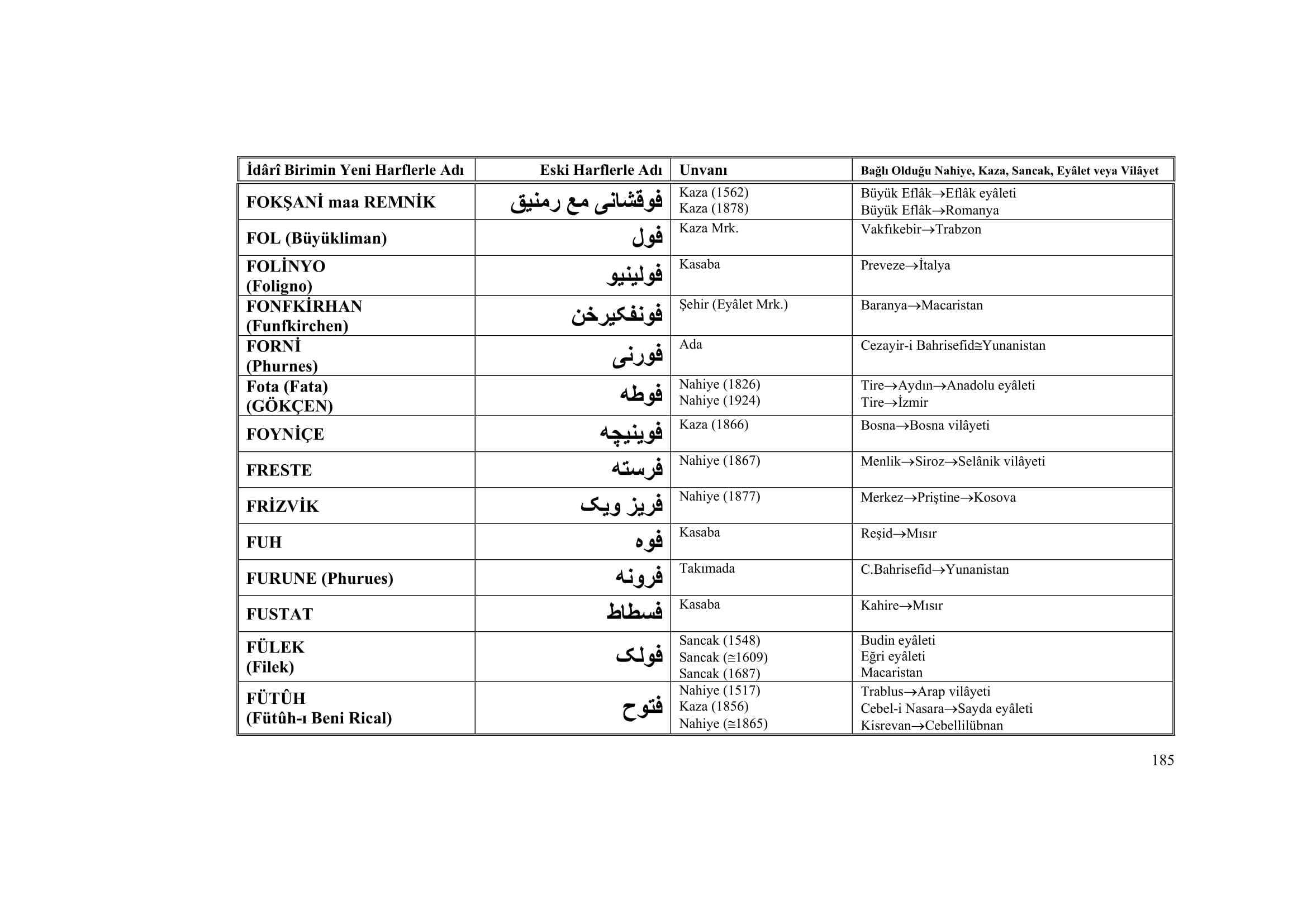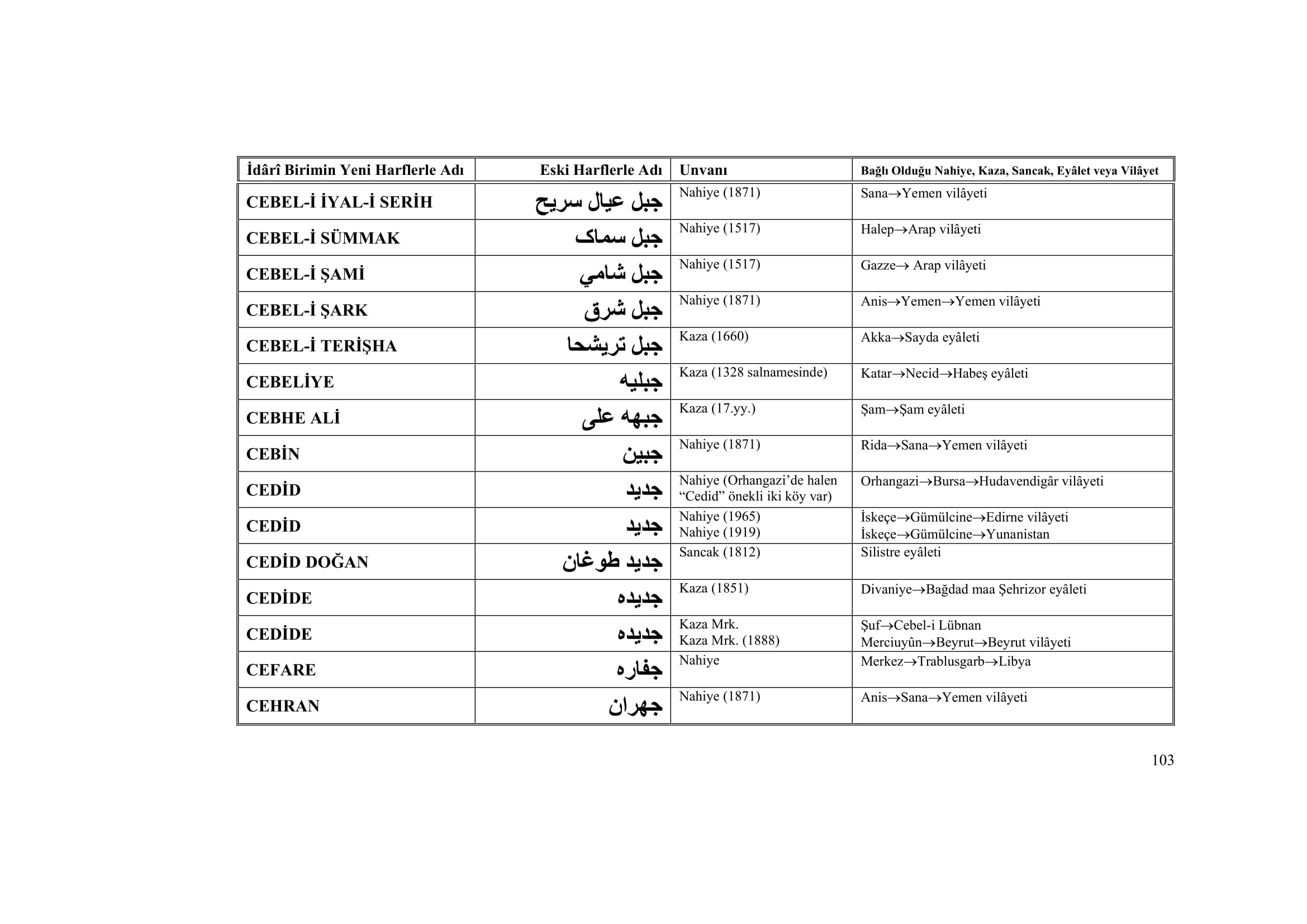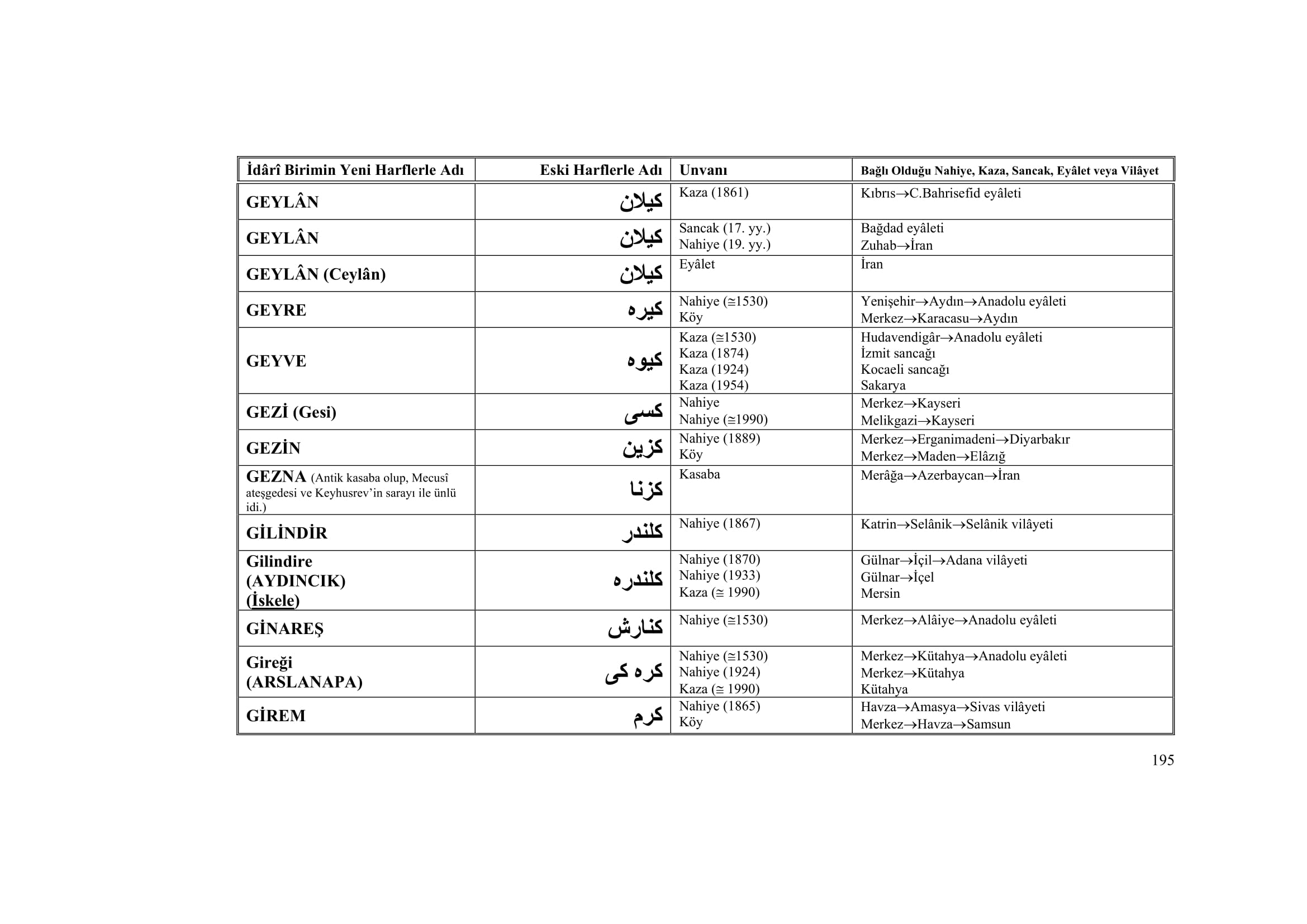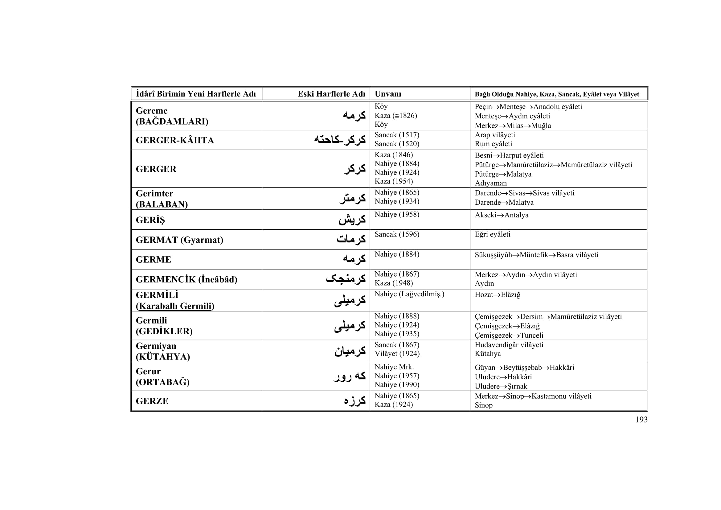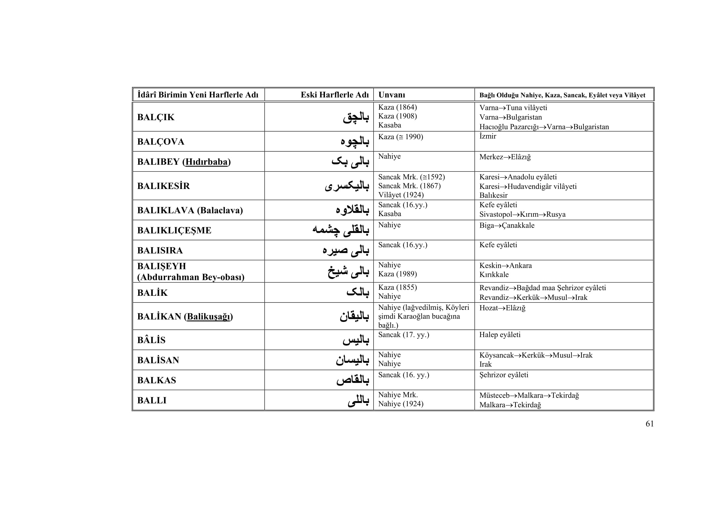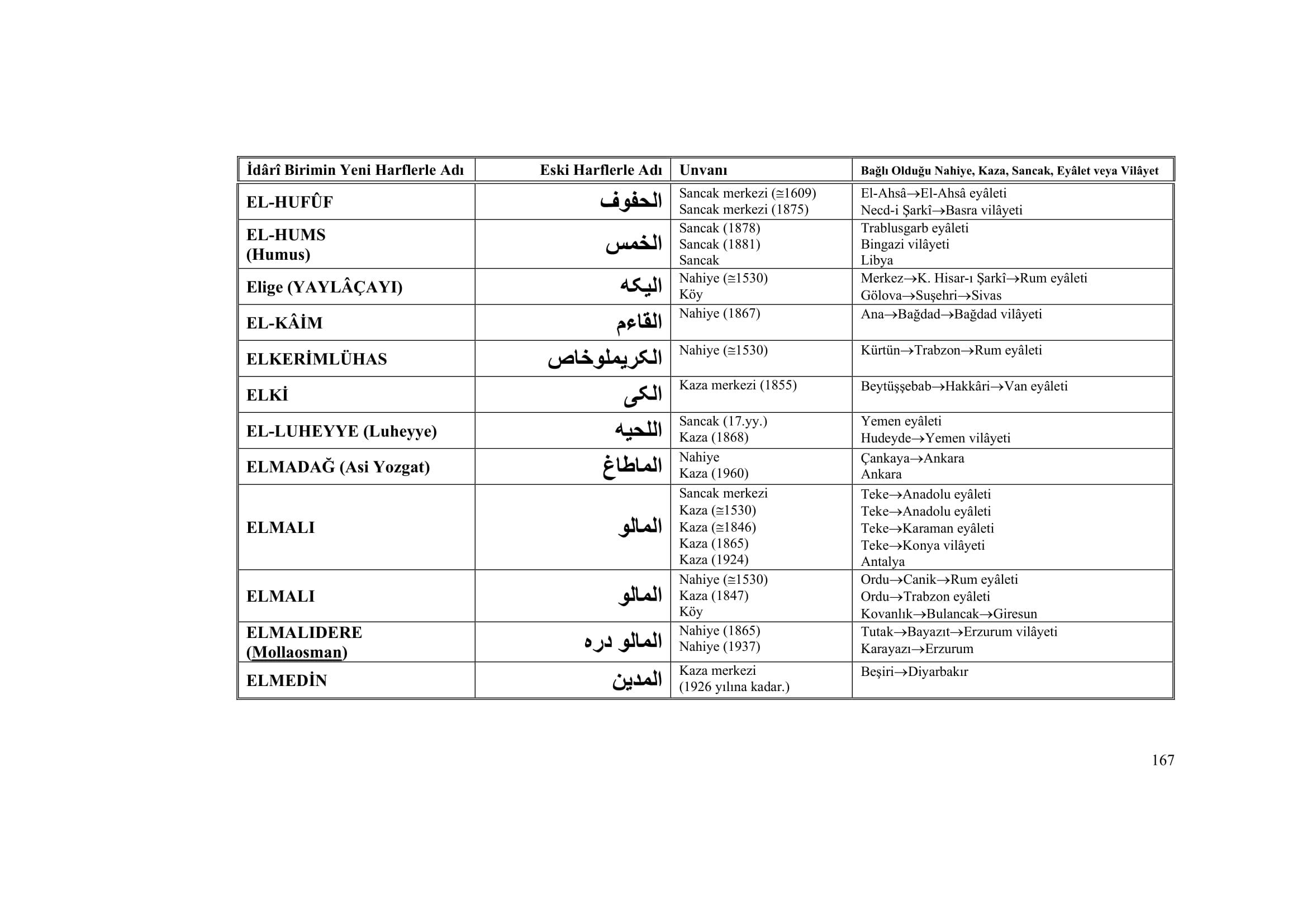 Şu an ismi bir çok kez değişen illerimiz, ilçelerimiz ve o dönemde Osmanlı hakimiyeti altında olan tüm topraklarda bulunan eyalet,vilayet, sancak, kaza ve nahiyeleri eski isimleriyle alfabetik sırada gösteren harika bir kaynakça. Eski ismi ile bildiğiniz ya da o dönem eski ismi ile anılan bir yeri bulmak adına kullanmak için güzel bir arşivdir.