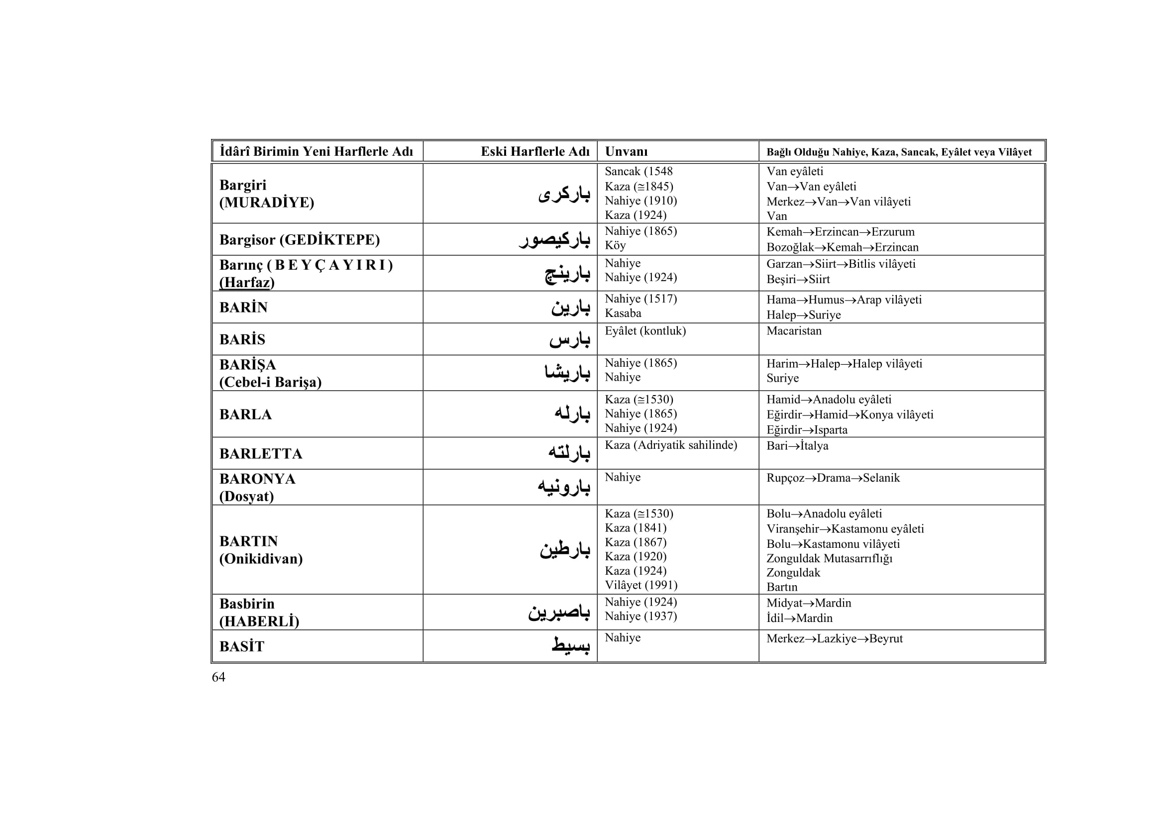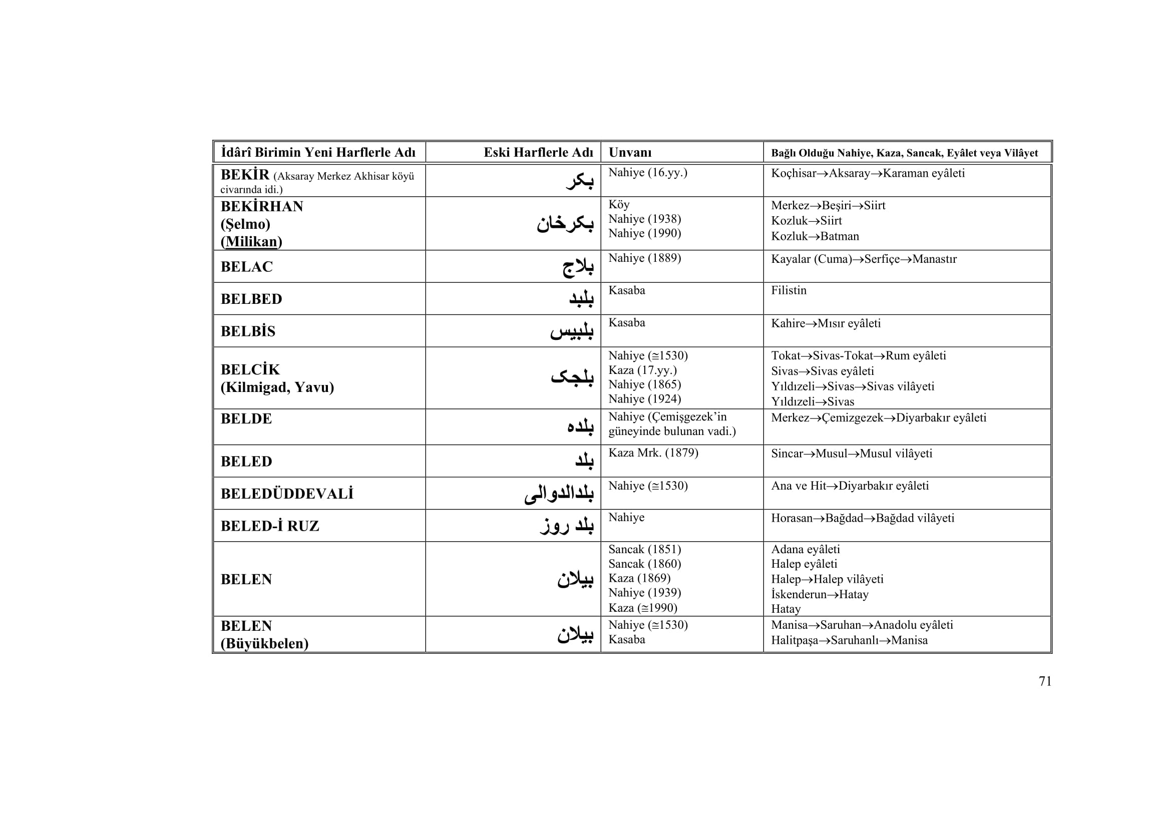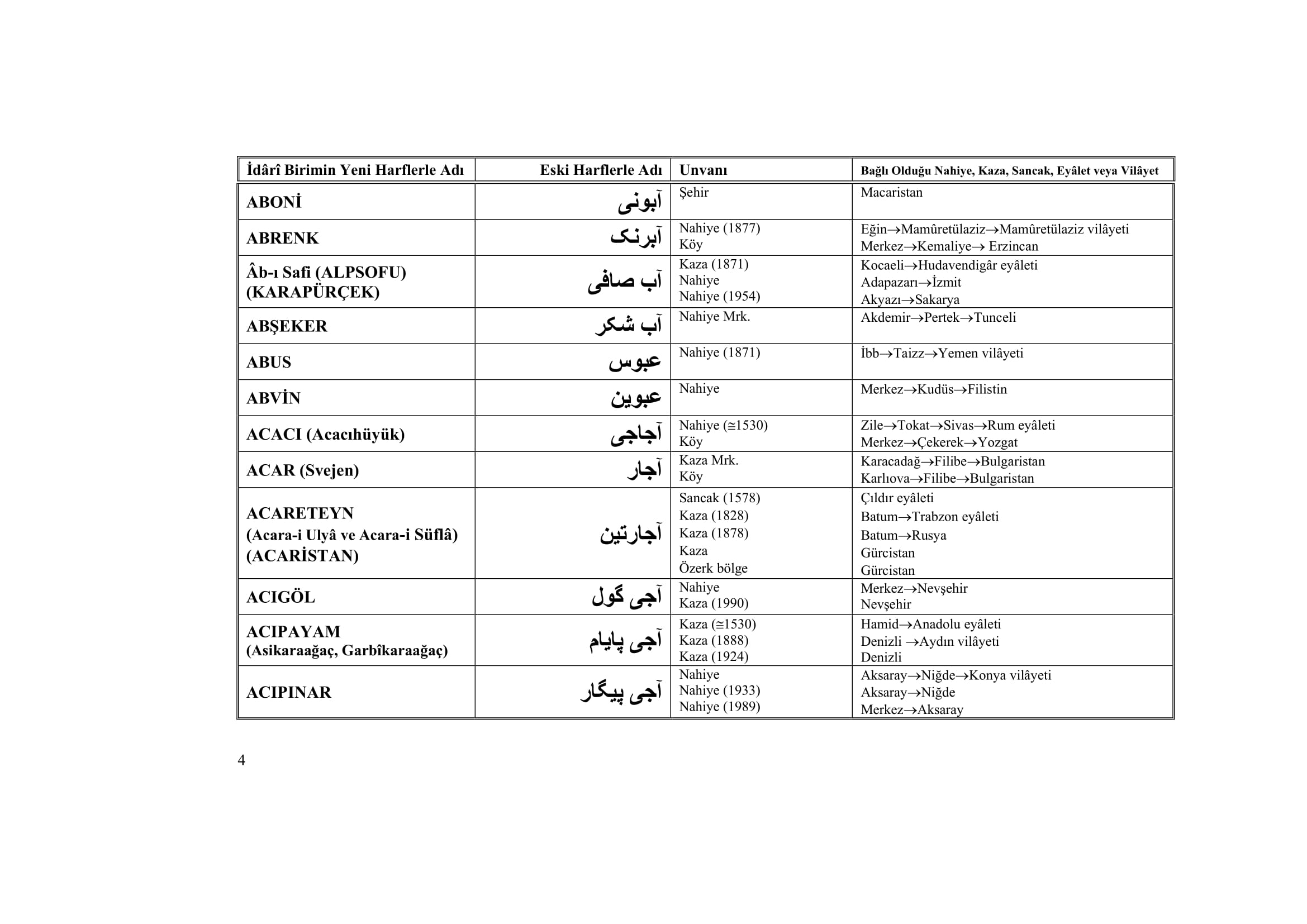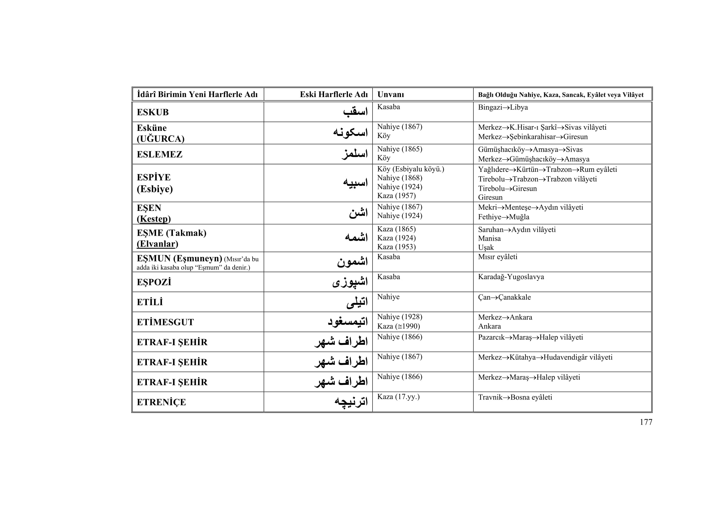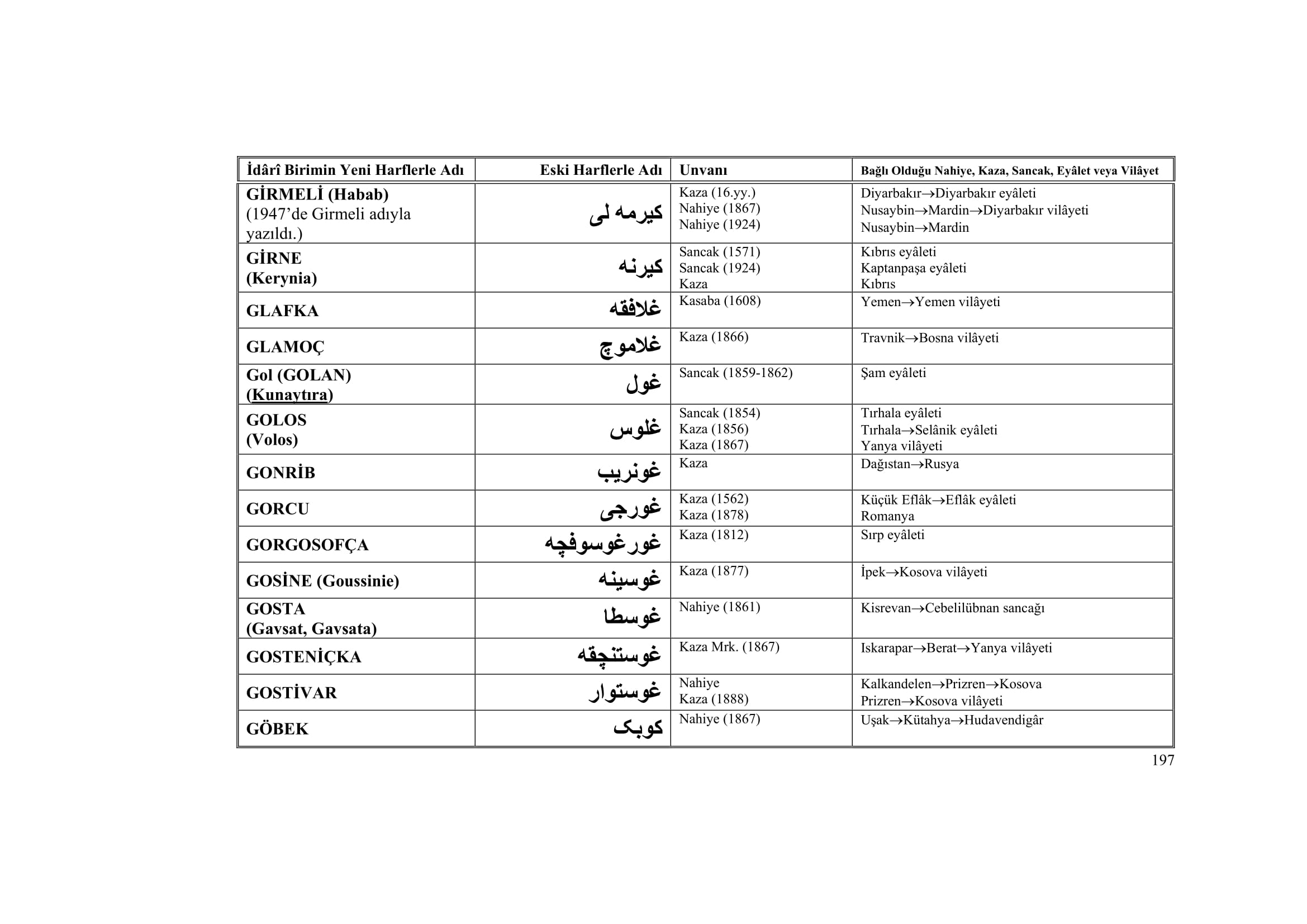 Şu an ismi bir çok kez değişen illerimiz, ilçelerimiz ve o dönemde Osmanlı hakimiyeti altında olan tüm topraklarda bulunan eyalet,vilayet, sancak, kaza ve nahiyeleri eski isimleriyle alfabetik sırada gösteren harika bir kaynakça. Eski ismi ile bildiğiniz ya da o dönem eski ismi ile anılan bir yeri bulmak adına kullanmak için güzel bir arşivdir.