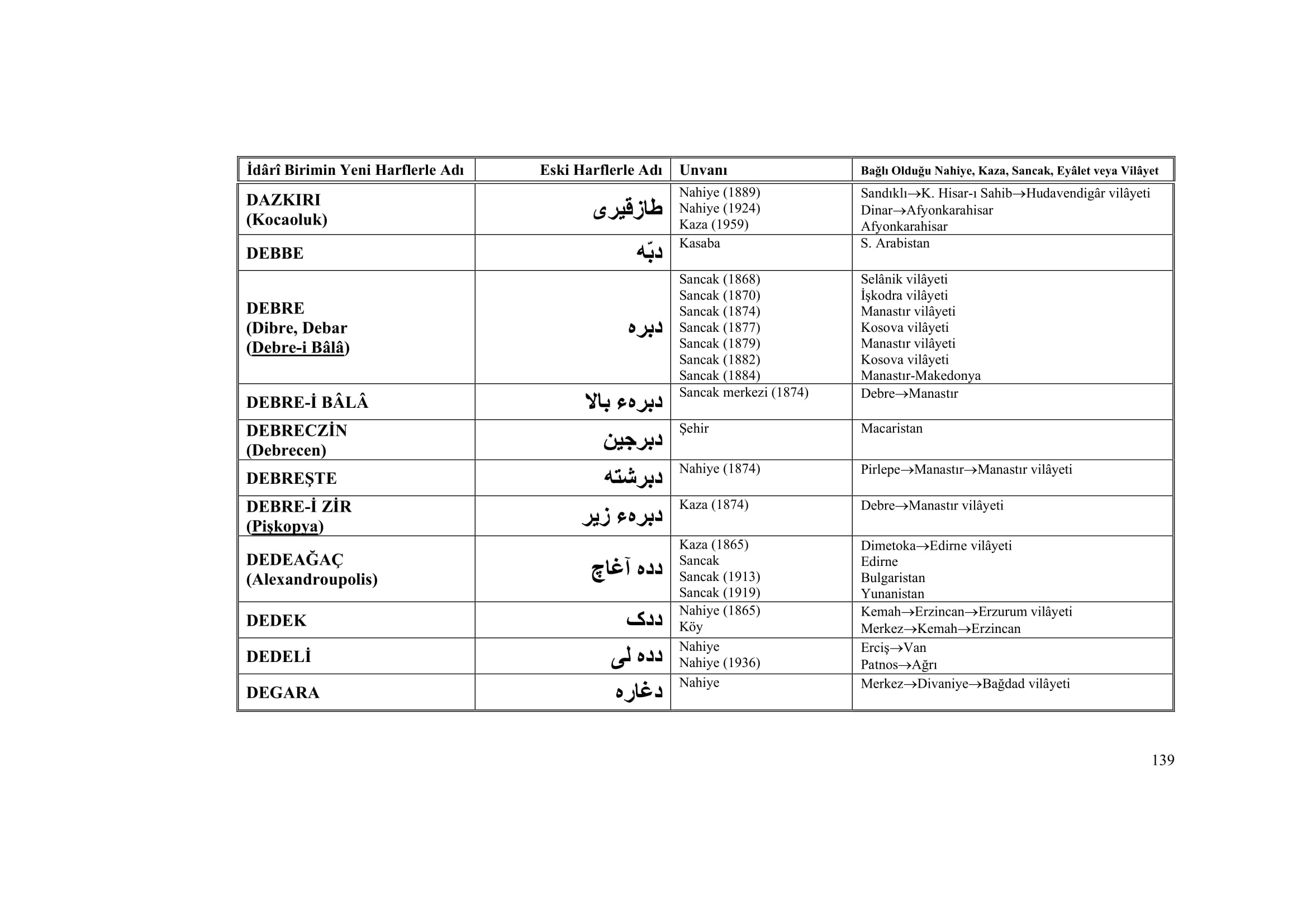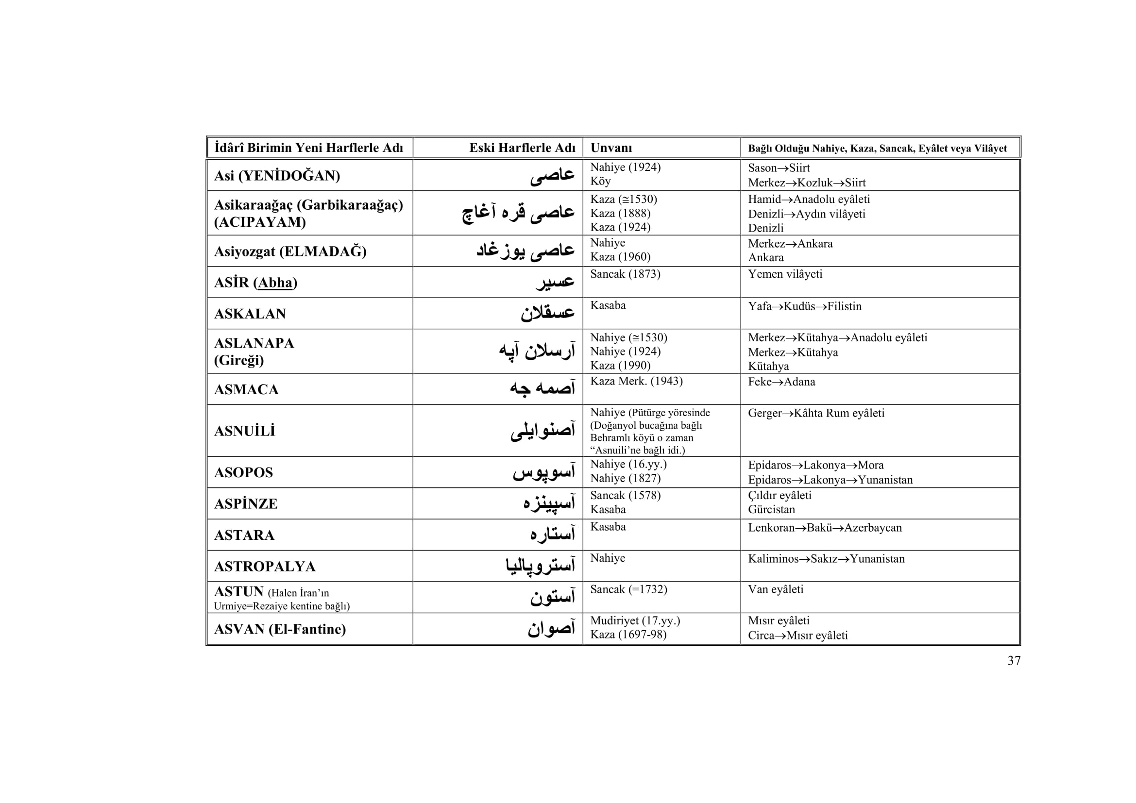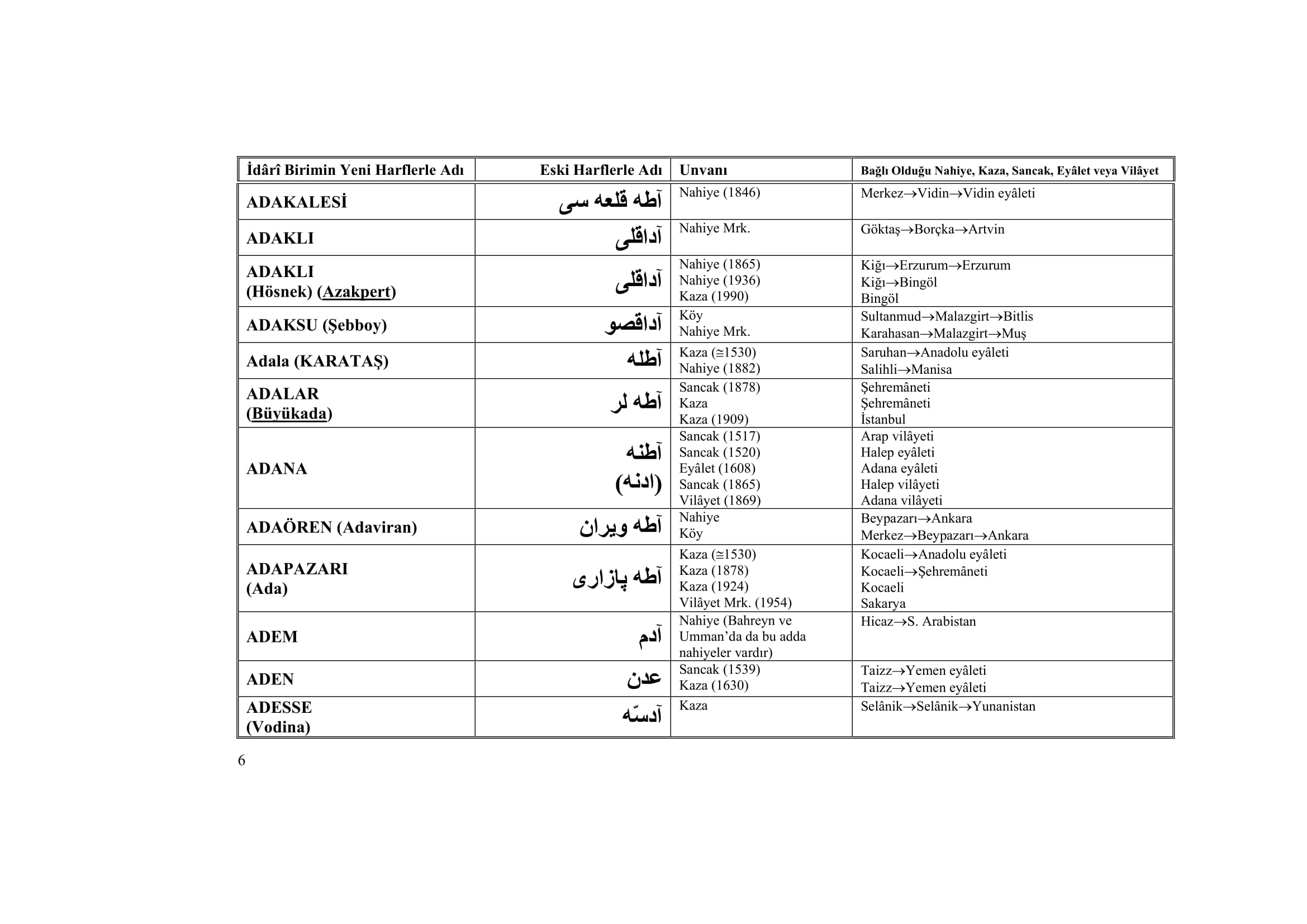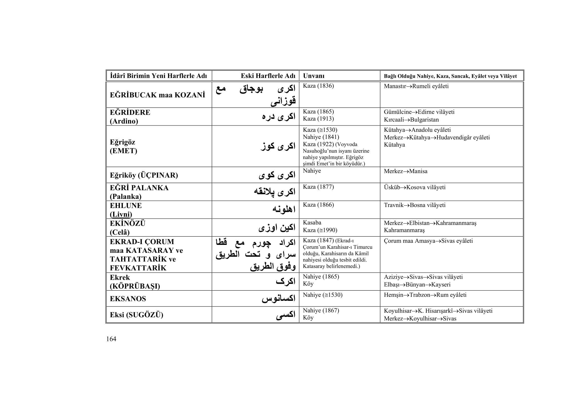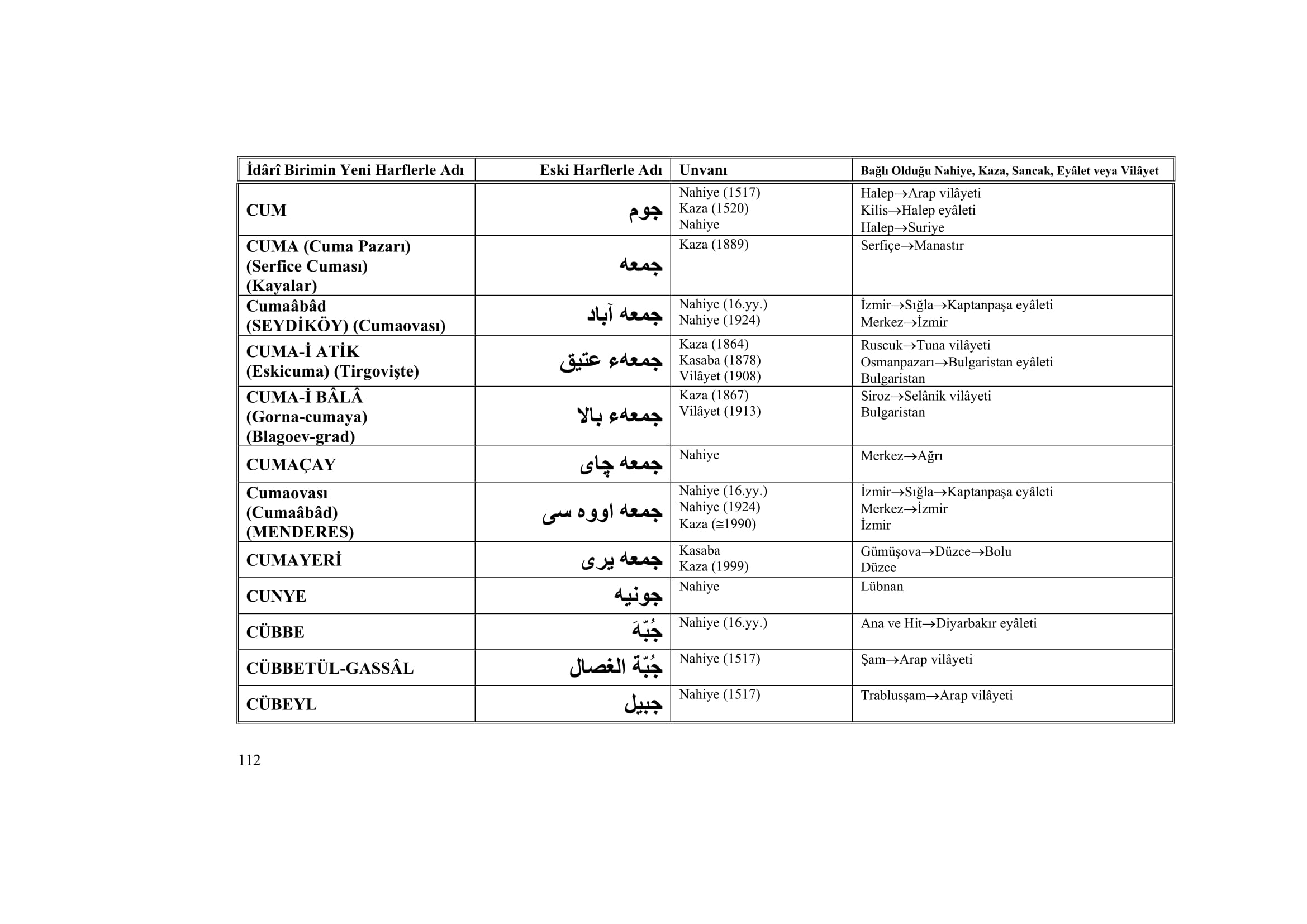 Şu an ismi bir çok kez değişen illerimiz, ilçelerimiz ve o dönemde Osmanlı hakimiyeti altında olan tüm topraklarda bulunan eyalet,vilayet, sancak, kaza ve nahiyeleri eski isimleriyle alfabetik sırada gösteren harika bir kaynakça. Eski ismi ile bildiğiniz ya da o dönem eski ismi ile anılan bir yeri bulmak adına kullanmak için güzel bir arşivdir.