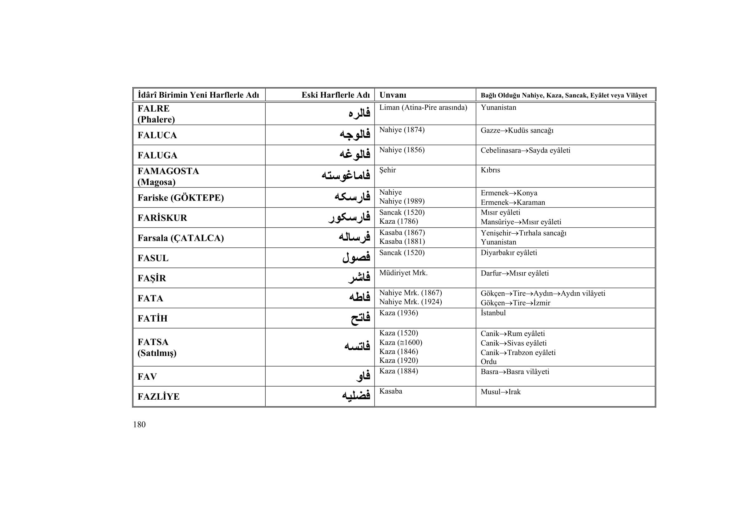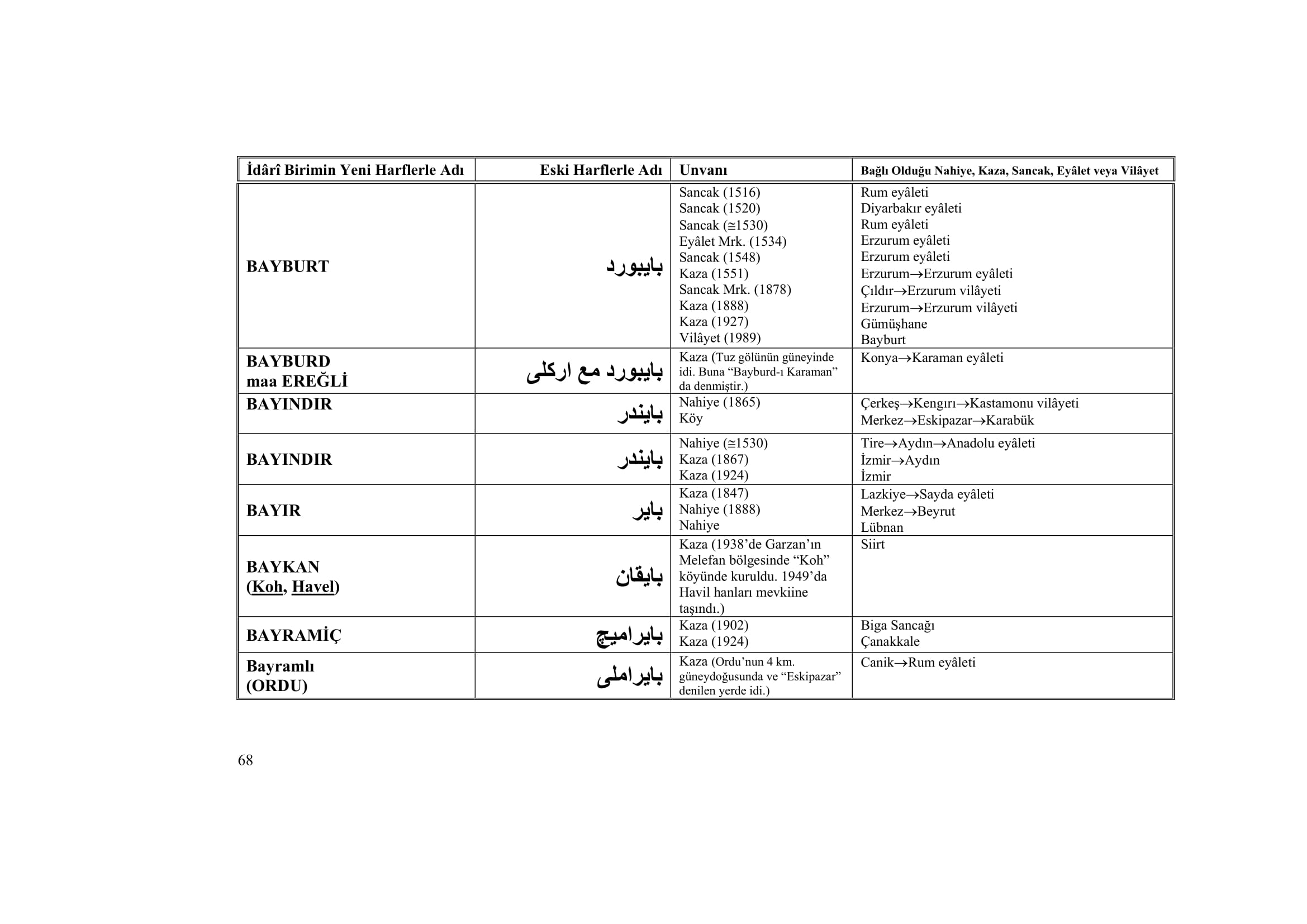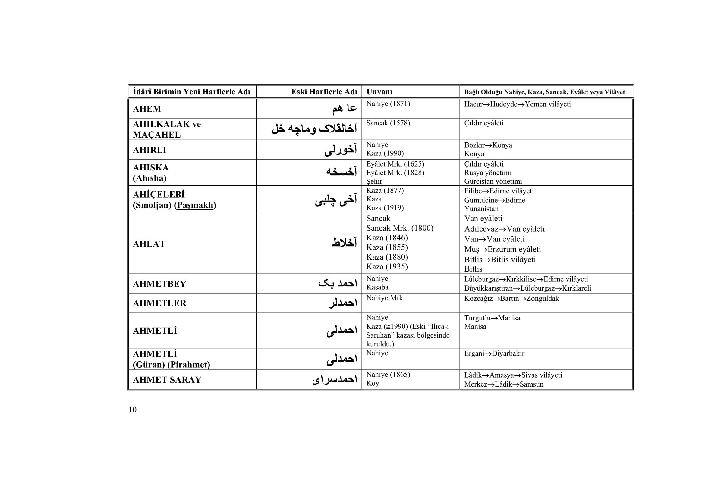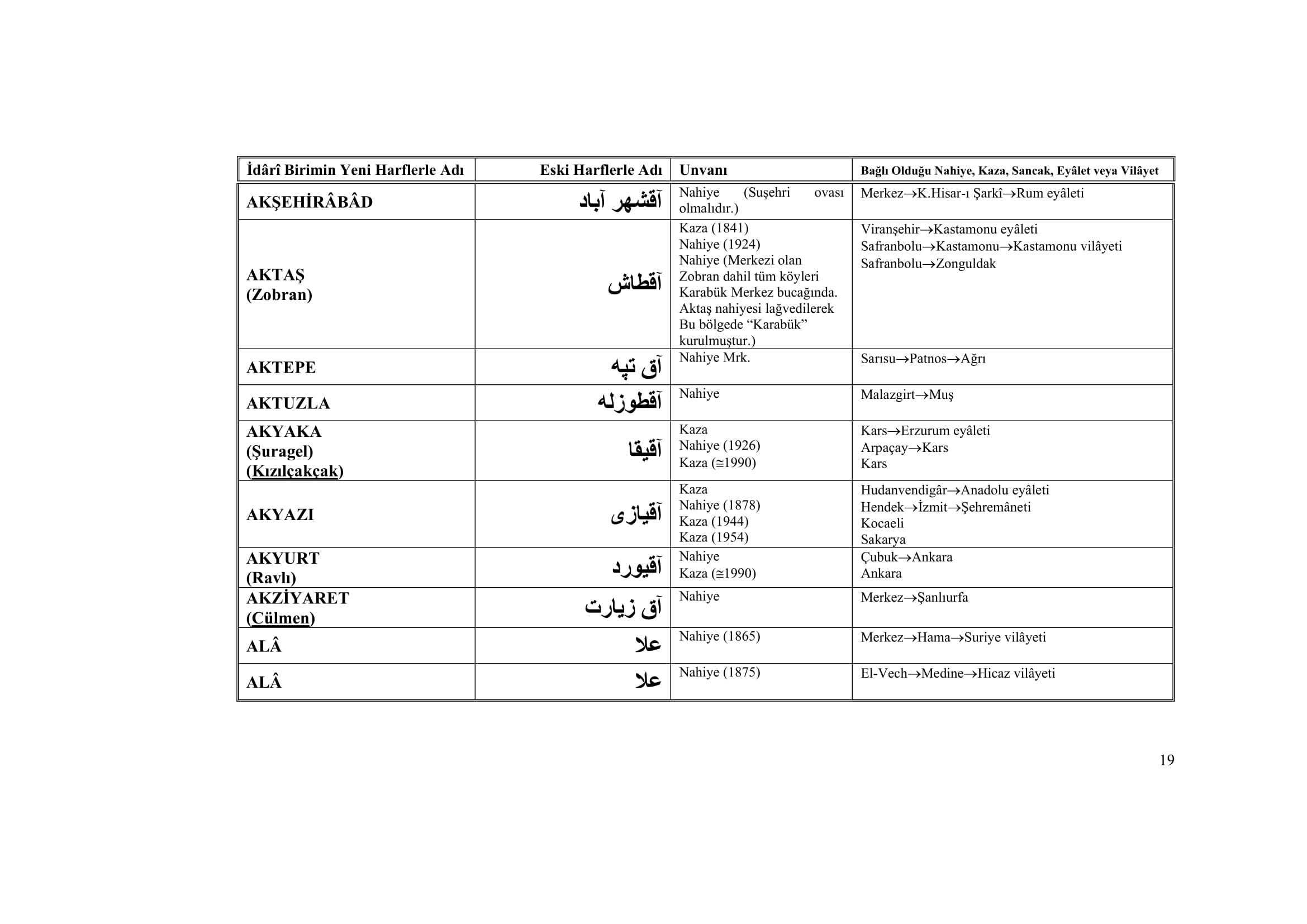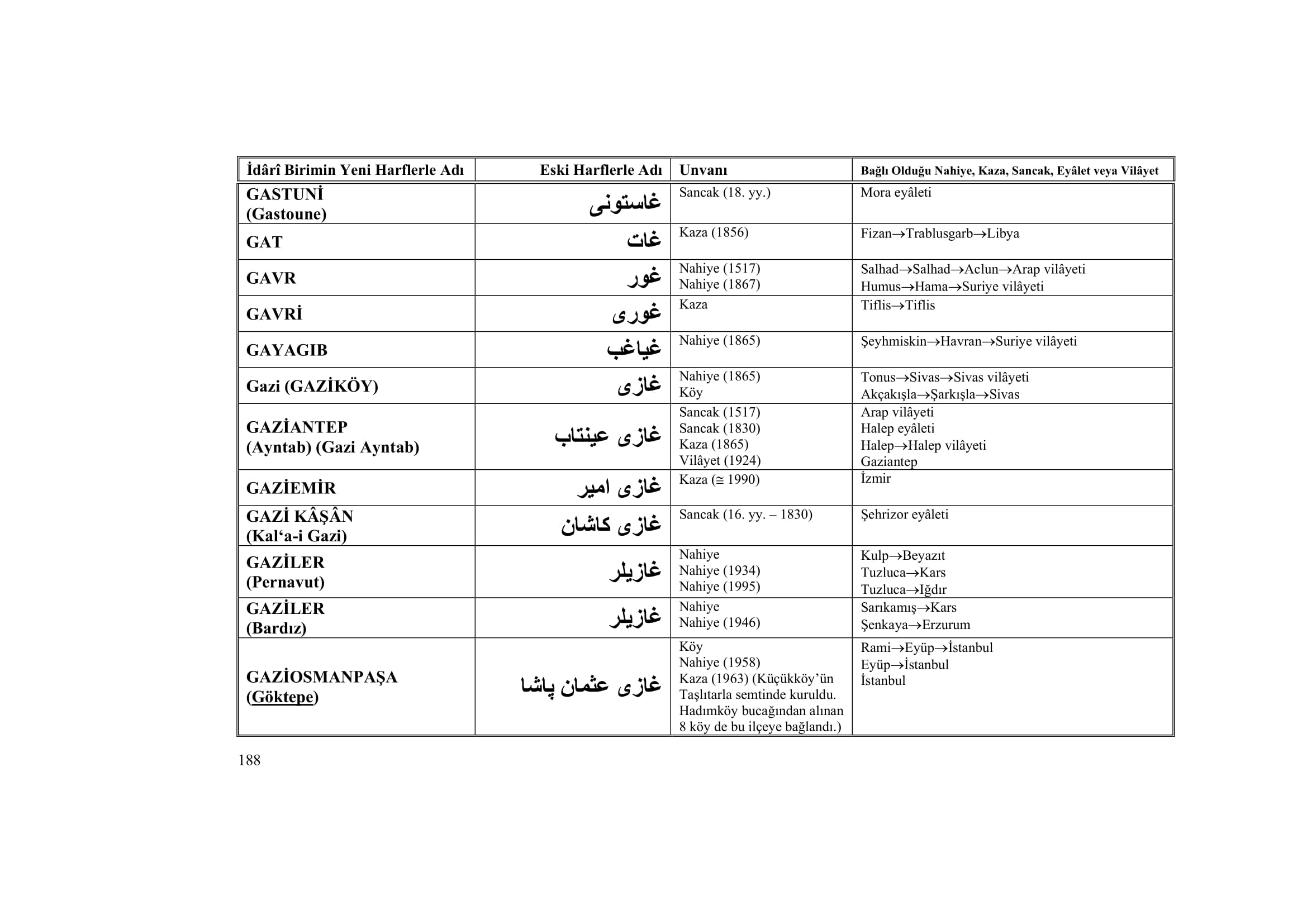 Şu an ismi bir çok kez değişen illerimiz, ilçelerimiz ve o dönemde Osmanlı hakimiyeti altında olan tüm topraklarda bulunan eyalet,vilayet, sancak, kaza ve nahiyeleri eski isimleriyle alfabetik sırada gösteren harika bir kaynakça. Eski ismi ile bildiğiniz ya da o dönem eski ismi ile anılan bir yeri bulmak adına kullanmak için güzel bir arşivdir.