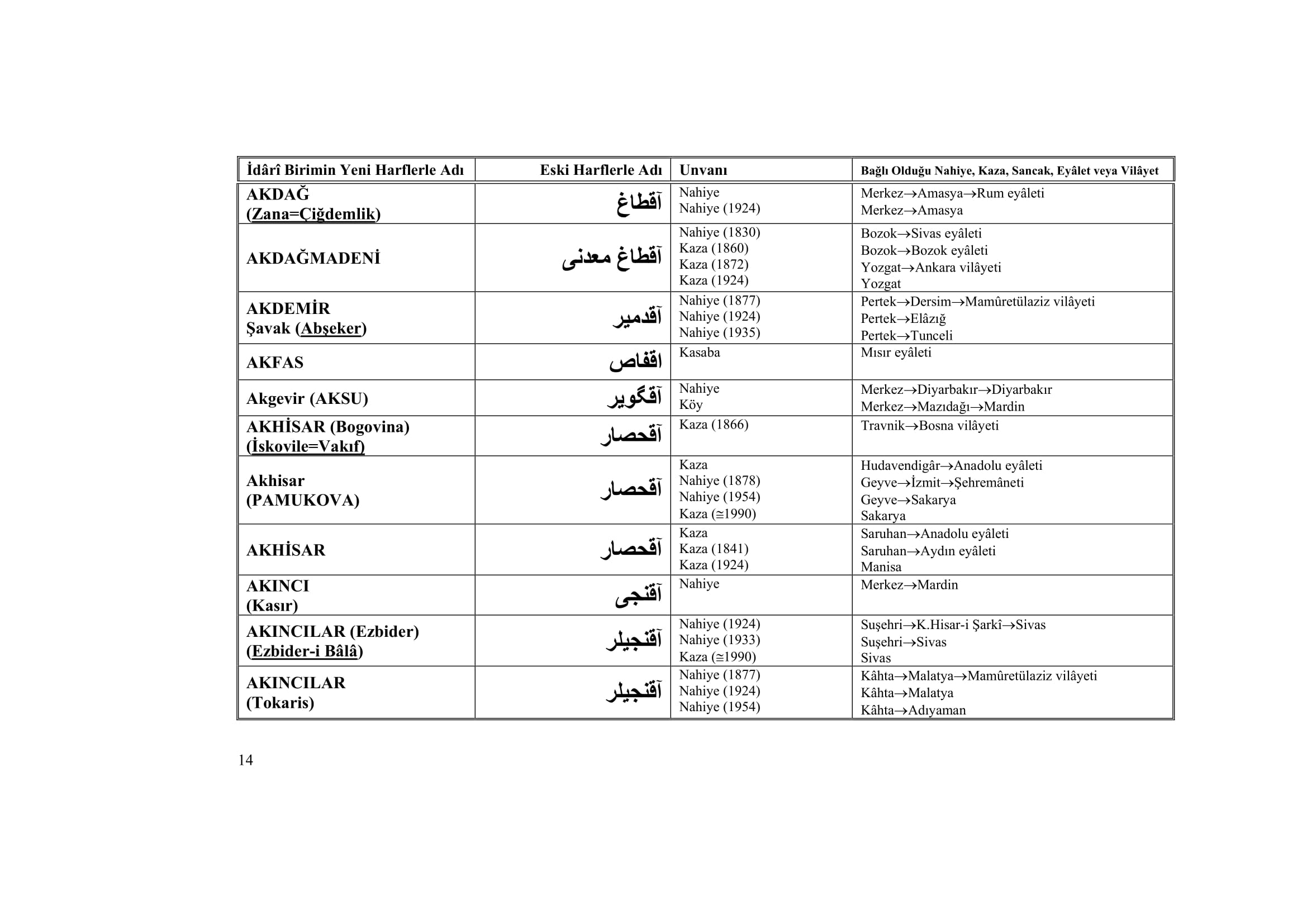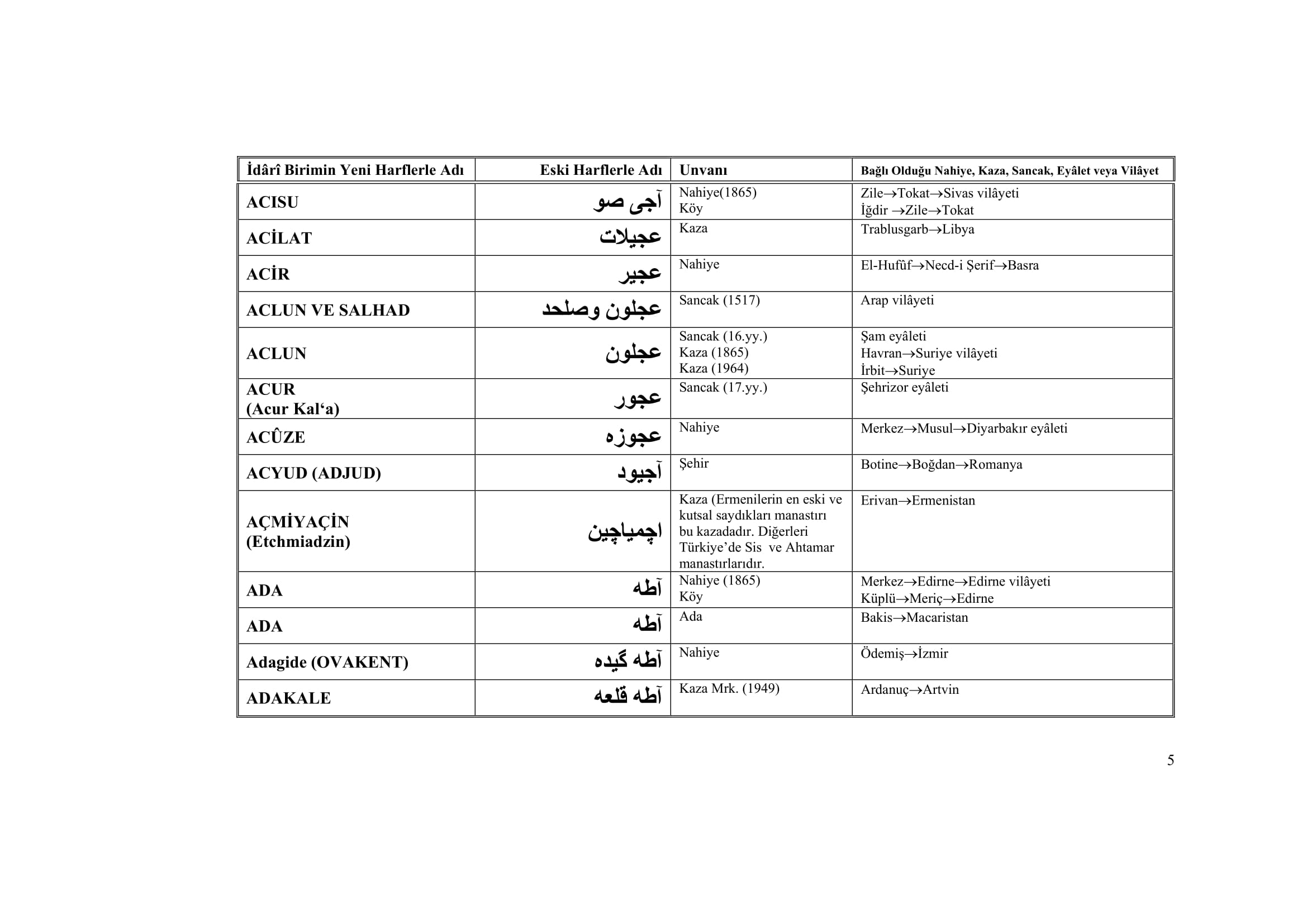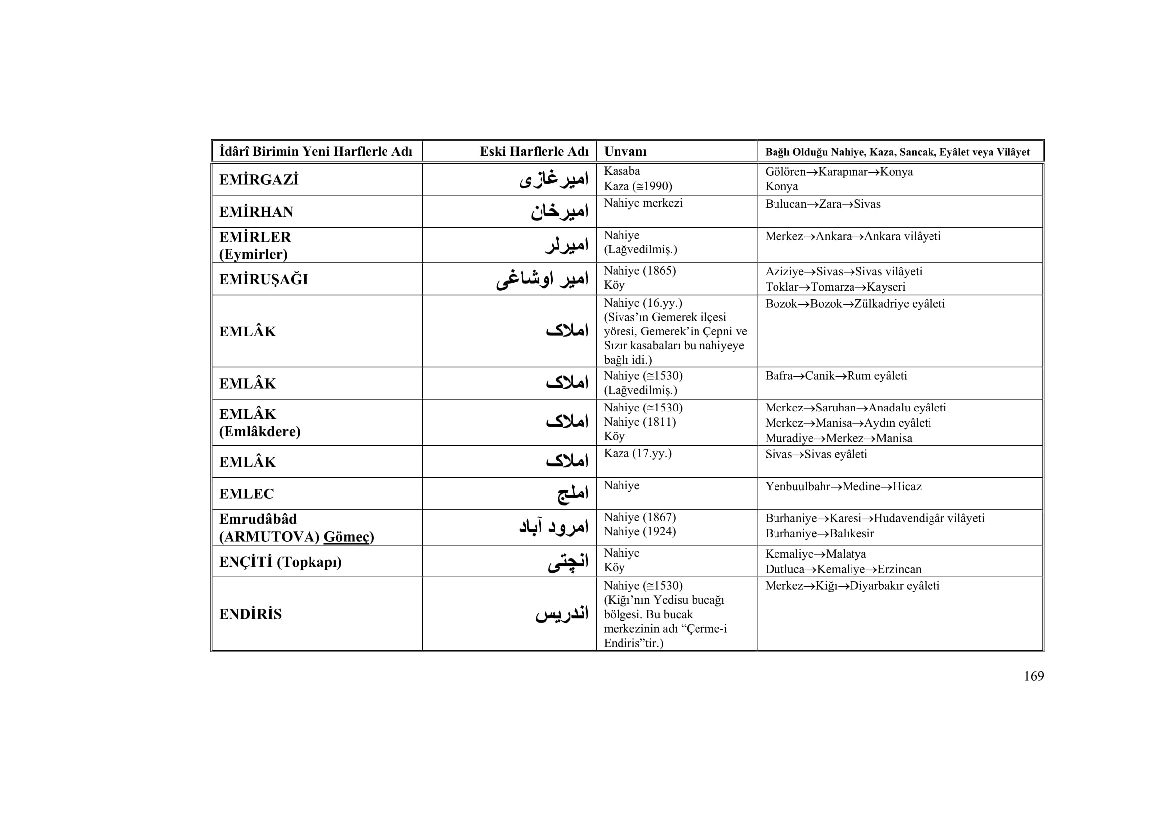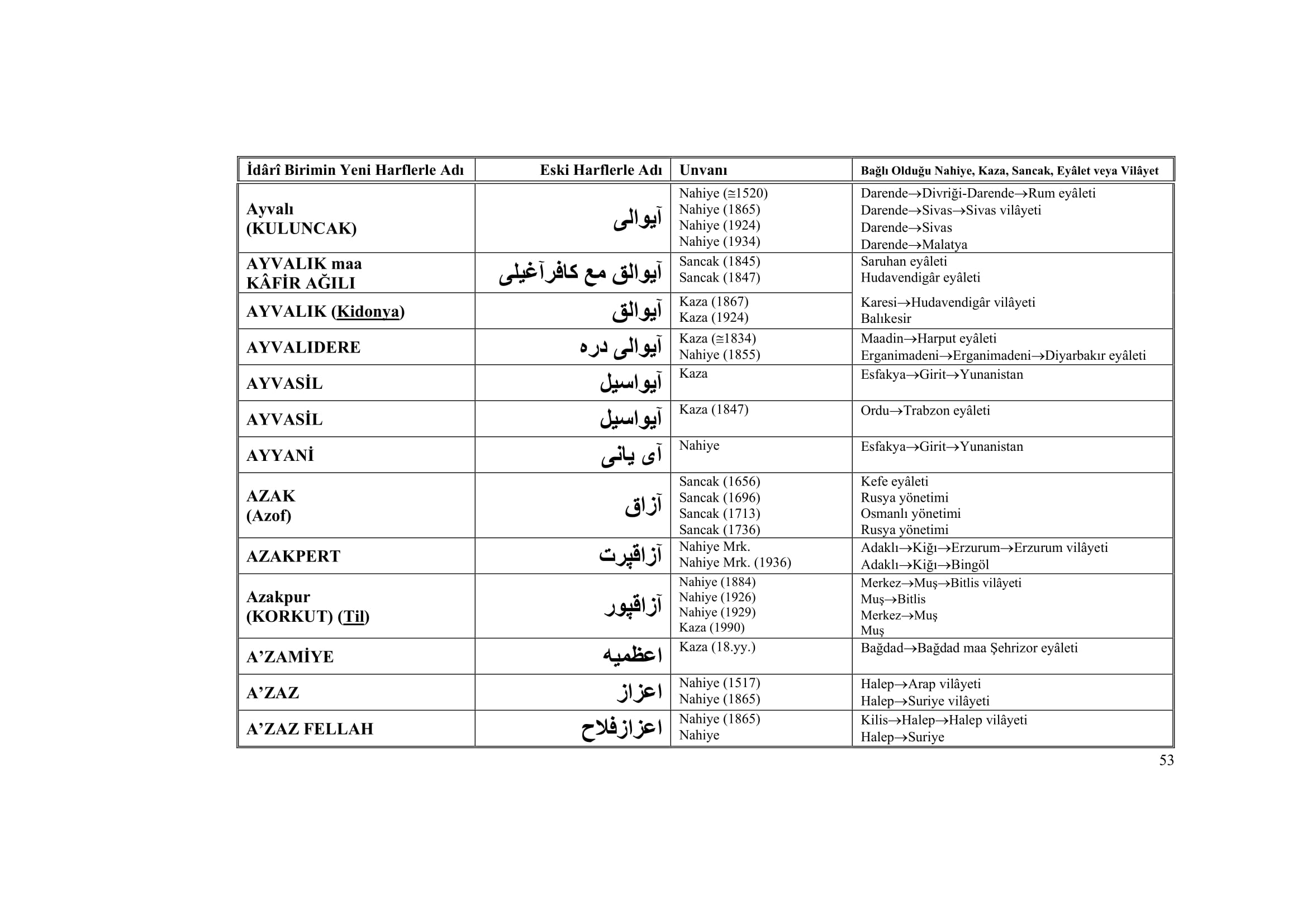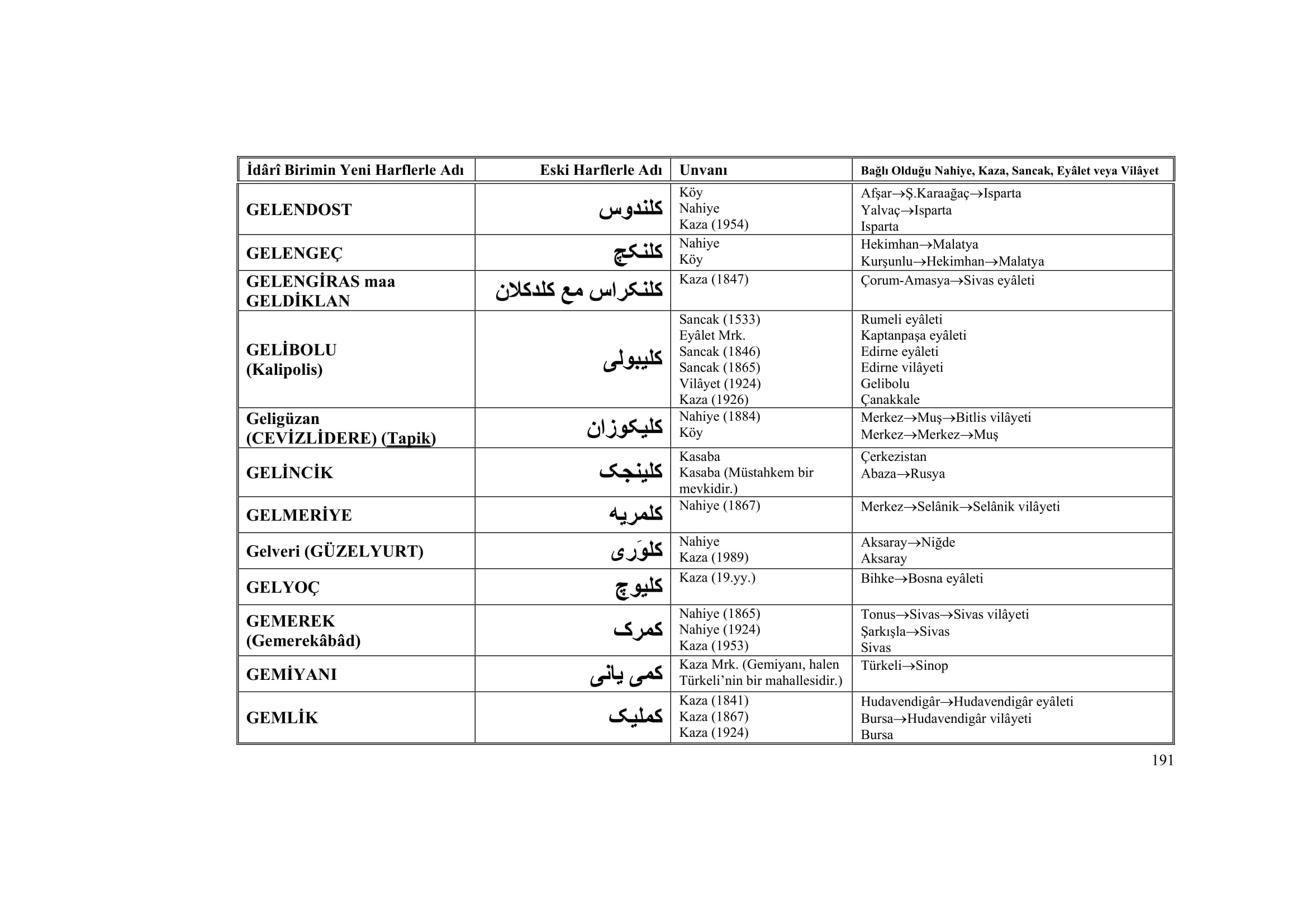 Şu an ismi bir çok kez değişen illerimiz, ilçelerimiz ve o dönemde Osmanlı hakimiyeti altında olan tüm topraklarda bulunan eyalet,vilayet, sancak, kaza ve nahiyeleri eski isimleriyle alfabetik sırada gösteren harika bir kaynakça. Eski ismi ile bildiğiniz ya da o dönem eski ismi ile anılan bir yeri bulmak adına kullanmak için güzel bir arşivdir.