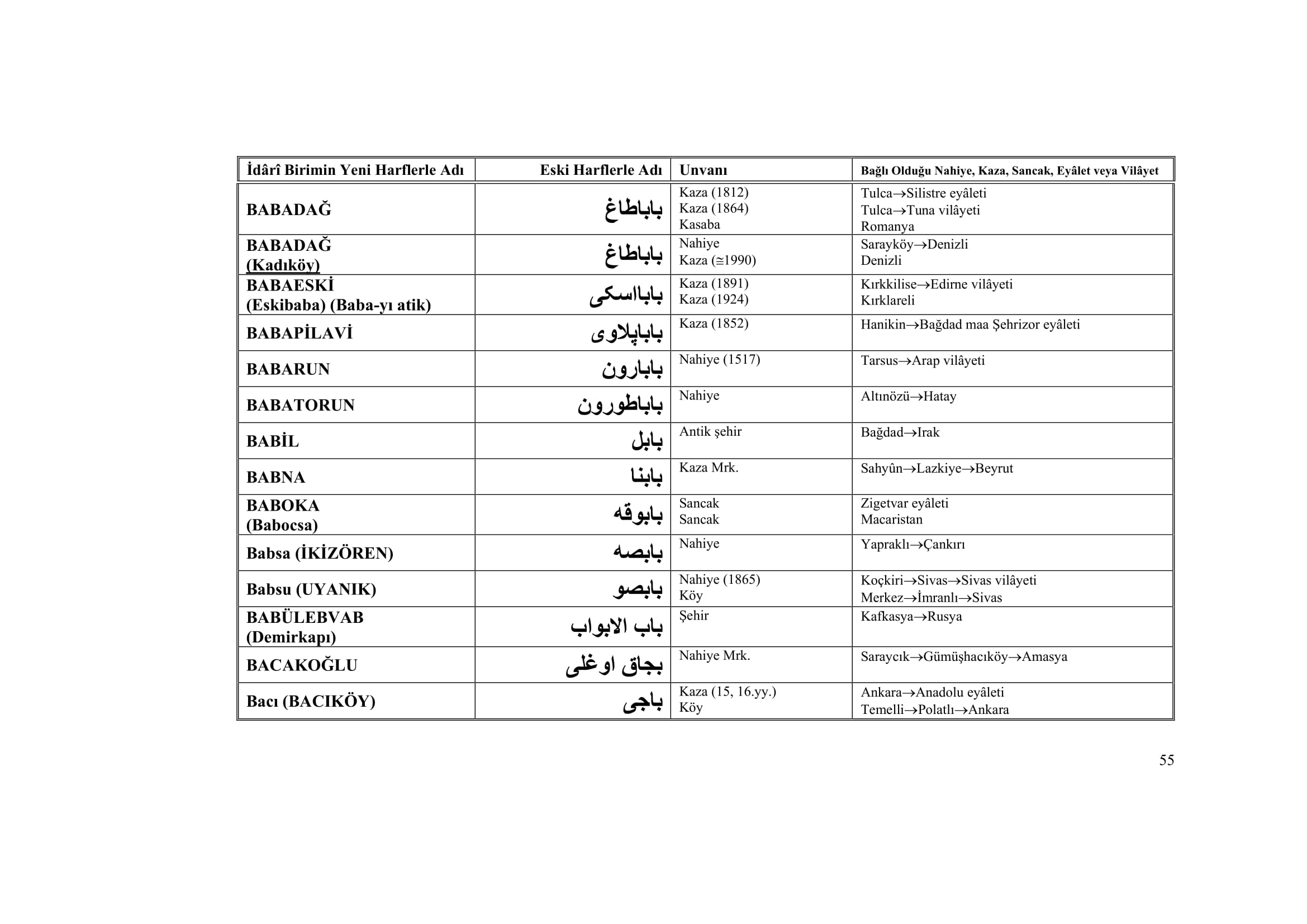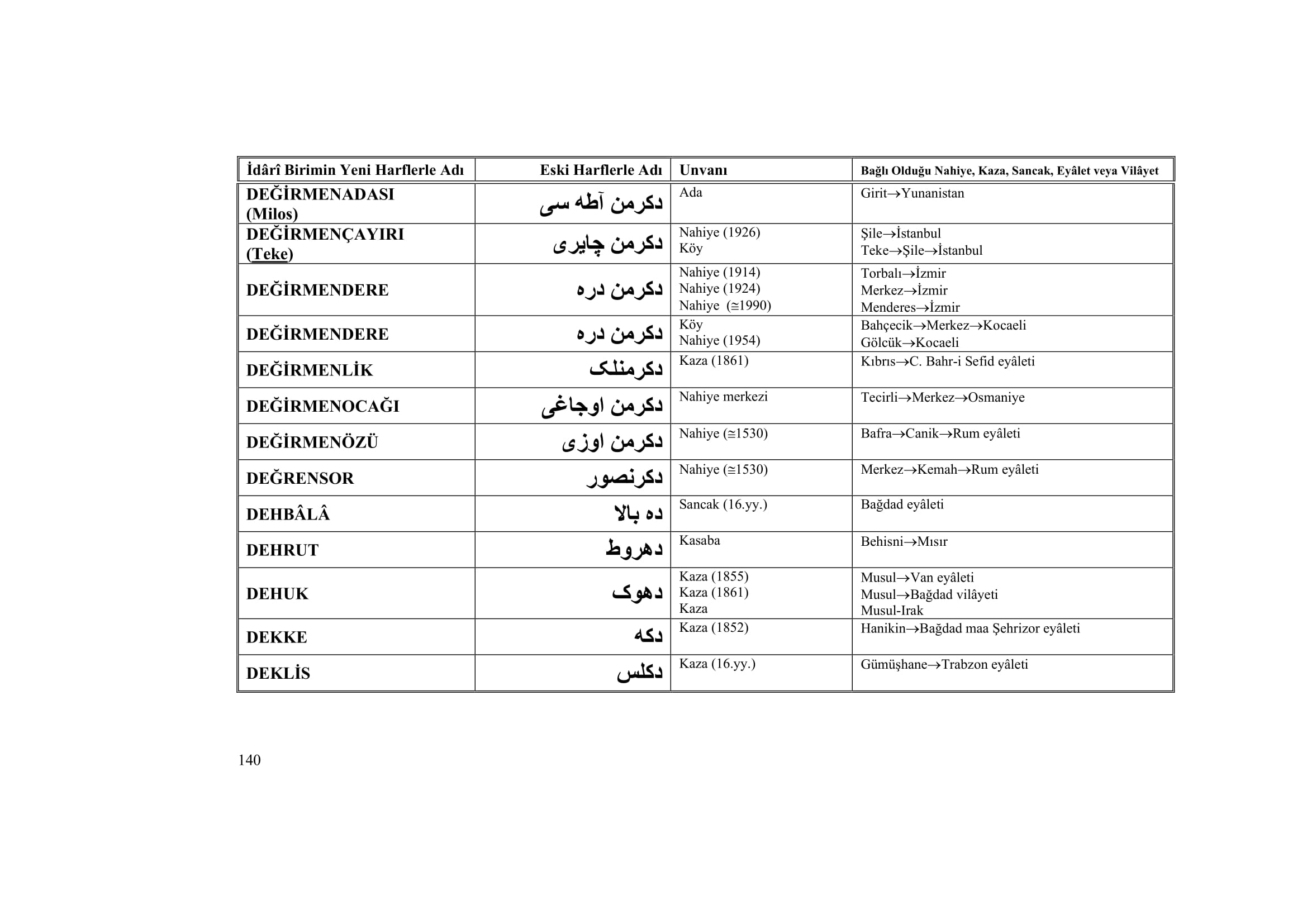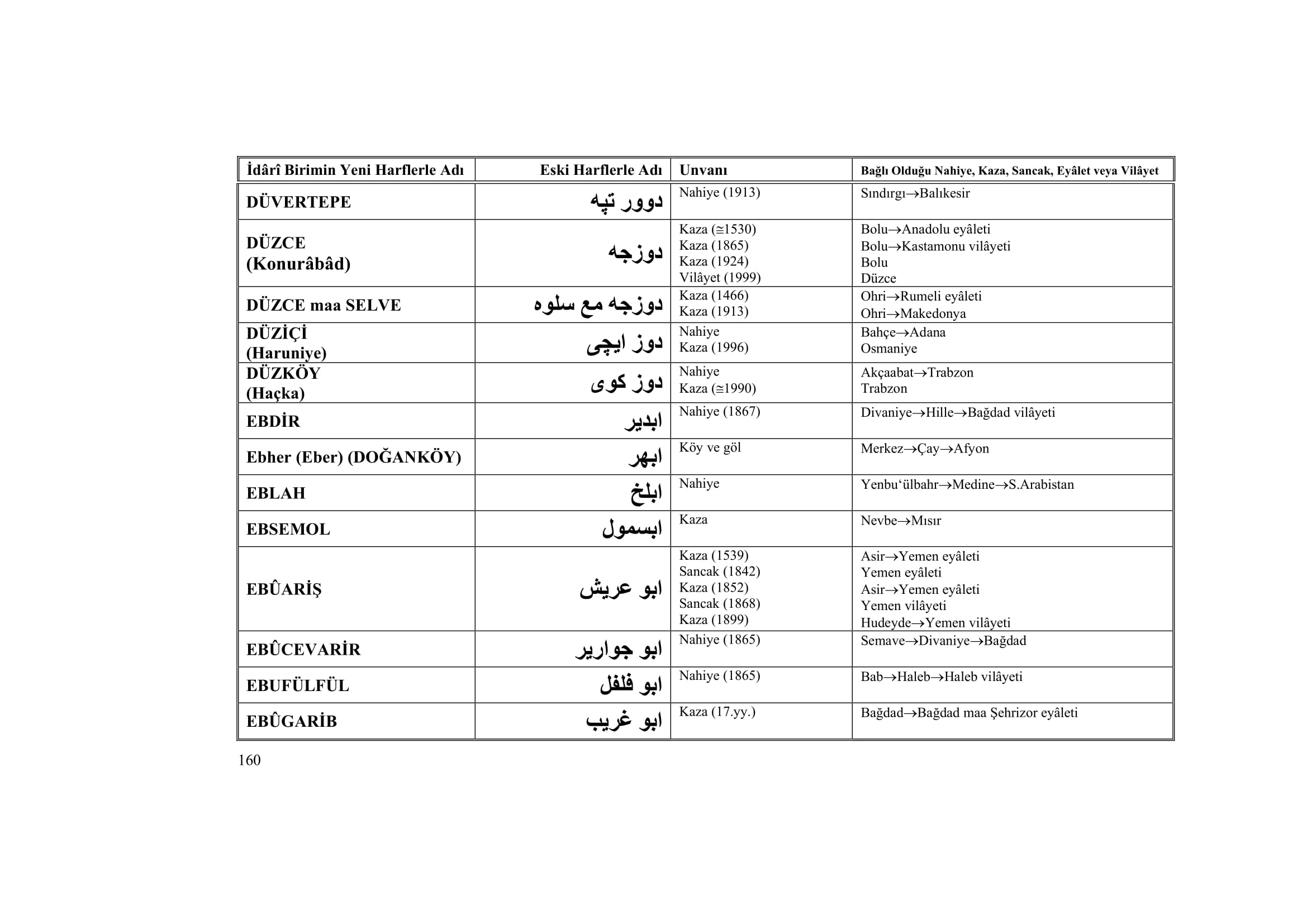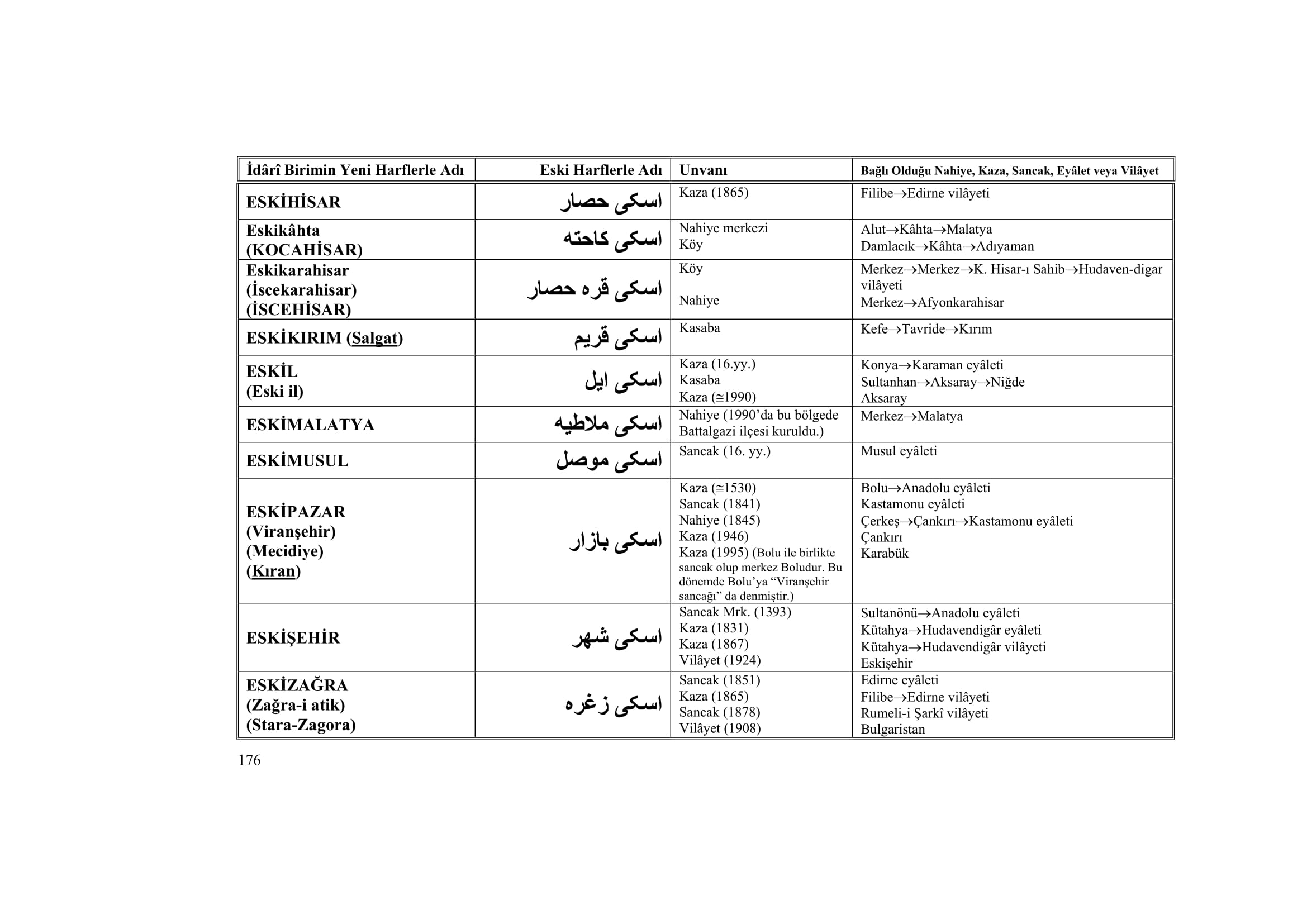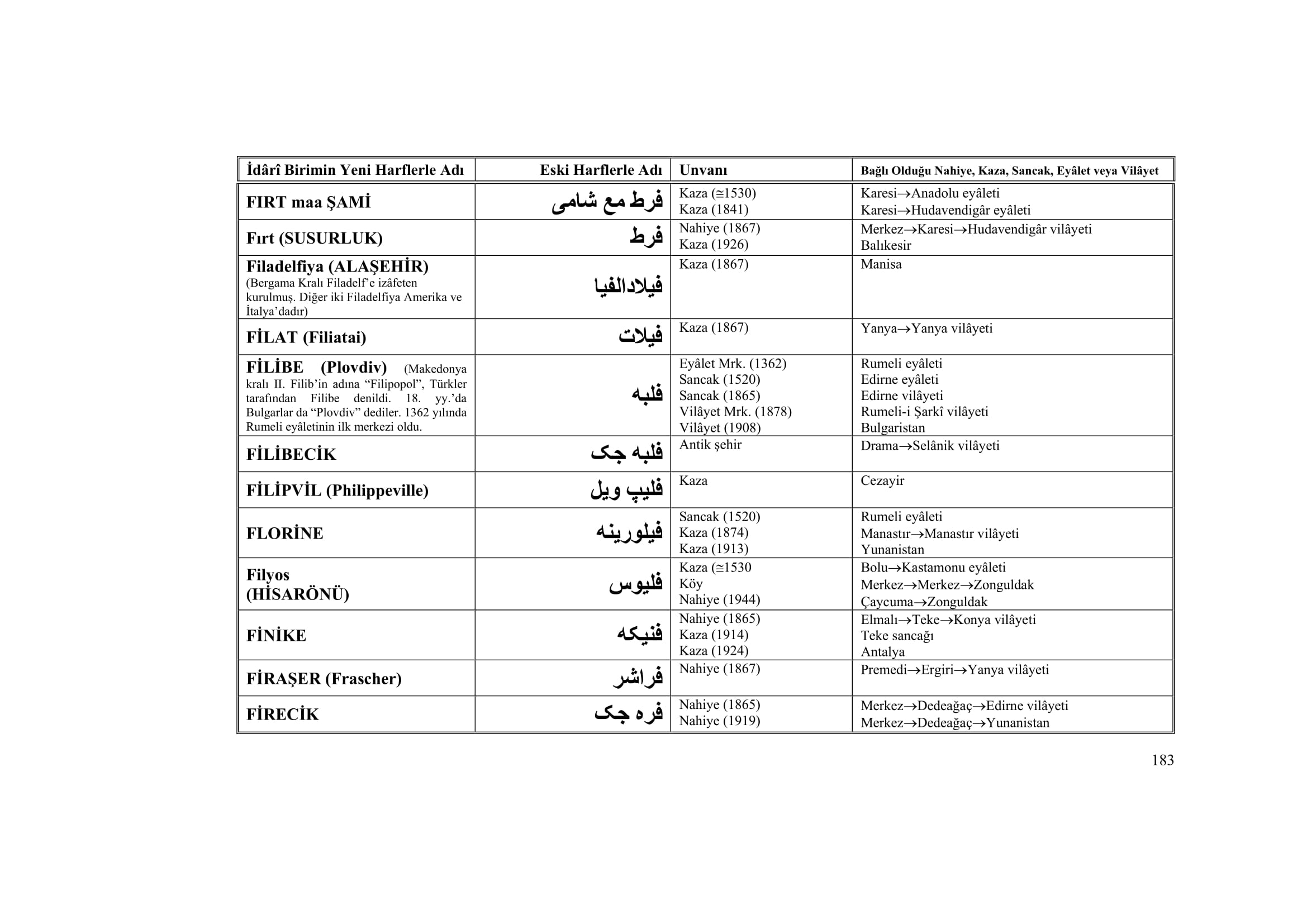 Şu an ismi bir çok kez değişen illerimiz, ilçelerimiz ve o dönemde Osmanlı hakimiyeti altında olan tüm topraklarda bulunan eyalet,vilayet, sancak, kaza ve nahiyeleri eski isimleriyle alfabetik sırada gösteren harika bir kaynakça. Eski ismi ile bildiğiniz ya da o dönem eski ismi ile anılan bir yeri bulmak adına kullanmak için güzel bir arşivdir.