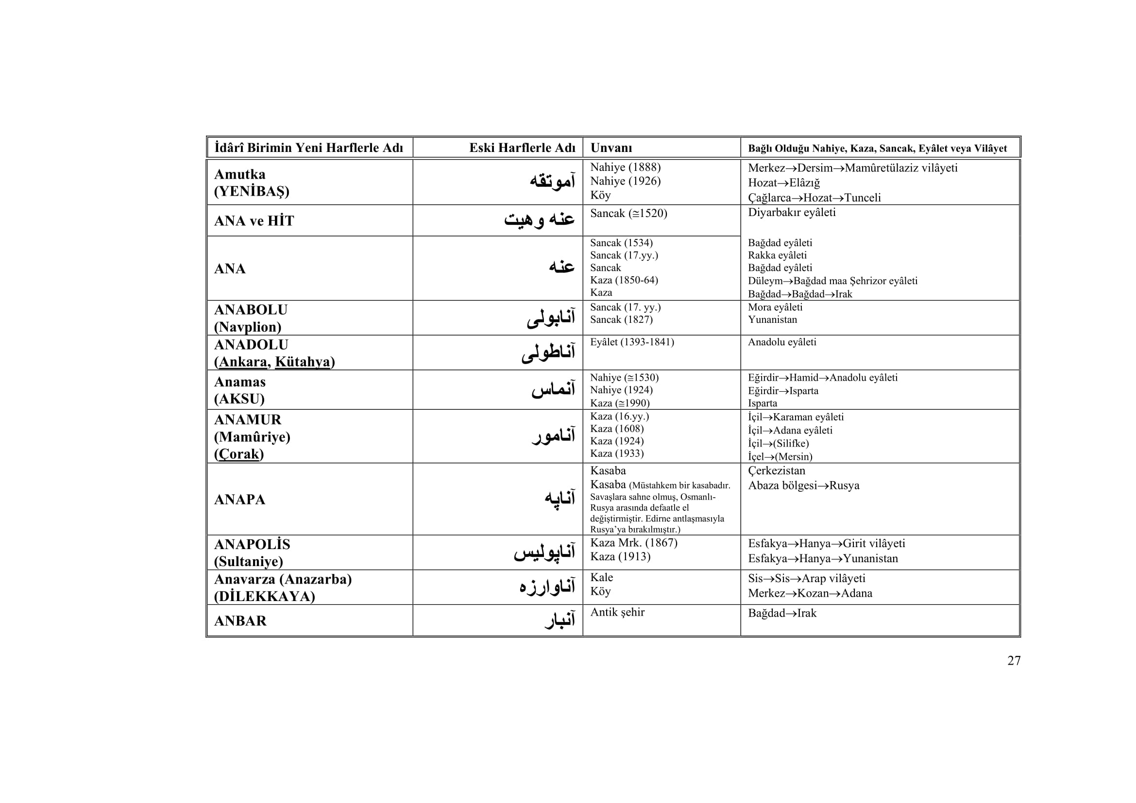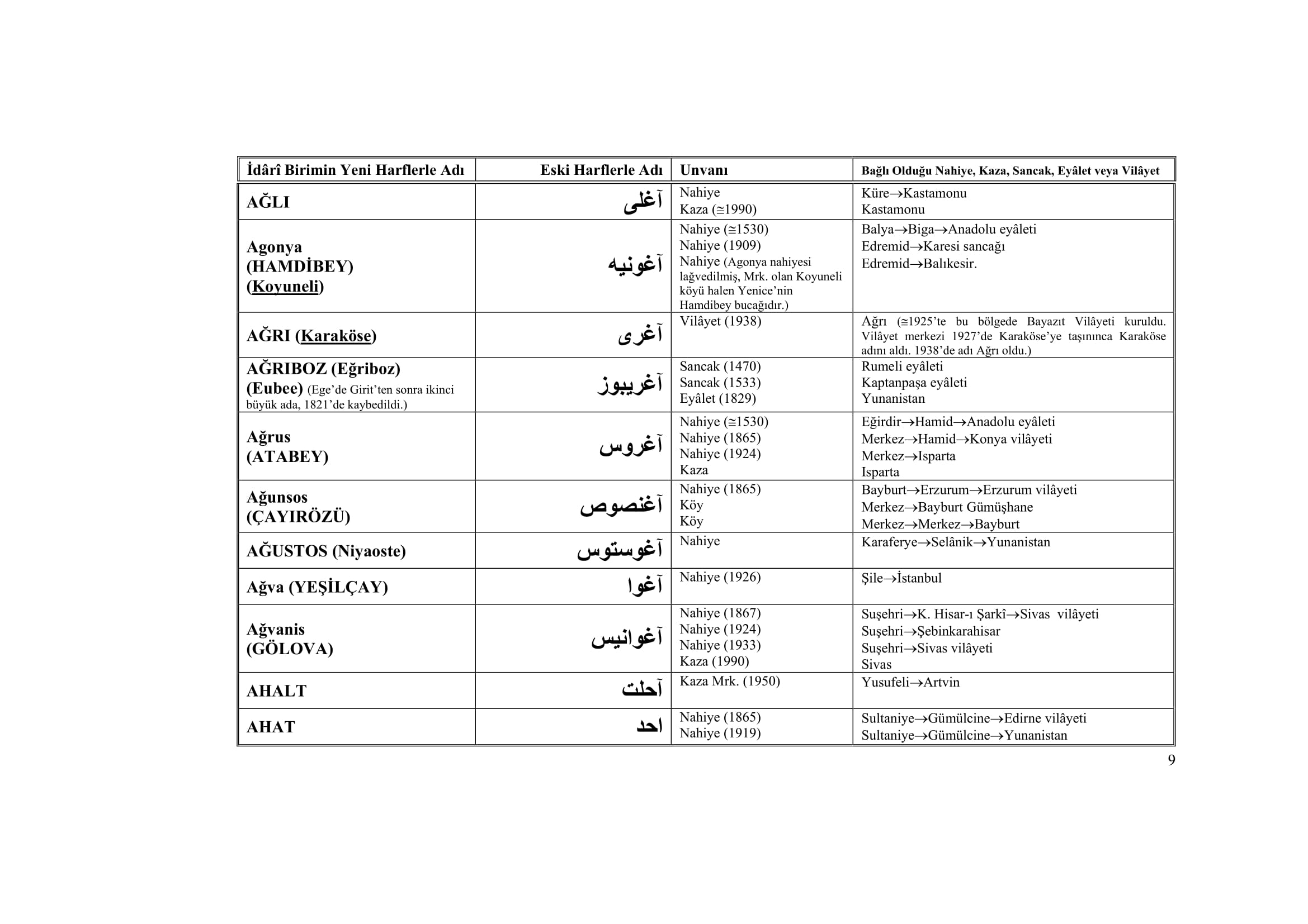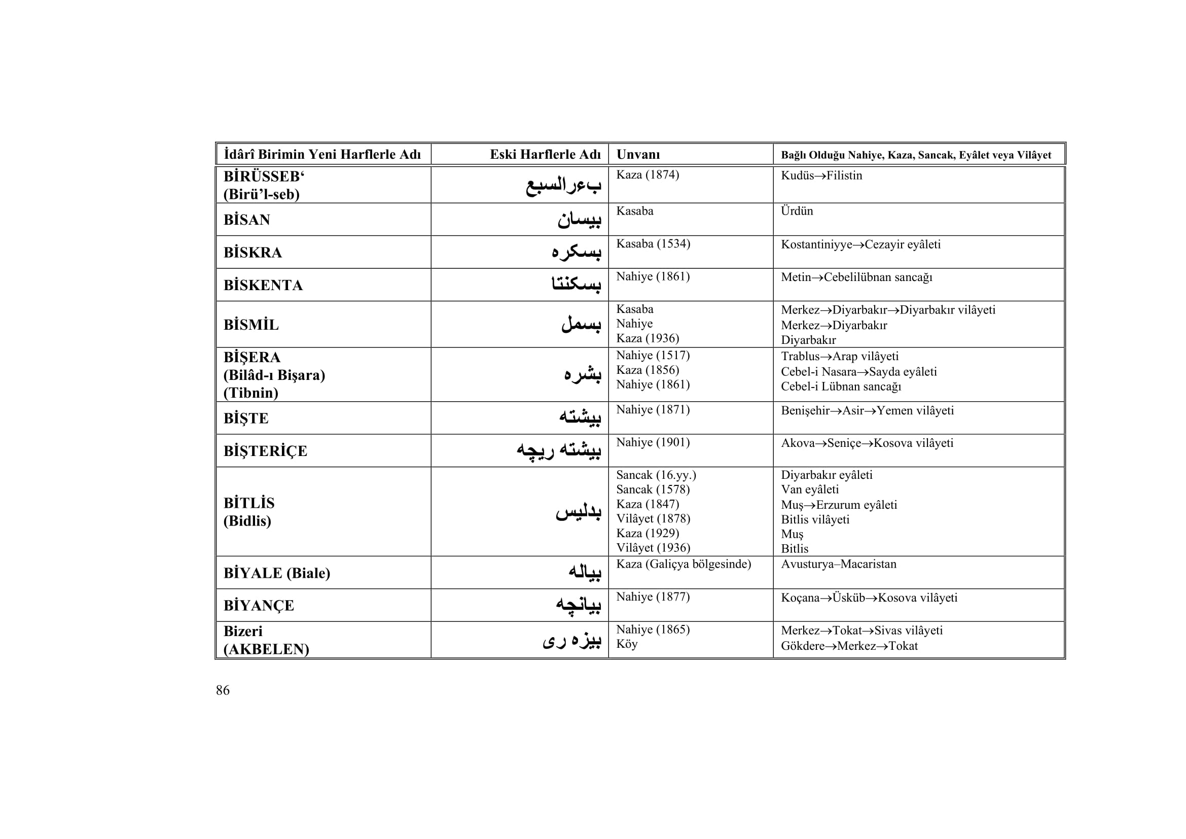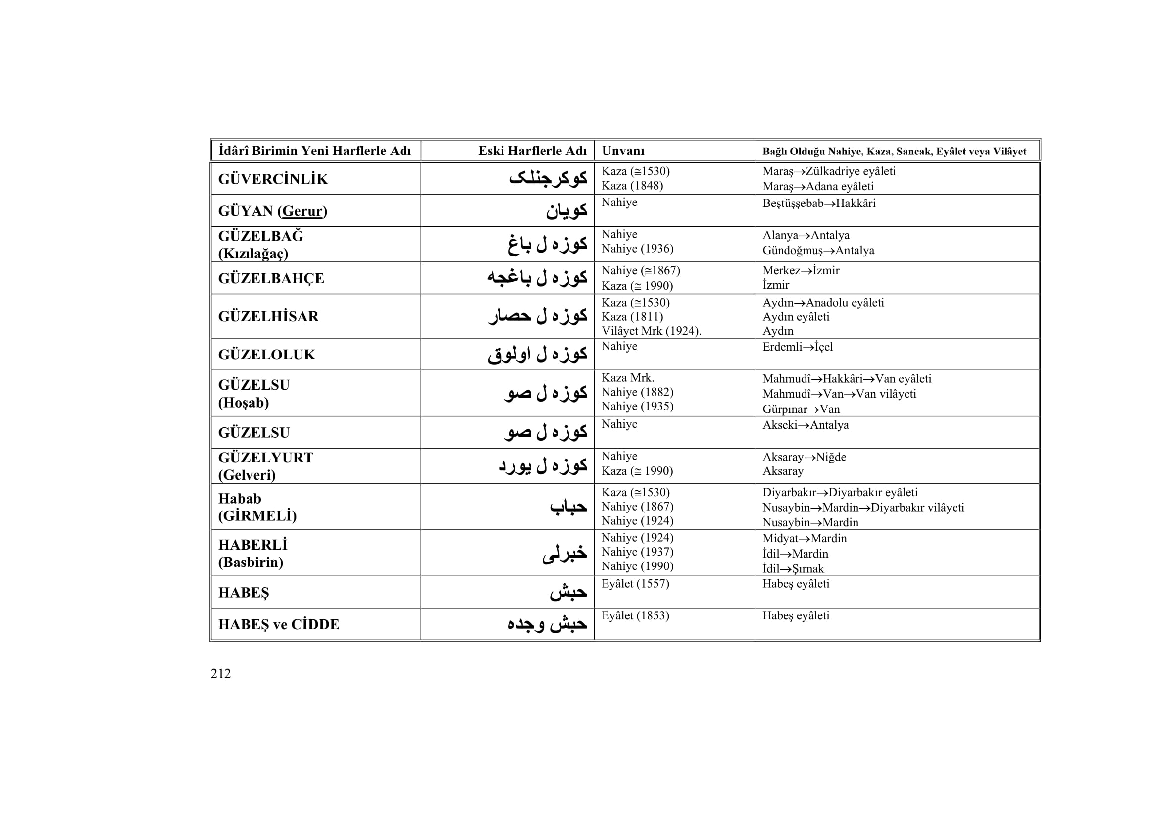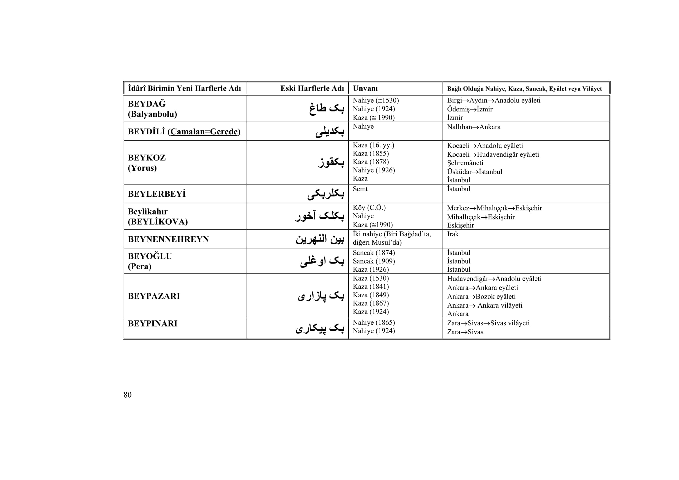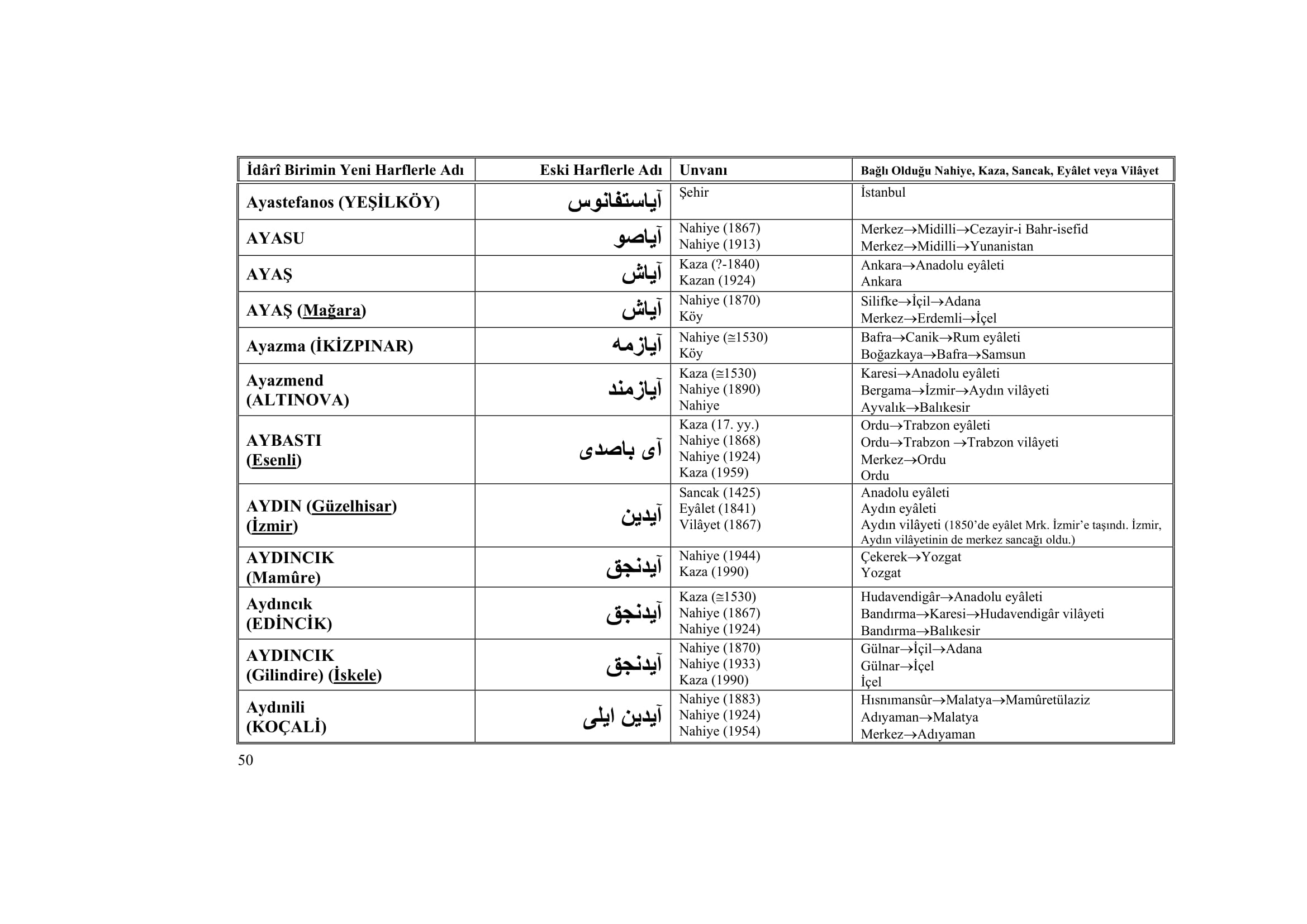 Şu an ismi bir çok kez değişen illerimiz, ilçelerimiz ve o dönemde Osmanlı hakimiyeti altında olan tüm topraklarda bulunan eyalet,vilayet, sancak, kaza ve nahiyeleri eski isimleriyle alfabetik sırada gösteren harika bir kaynakça. Eski ismi ile bildiğiniz ya da o dönem eski ismi ile anılan bir yeri bulmak adına kullanmak için güzel bir arşivdir.