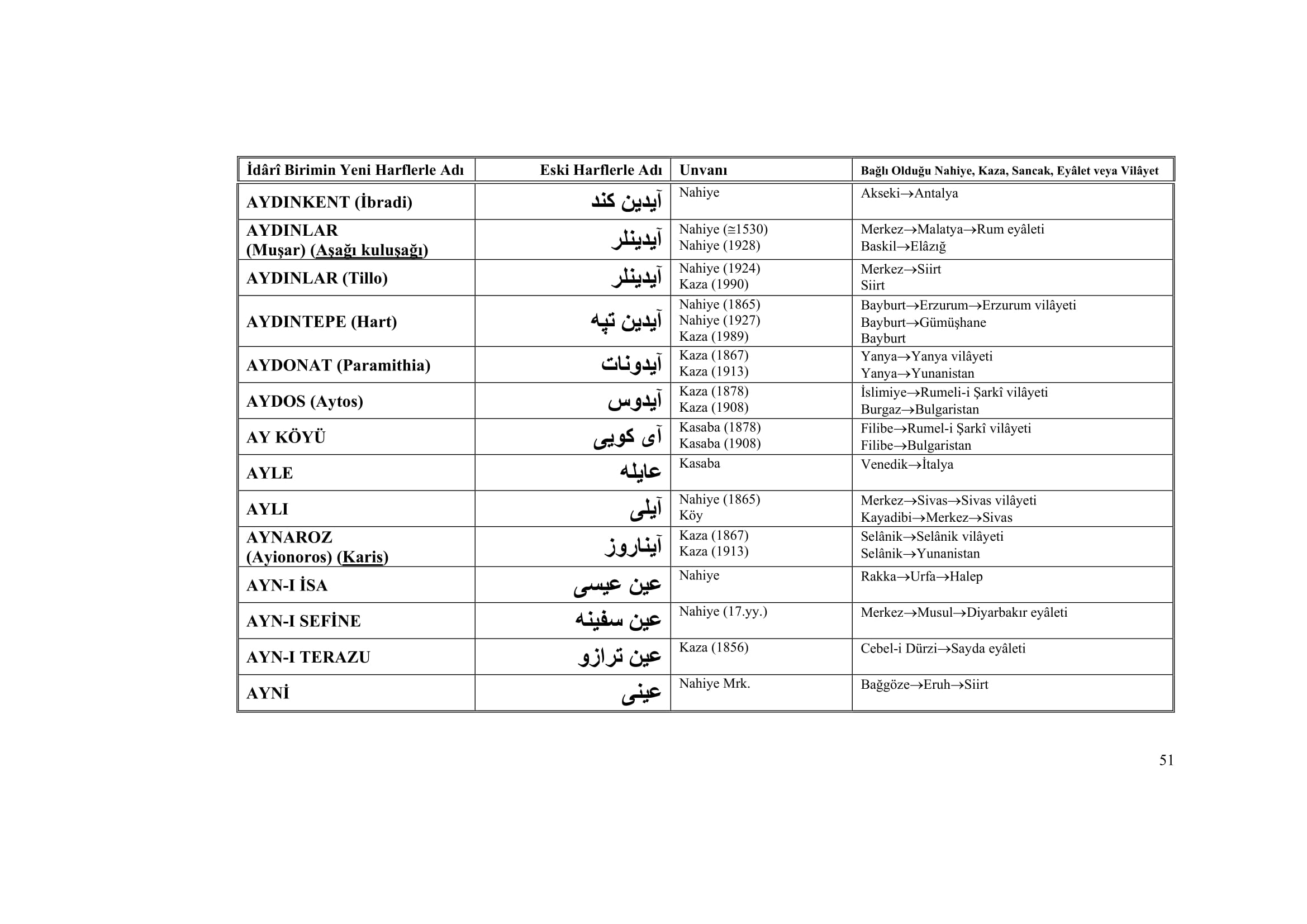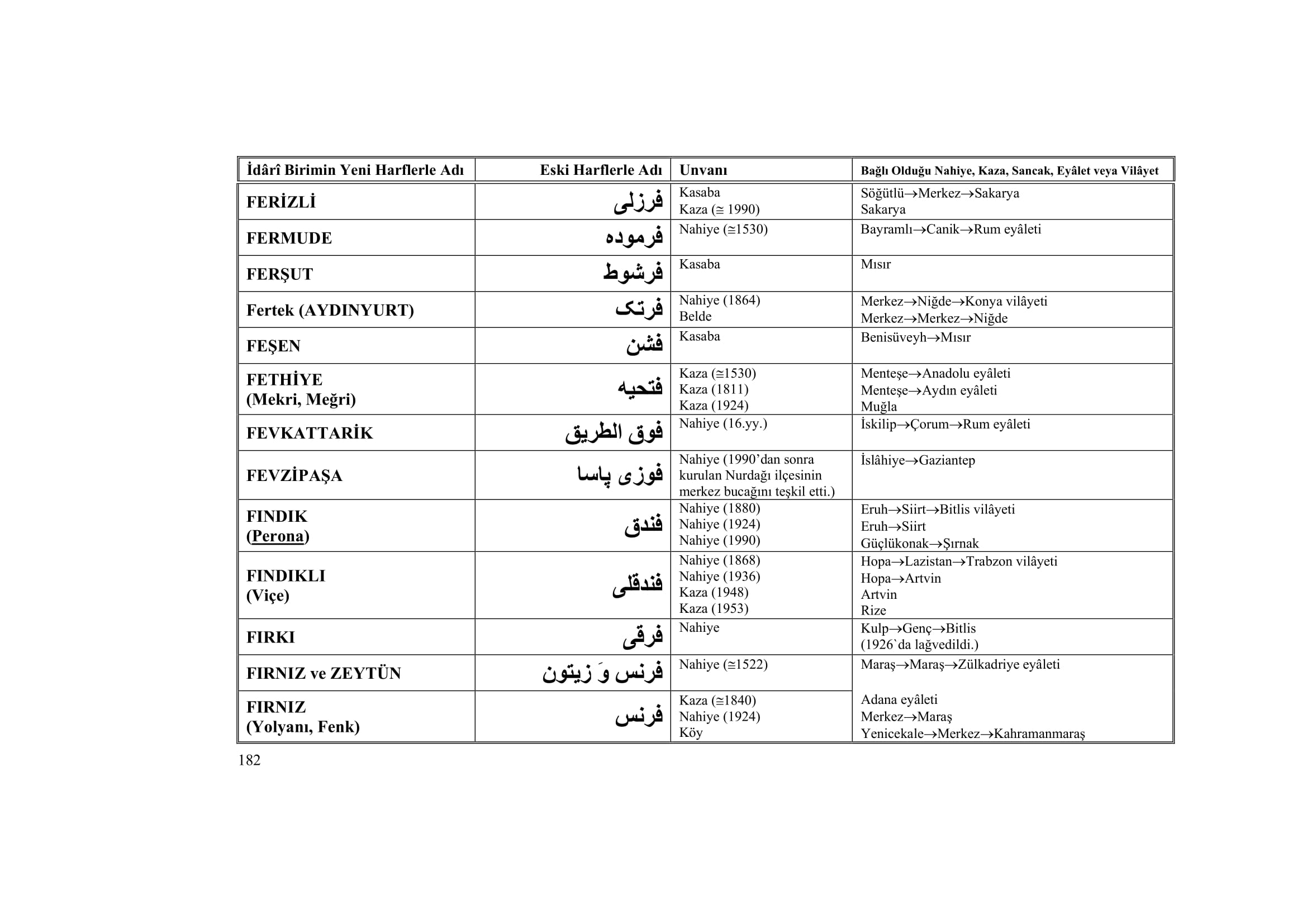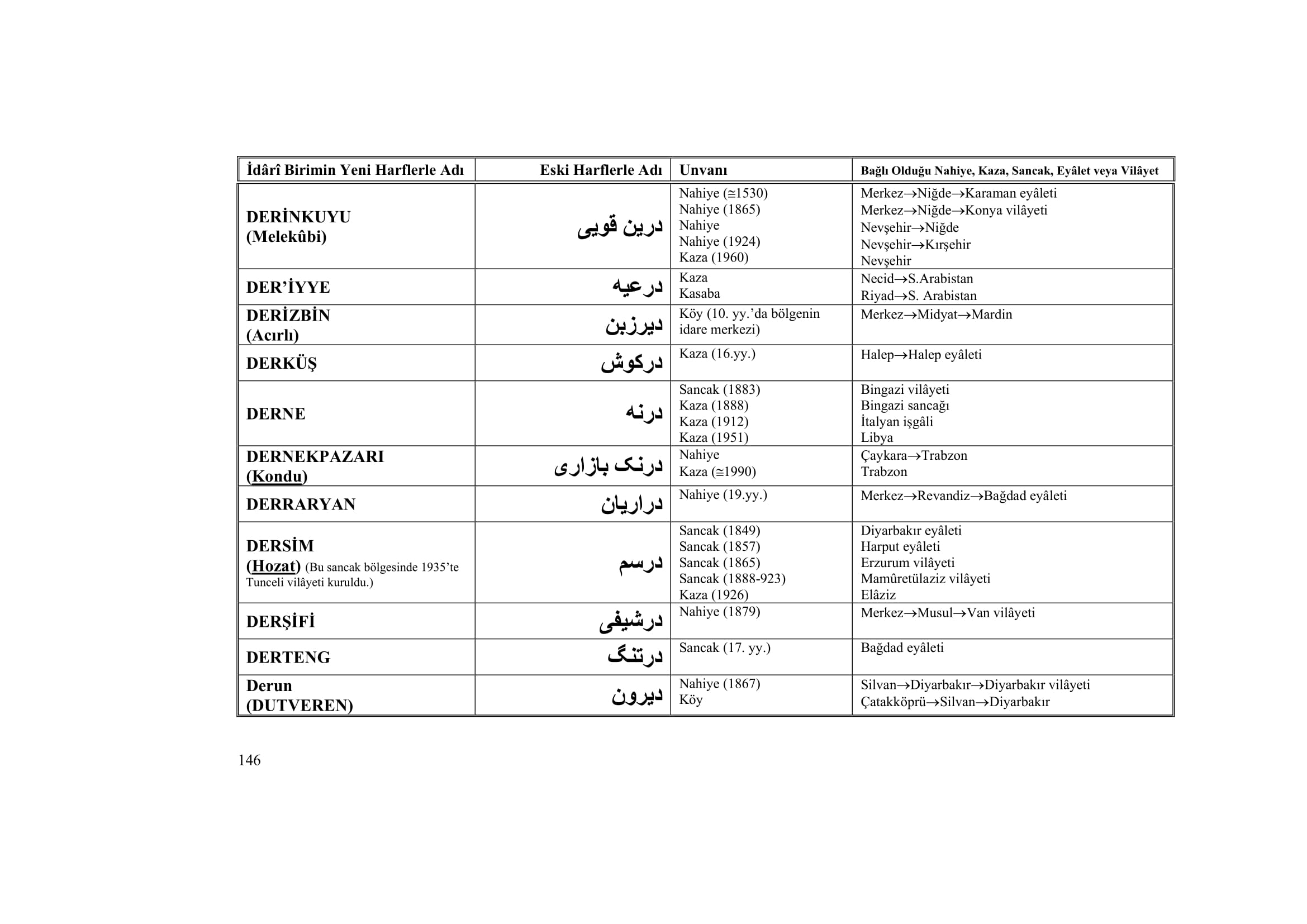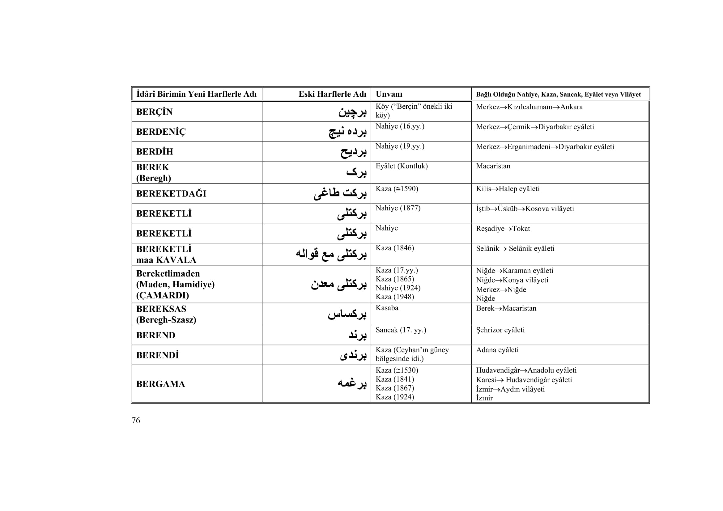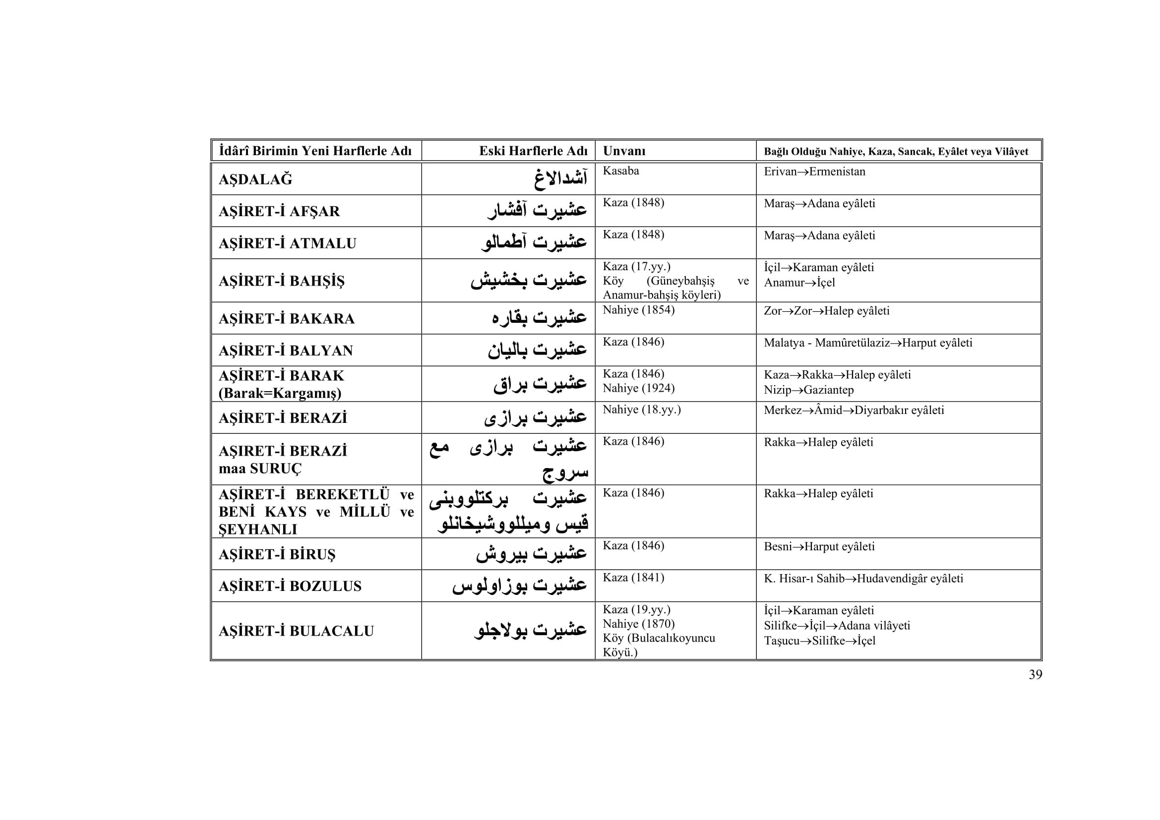 Şu an ismi bir çok kez değişen illerimiz, ilçelerimiz ve o dönemde Osmanlı hakimiyeti altında olan tüm topraklarda bulunan eyalet,vilayet, sancak, kaza ve nahiyeleri eski isimleriyle alfabetik sırada gösteren harika bir kaynakça. Eski ismi ile bildiğiniz ya da o dönem eski ismi ile anılan bir yeri bulmak adına kullanmak için güzel bir arşivdir.