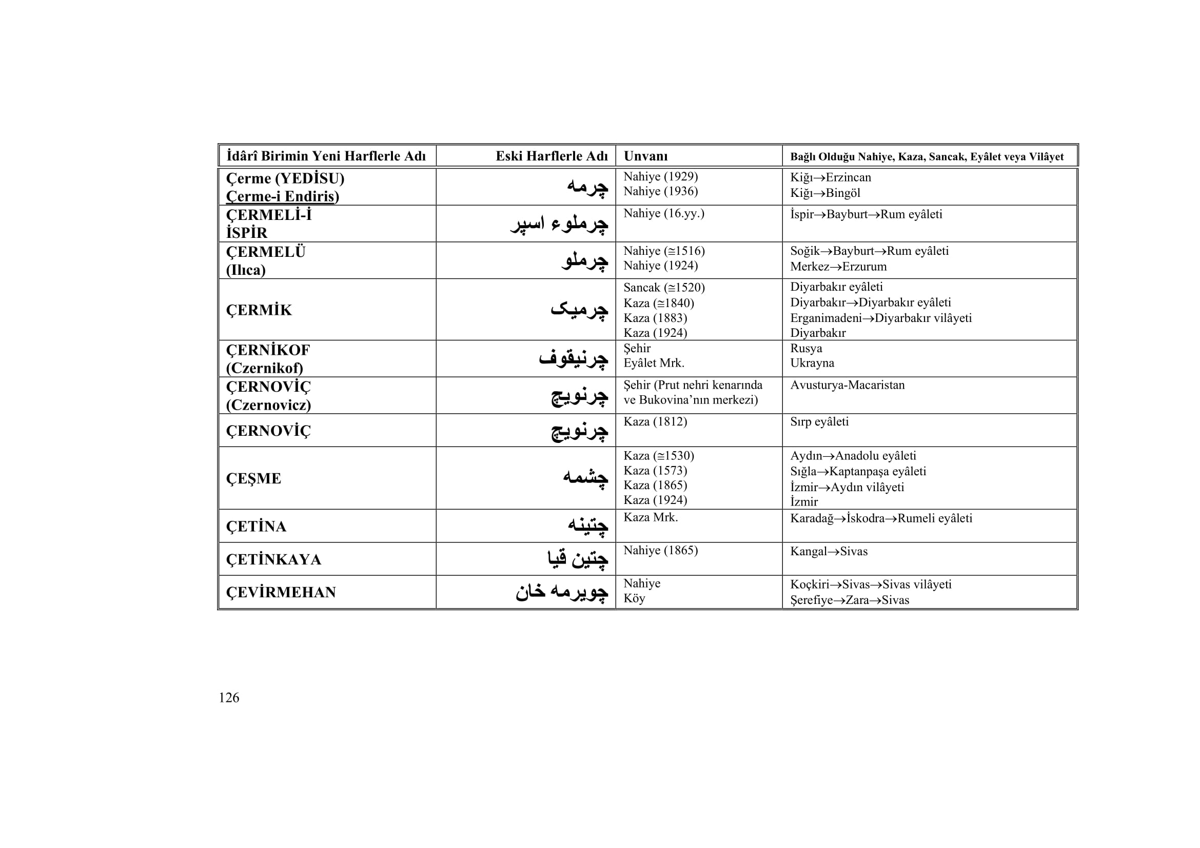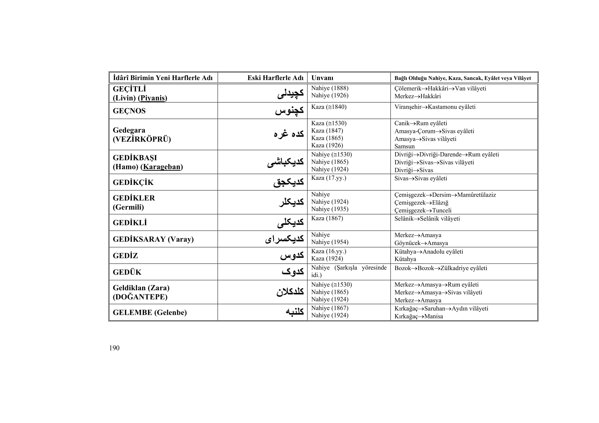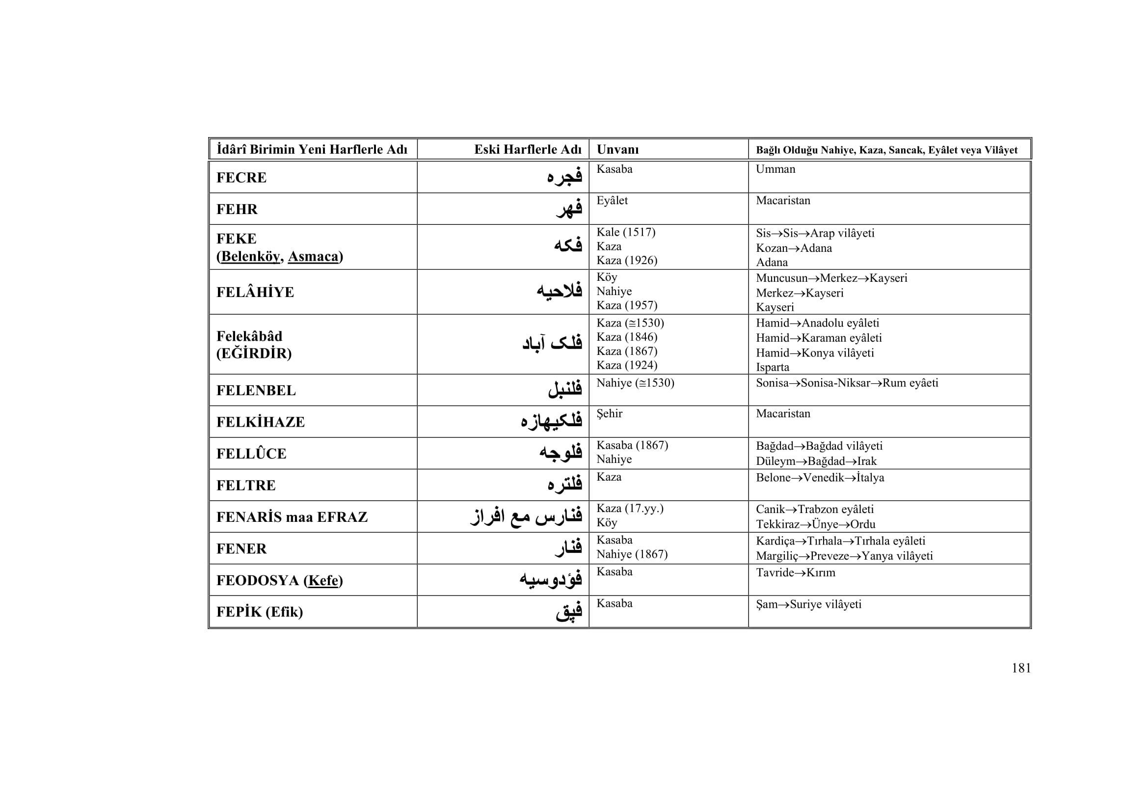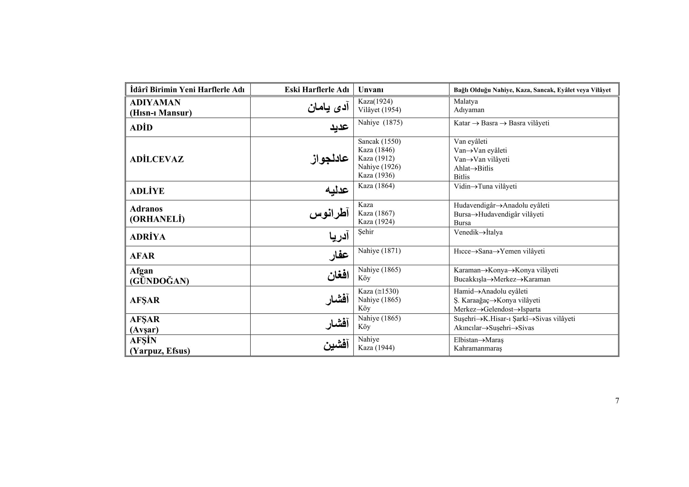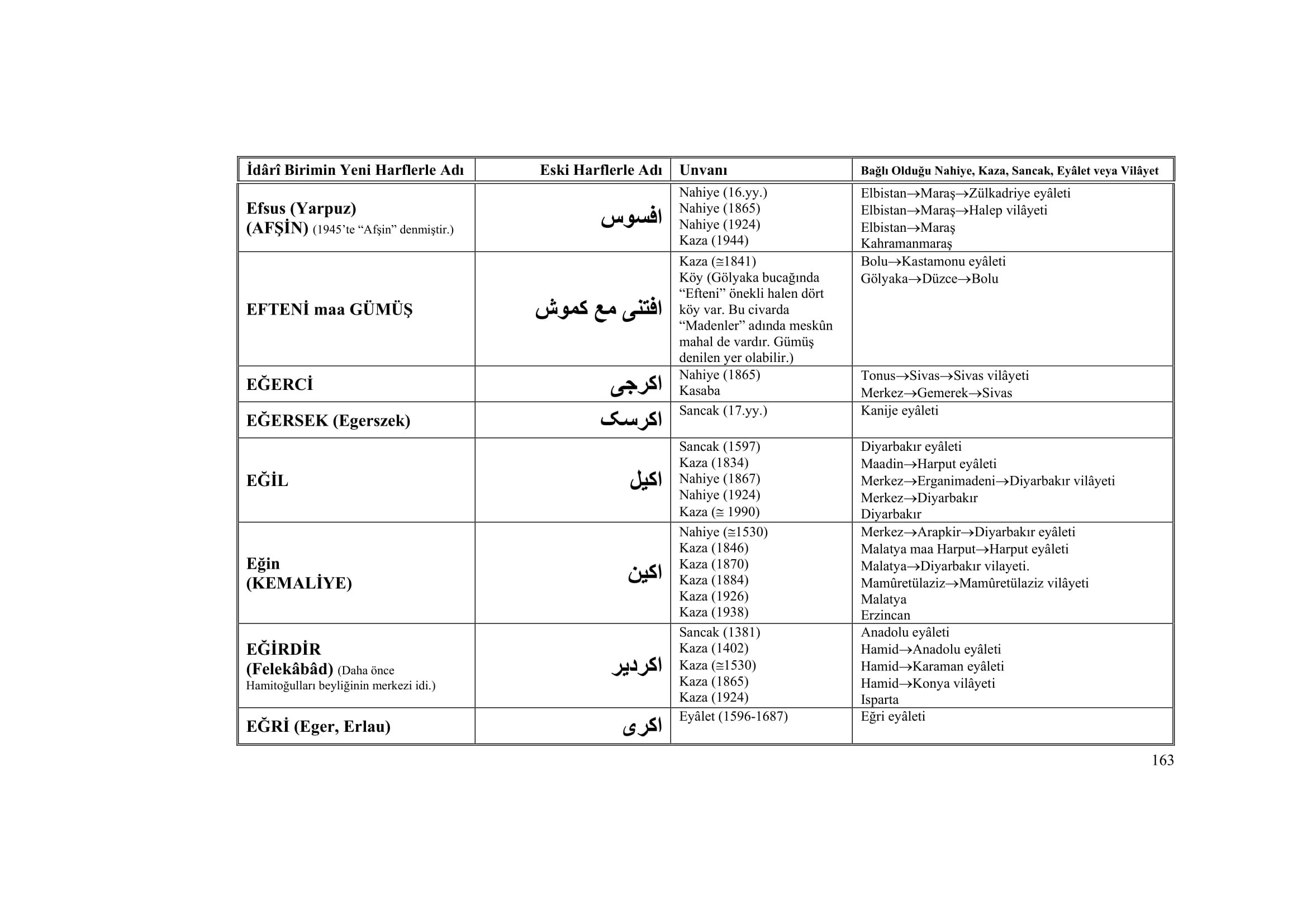 Şu an ismi bir çok kez değişen illerimiz, ilçelerimiz ve o dönemde Osmanlı hakimiyeti altında olan tüm topraklarda bulunan eyalet,vilayet, sancak, kaza ve nahiyeleri eski isimleriyle alfabetik sırada gösteren harika bir kaynakça. Eski ismi ile bildiğiniz ya da o dönem eski ismi ile anılan bir yeri bulmak adına kullanmak için güzel bir arşivdir.