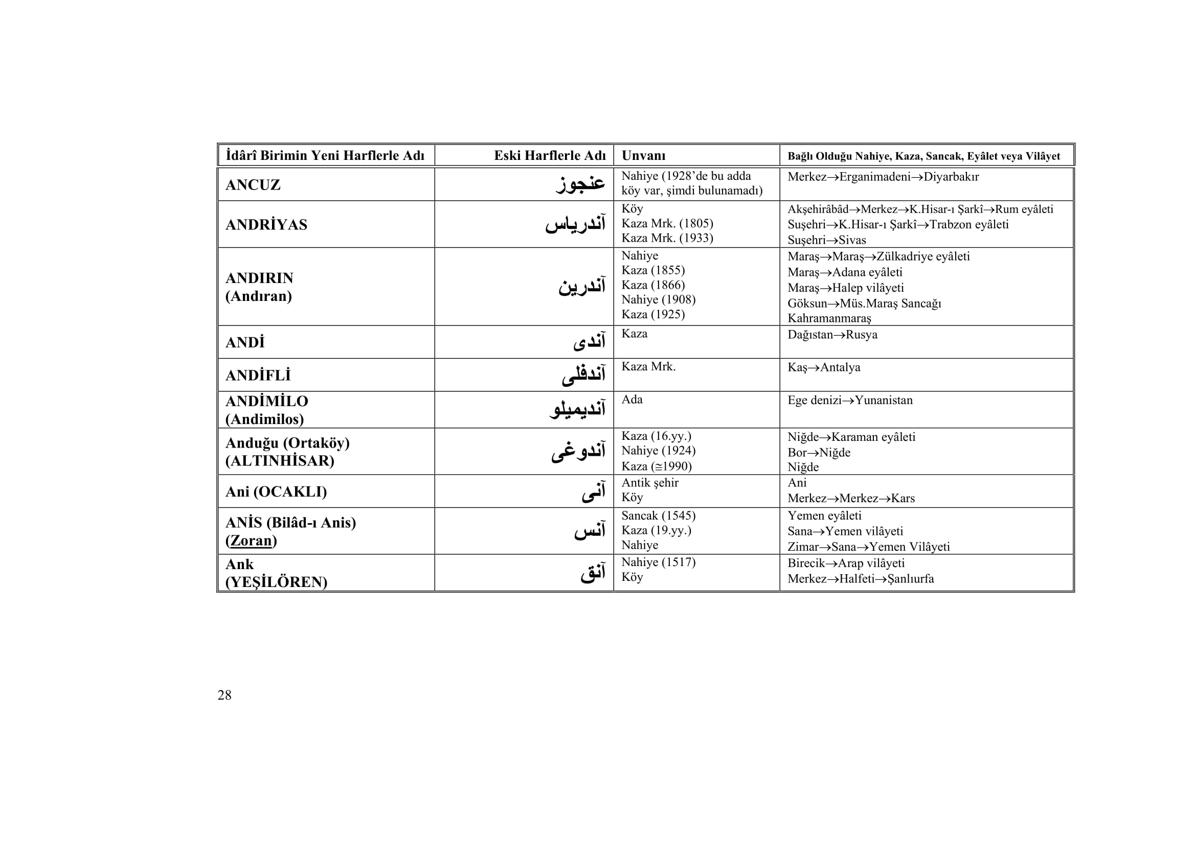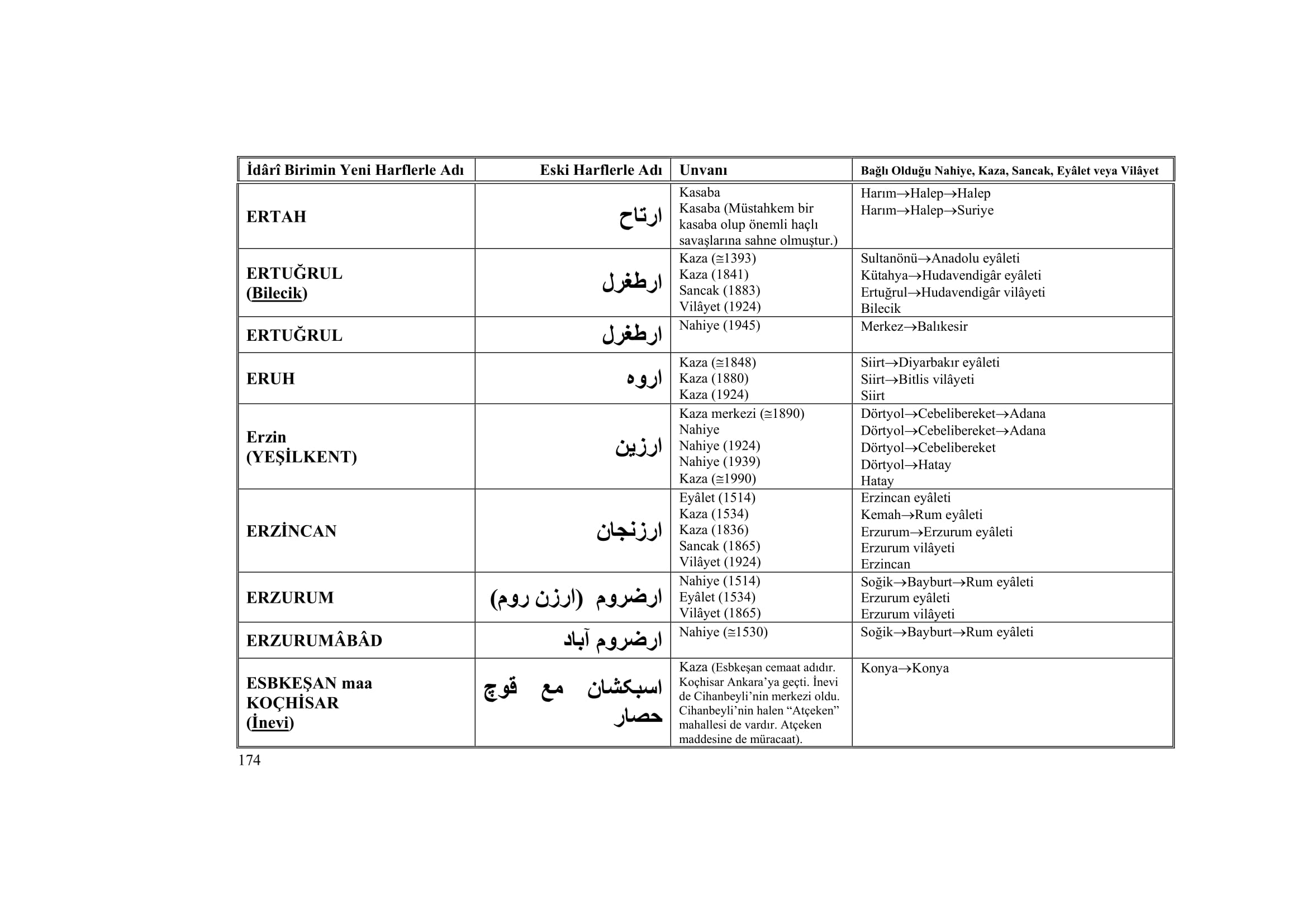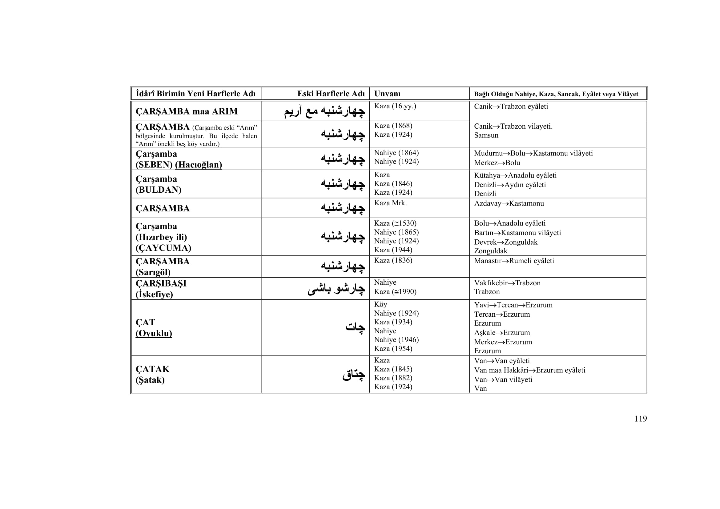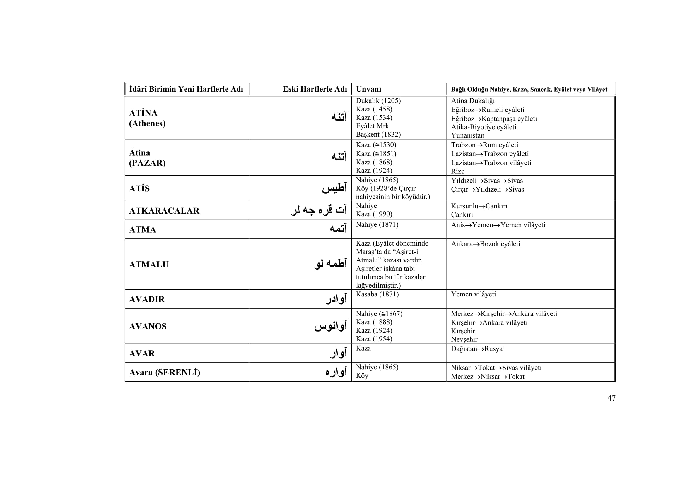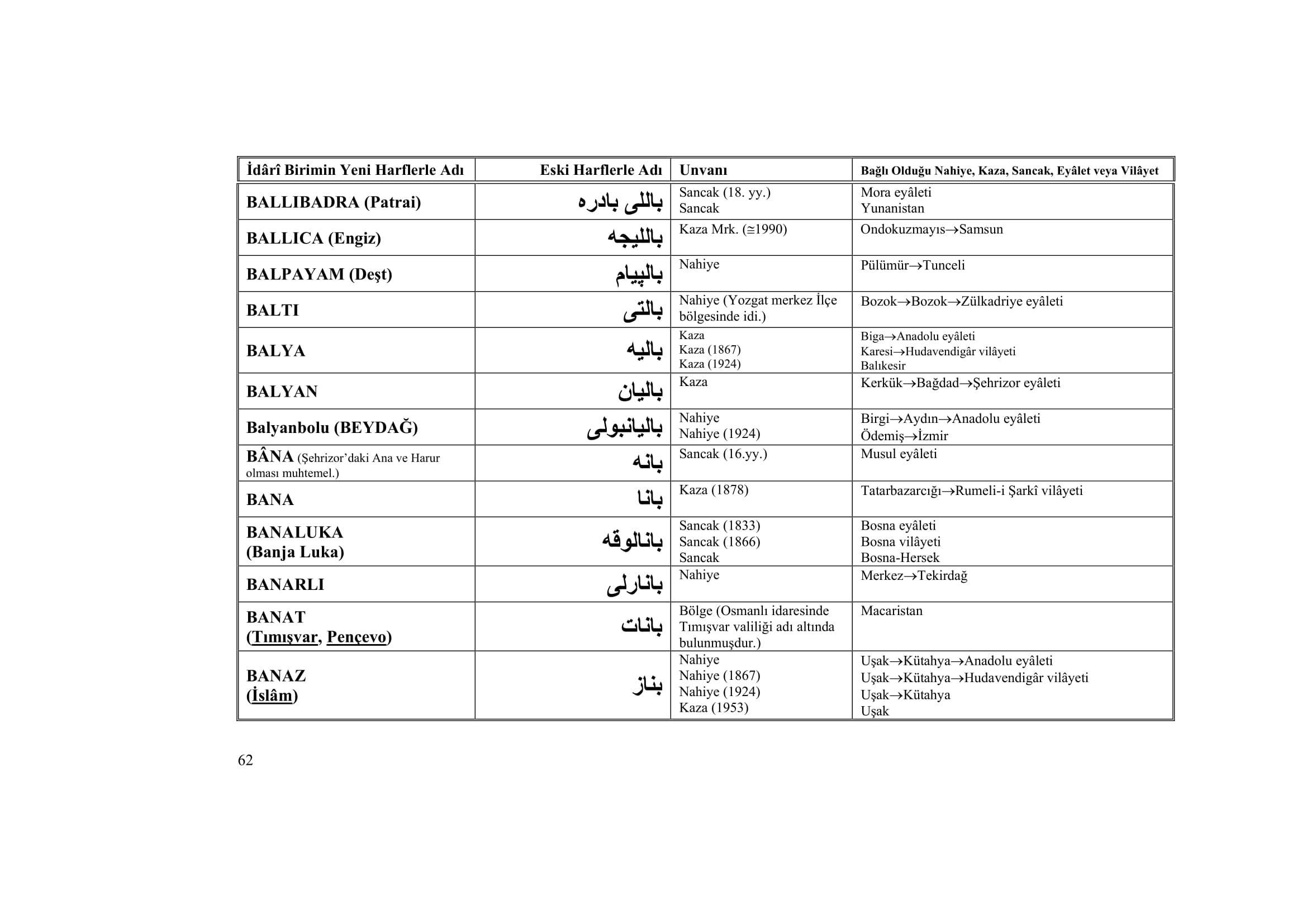 Şu an ismi bir çok kez değişen illerimiz, ilçelerimiz ve o dönemde Osmanlı hakimiyeti altında olan tüm topraklarda bulunan eyalet,vilayet, sancak, kaza ve nahiyeleri eski isimleriyle alfabetik sırada gösteren harika bir kaynakça. Eski ismi ile bildiğiniz ya da o dönem eski ismi ile anılan bir yeri bulmak adına kullanmak için güzel bir arşivdir.
