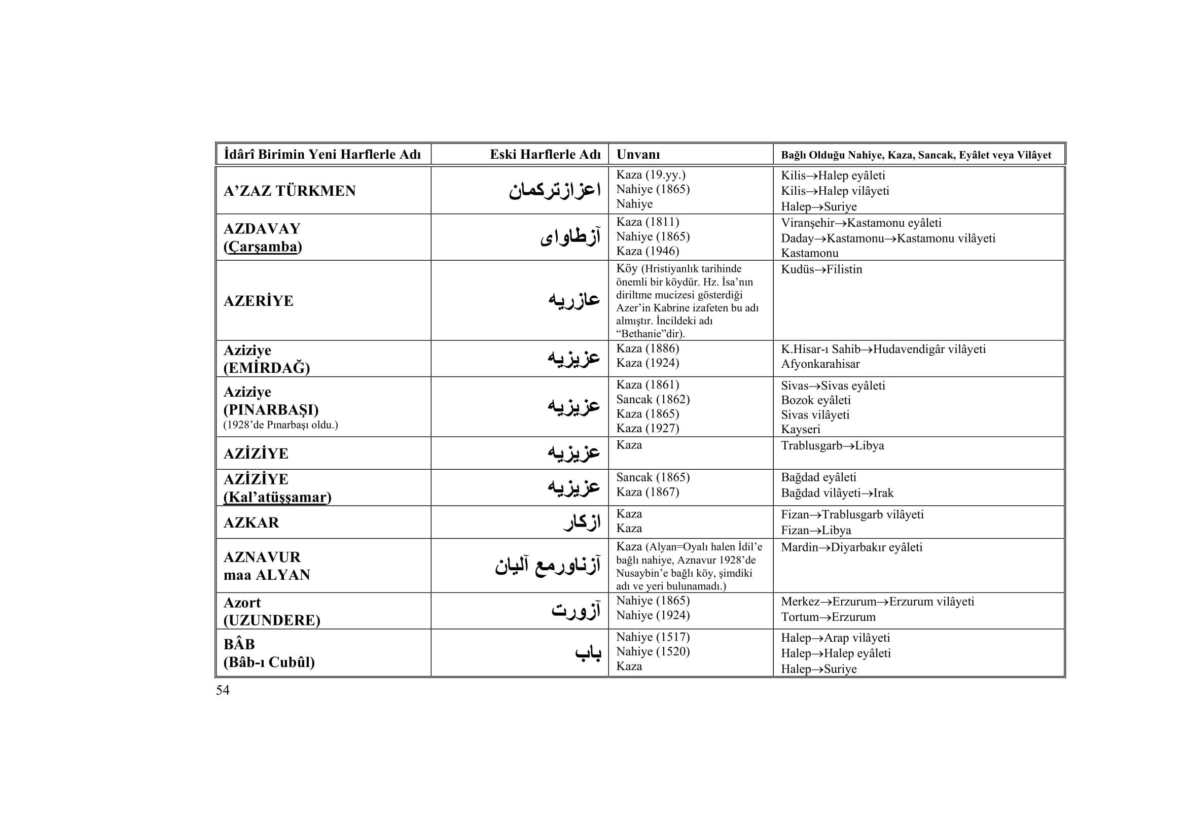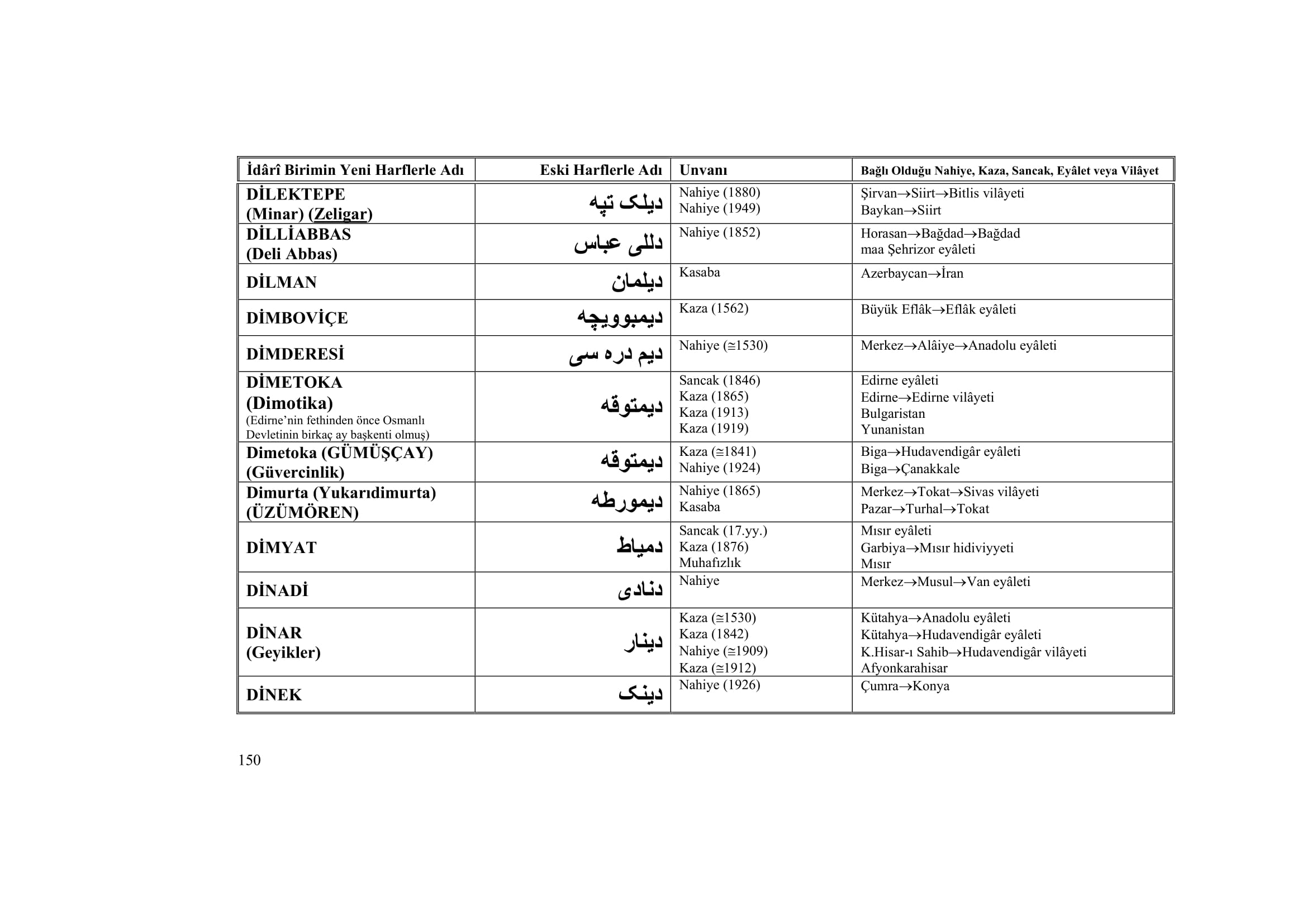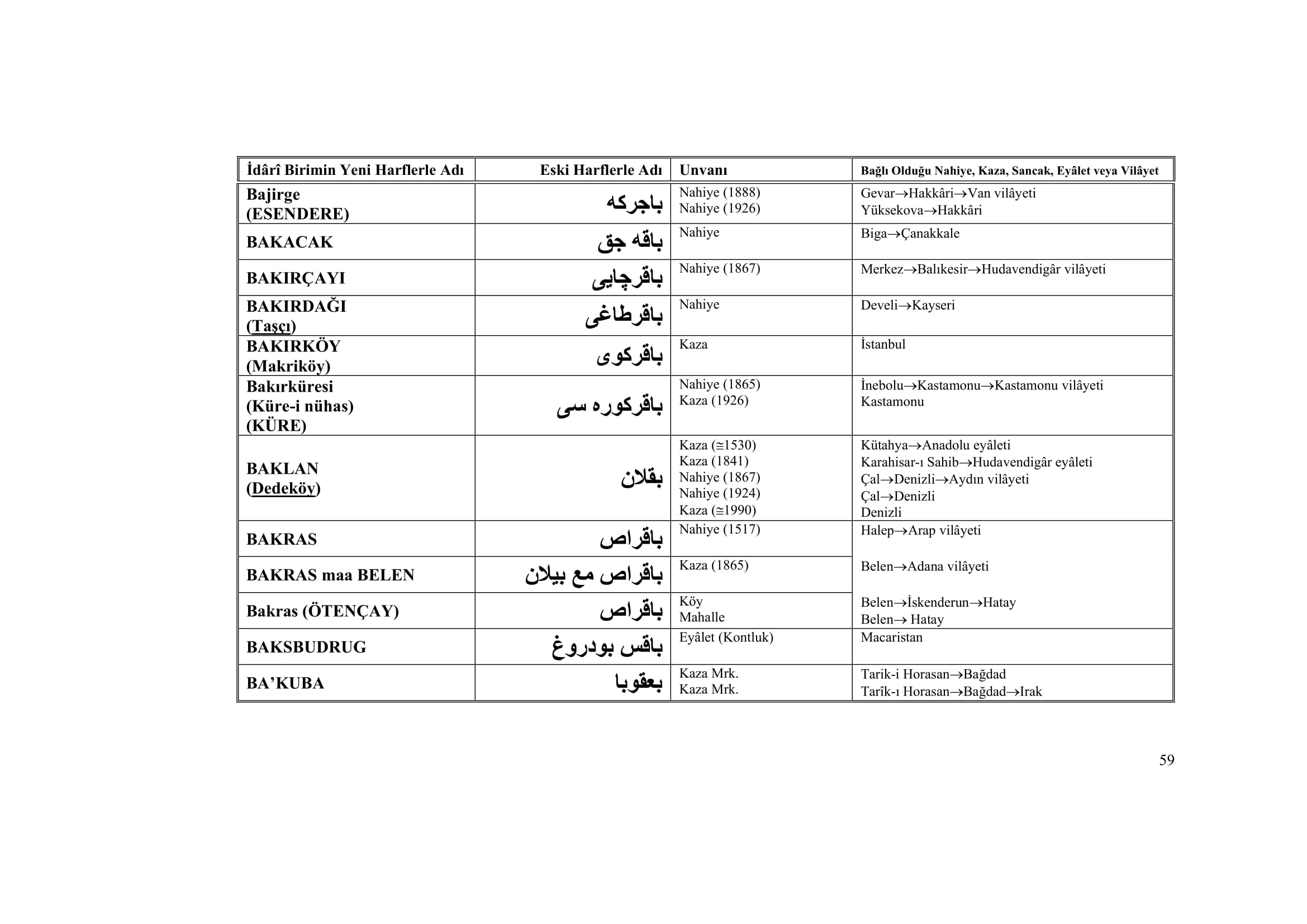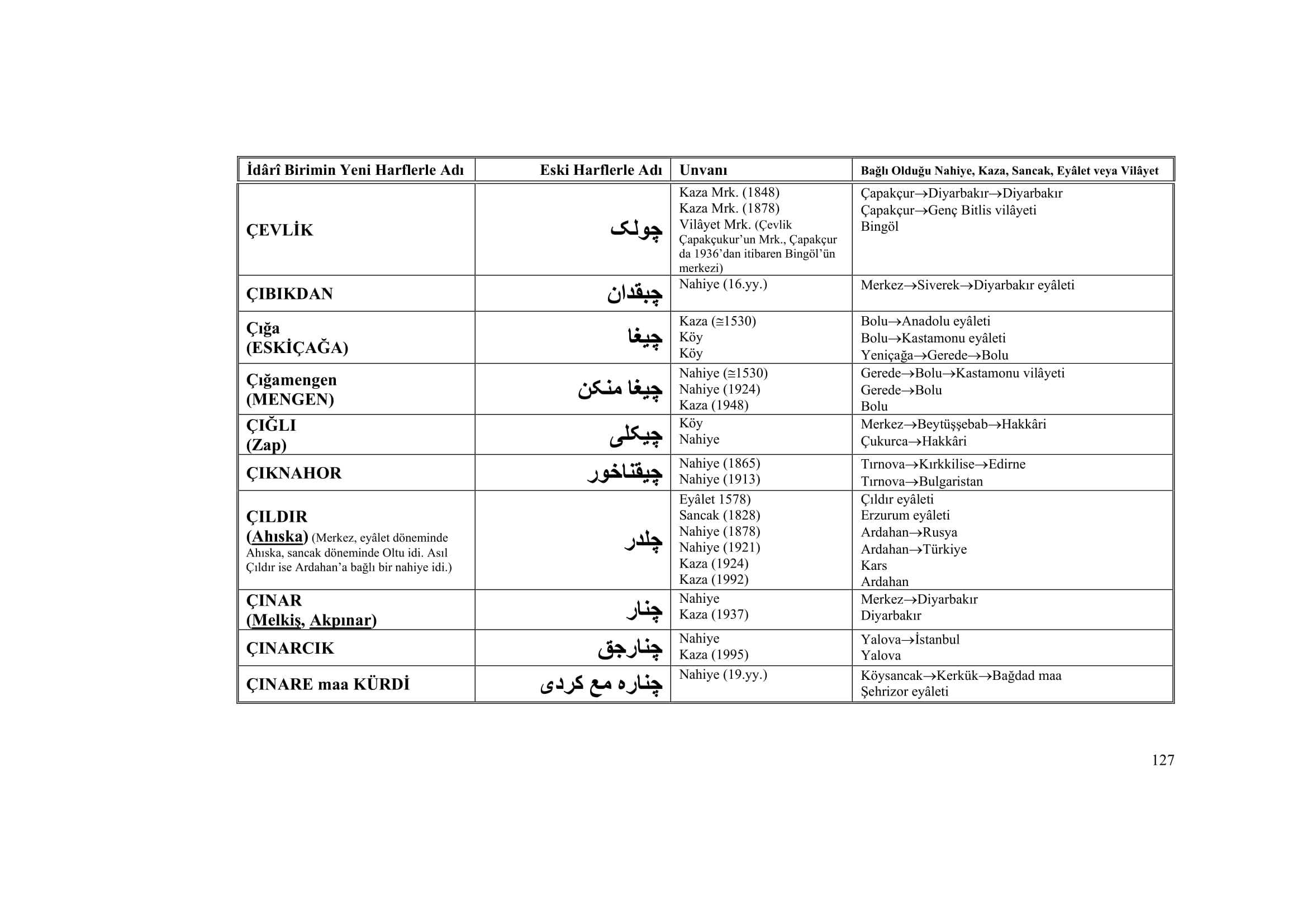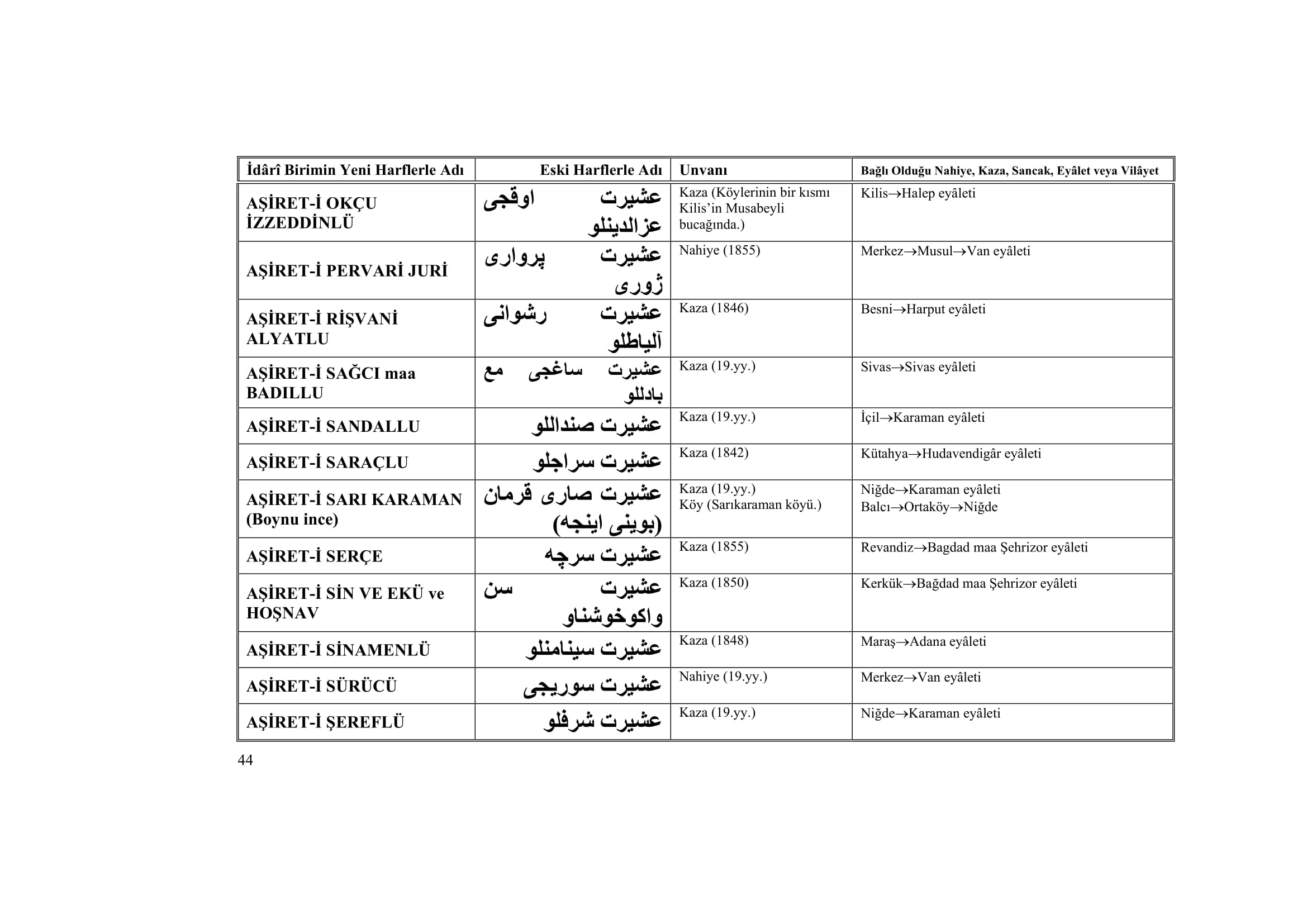 Şu an ismi bir çok kez değişen illerimiz, ilçelerimiz ve o dönemde Osmanlı hakimiyeti altında olan tüm topraklarda bulunan eyalet,vilayet, sancak, kaza ve nahiyeleri eski isimleriyle alfabetik sırada gösteren harika bir kaynakça. Eski ismi ile bildiğiniz ya da o dönem eski ismi ile anılan bir yeri bulmak adına kullanmak için güzel bir arşivdir.