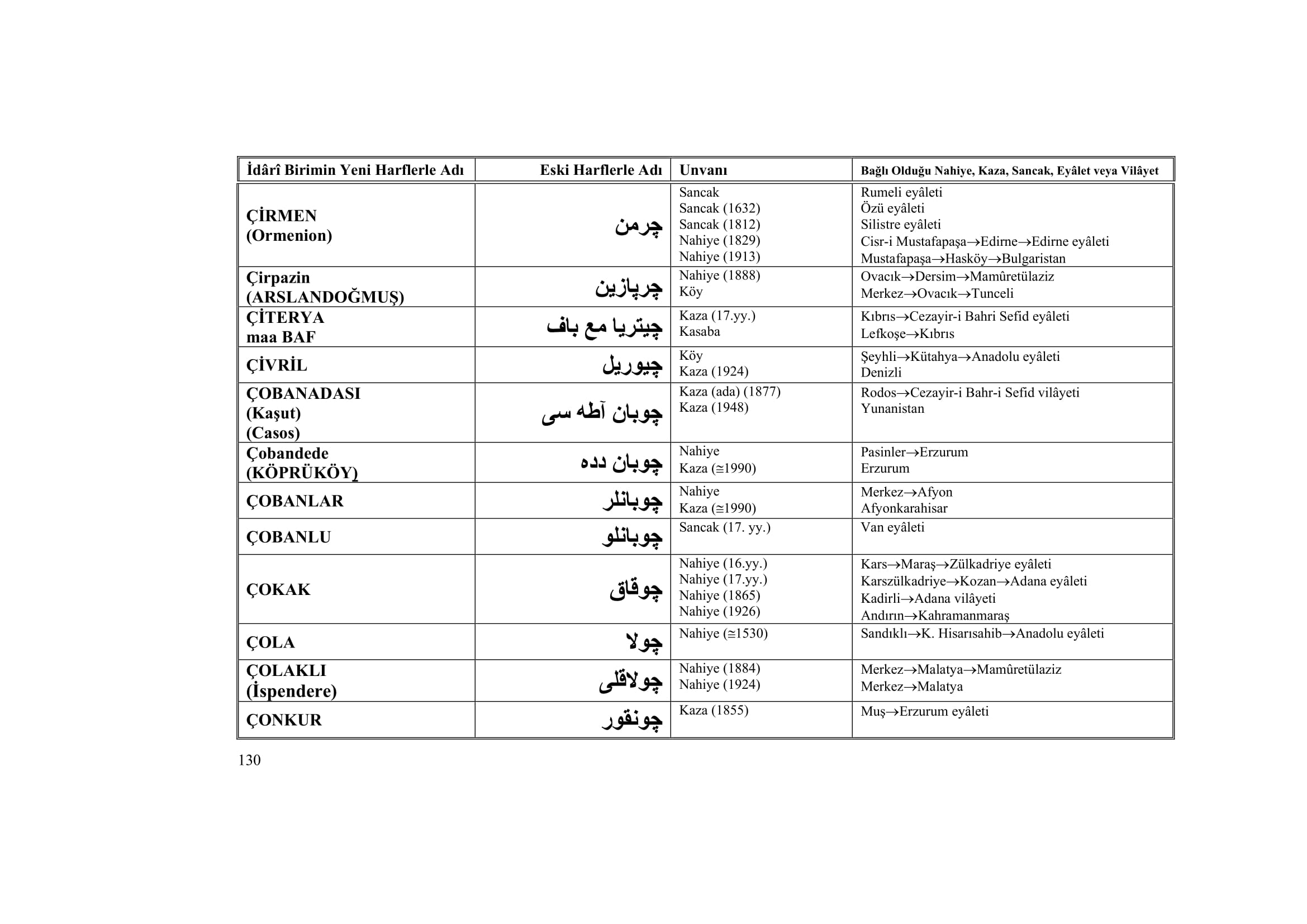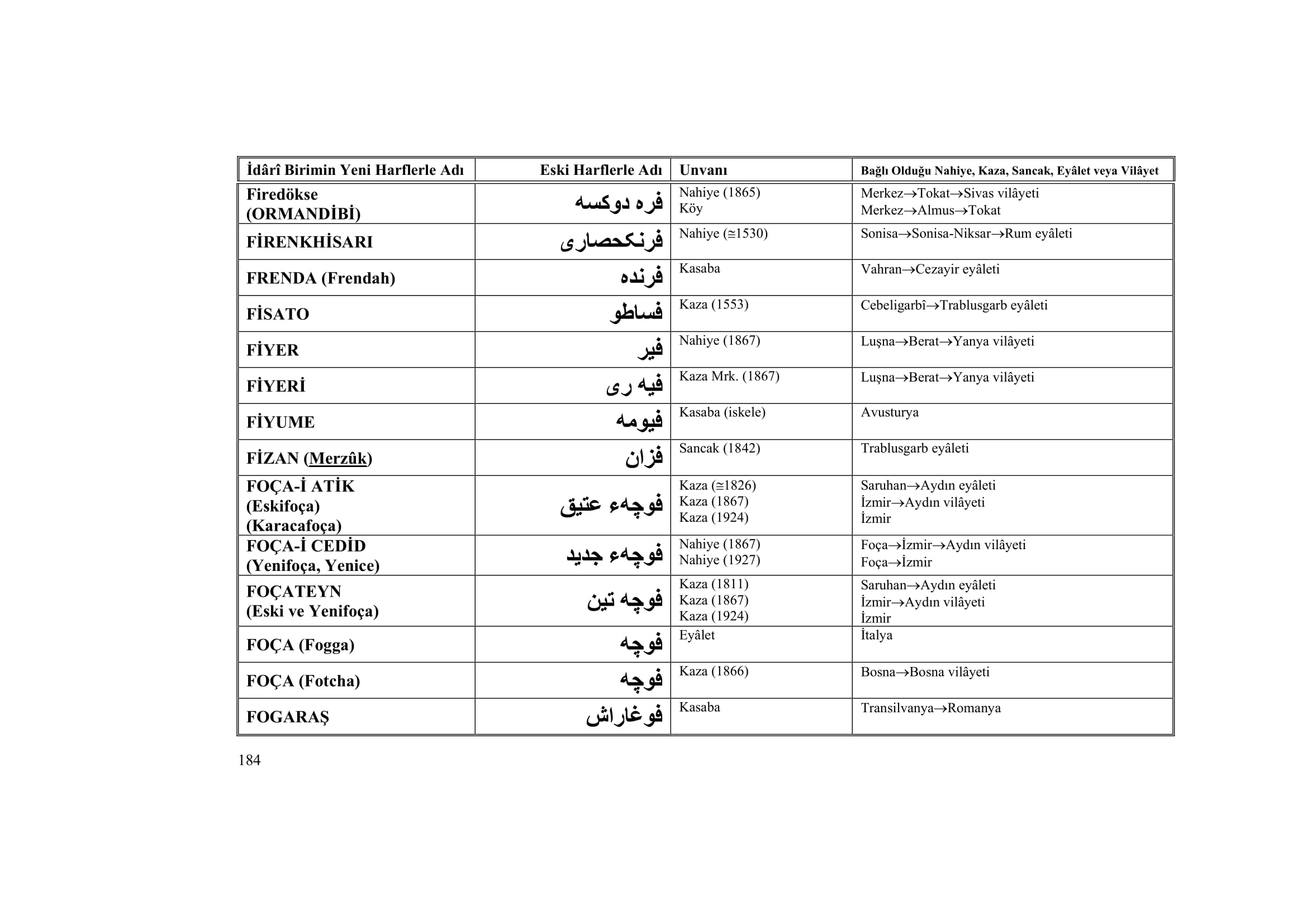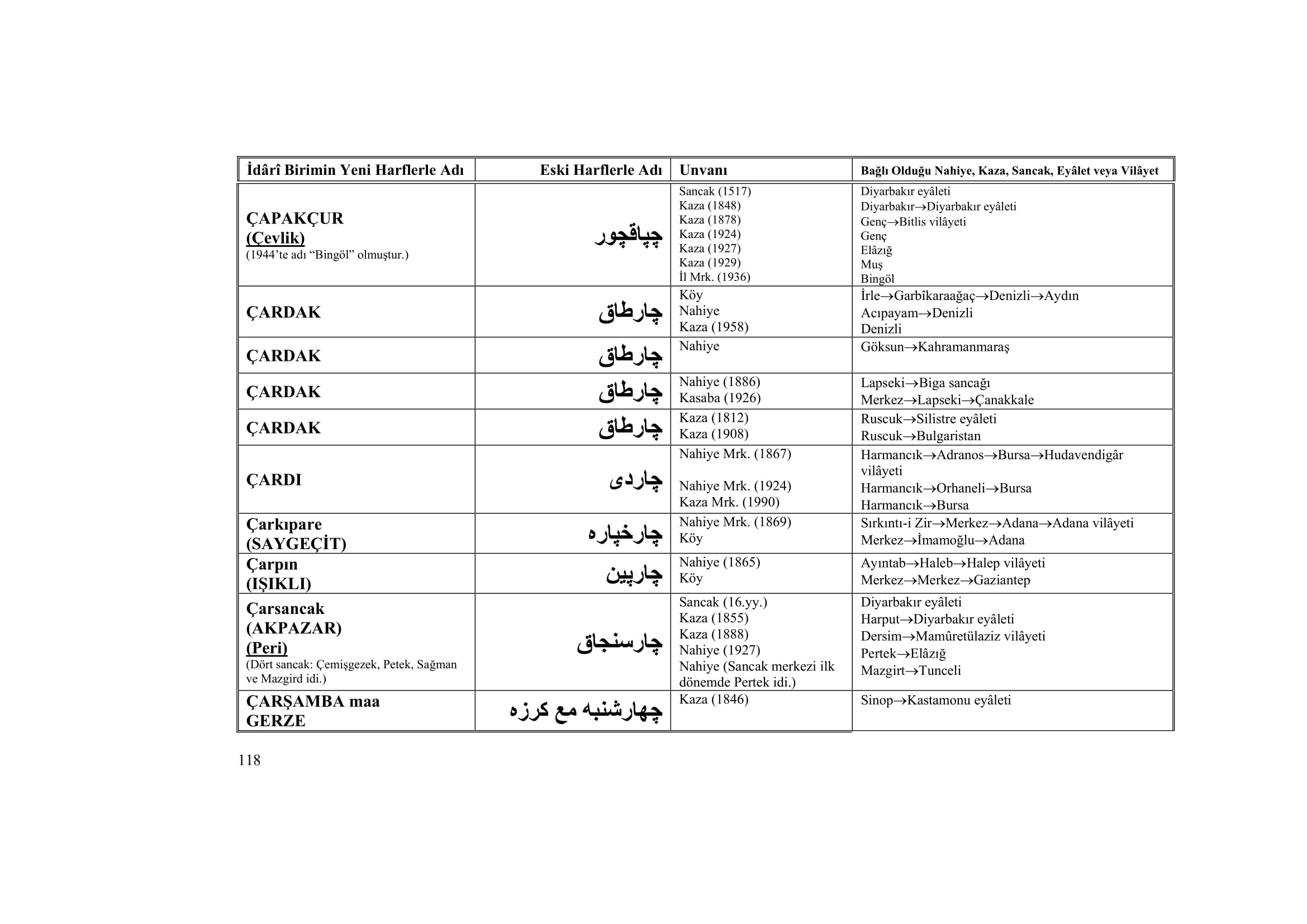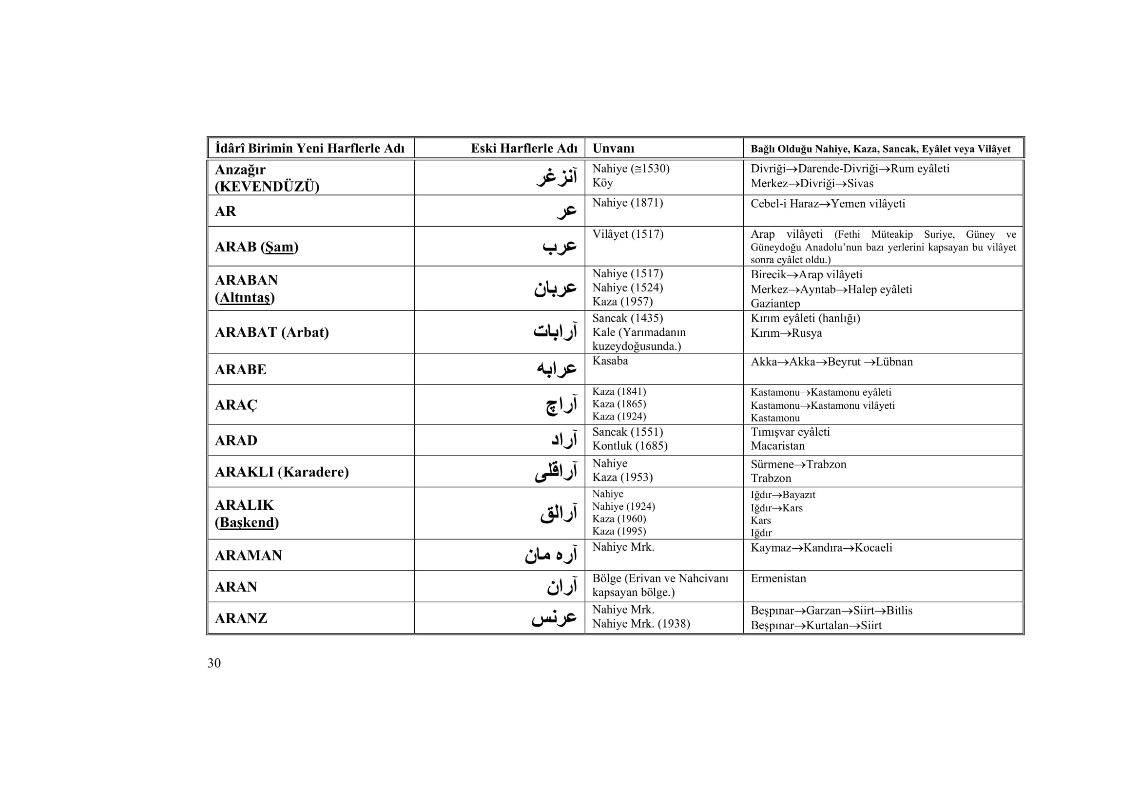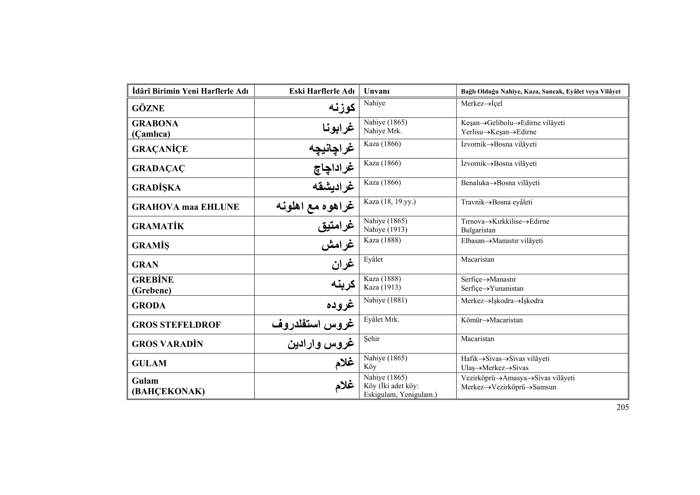 Şu an ismi bir çok kez değişen illerimiz, ilçelerimiz ve o dönemde Osmanlı hakimiyeti altında olan tüm topraklarda bulunan eyalet,vilayet, sancak, kaza ve nahiyeleri eski isimleriyle alfabetik sırada gösteren harika bir kaynakça. Eski ismi ile bildiğiniz ya da o dönem eski ismi ile anılan bir yeri bulmak adına kullanmak için güzel bir arşivdir.