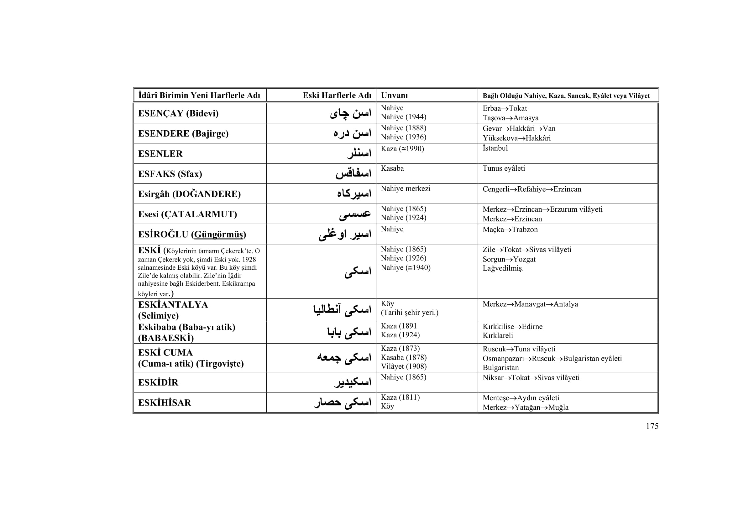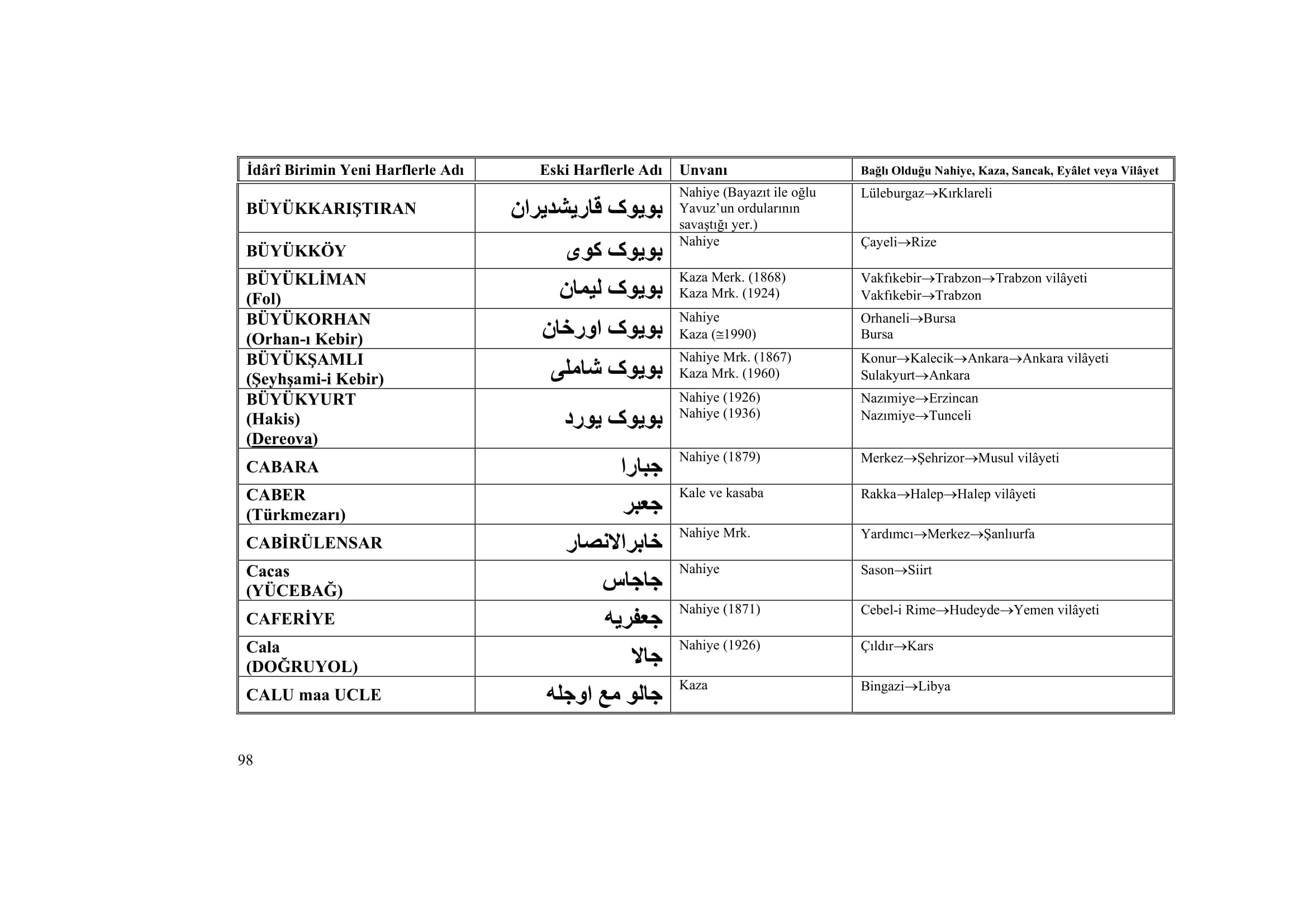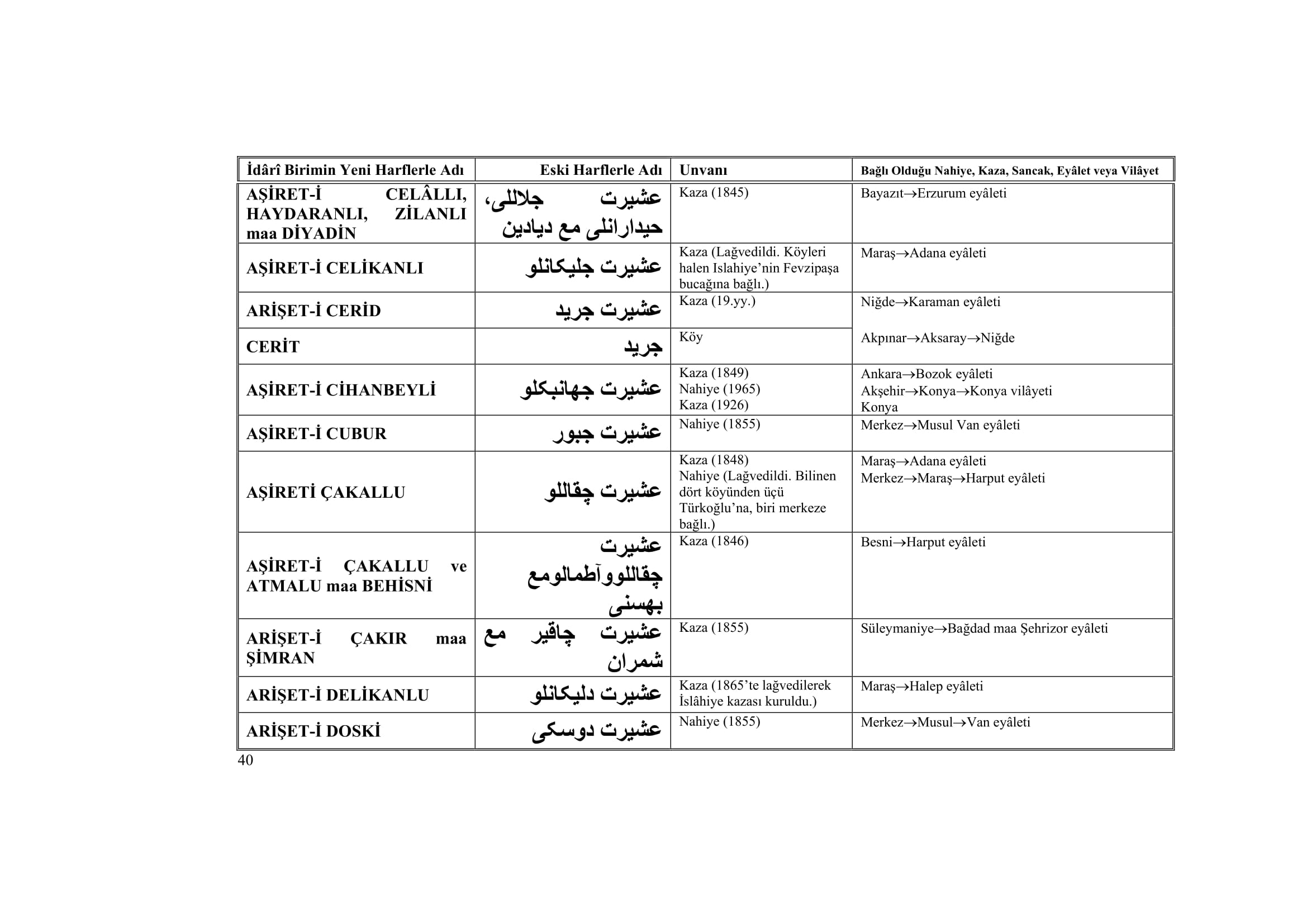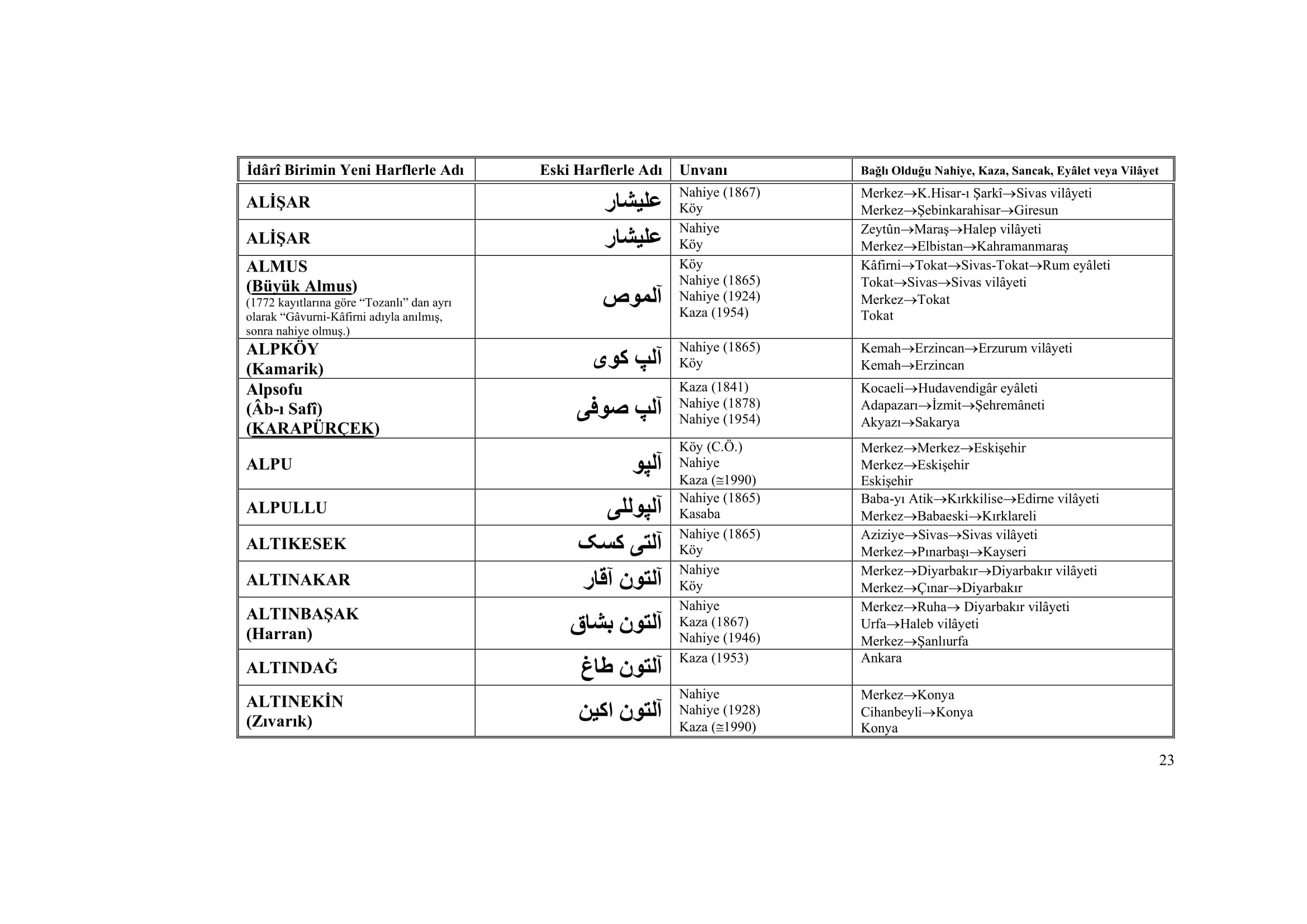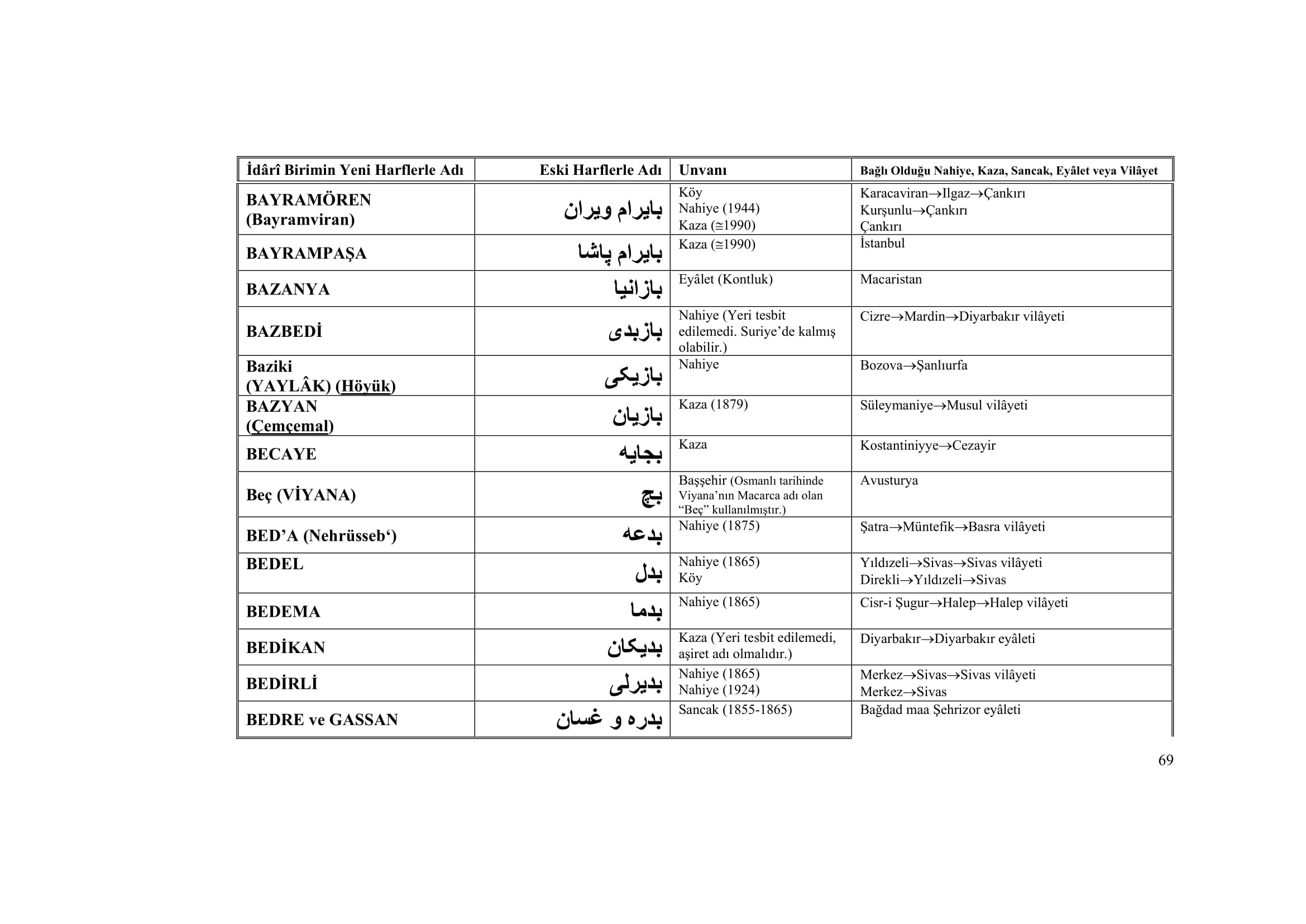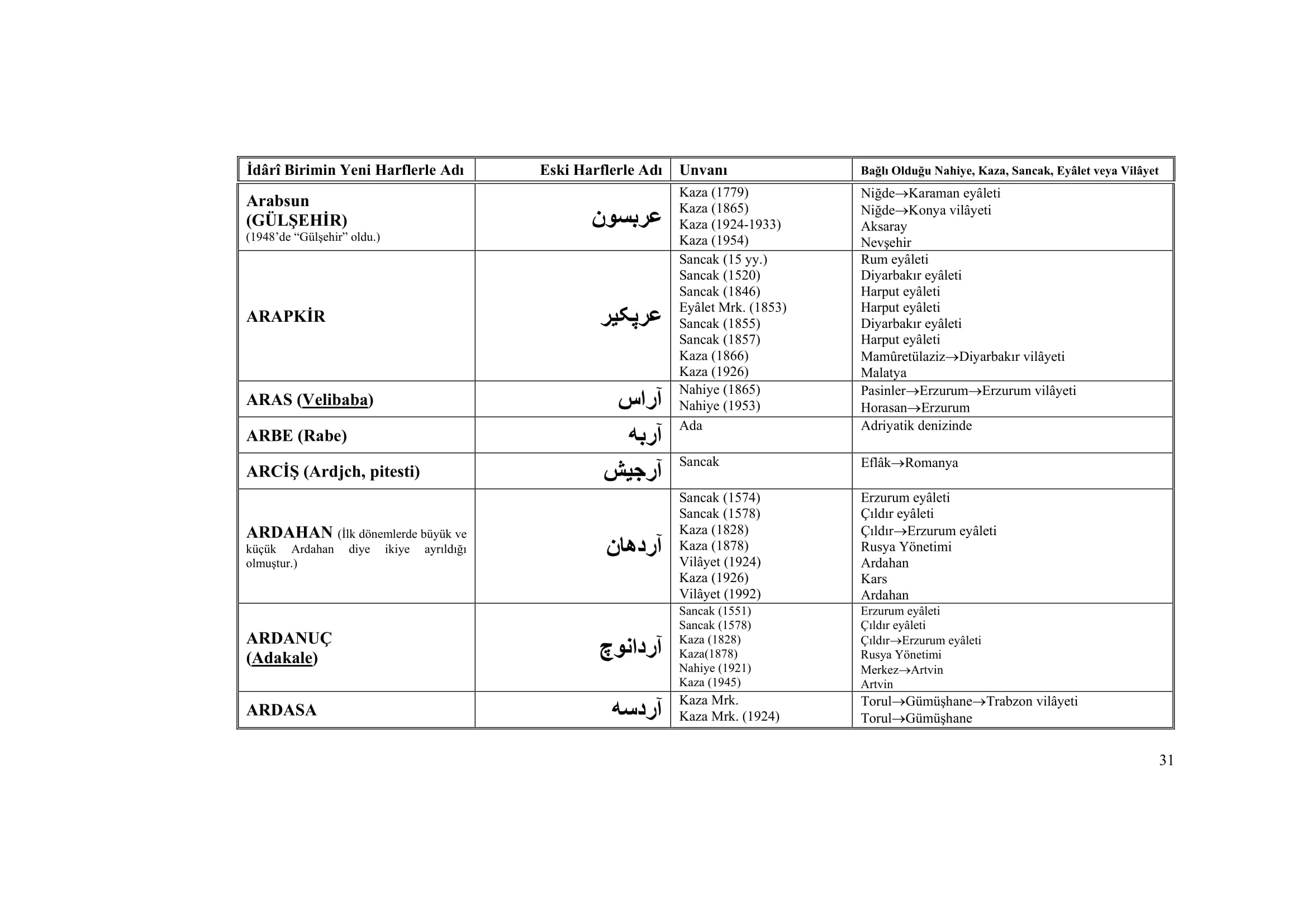 Şu an ismi bir çok kez değişen illerimiz, ilçelerimiz ve o dönemde Osmanlı hakimiyeti altında olan tüm topraklarda bulunan eyalet,vilayet, sancak, kaza ve nahiyeleri eski isimleriyle alfabetik sırada gösteren harika bir kaynakça. Eski ismi ile bildiğiniz ya da o dönem eski ismi ile anılan bir yeri bulmak adına kullanmak için güzel bir arşivdir.