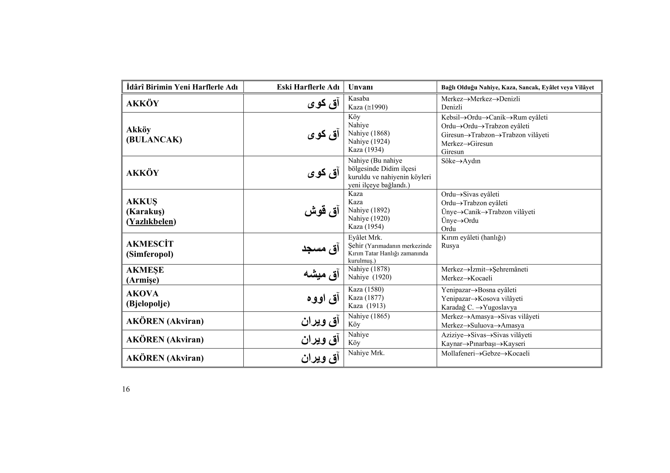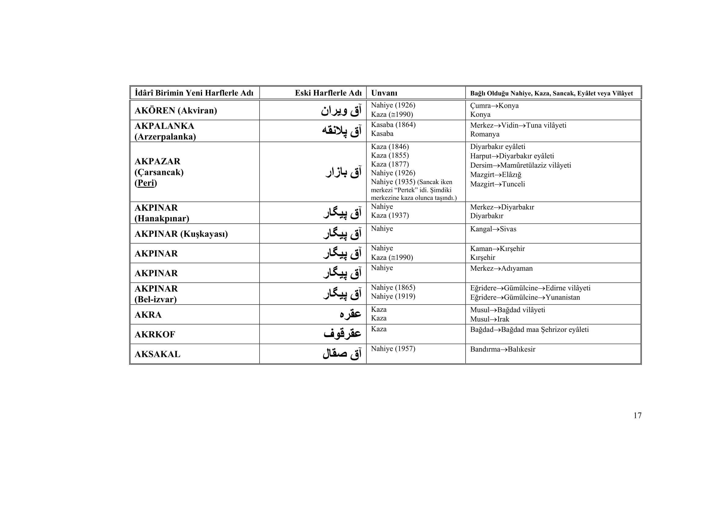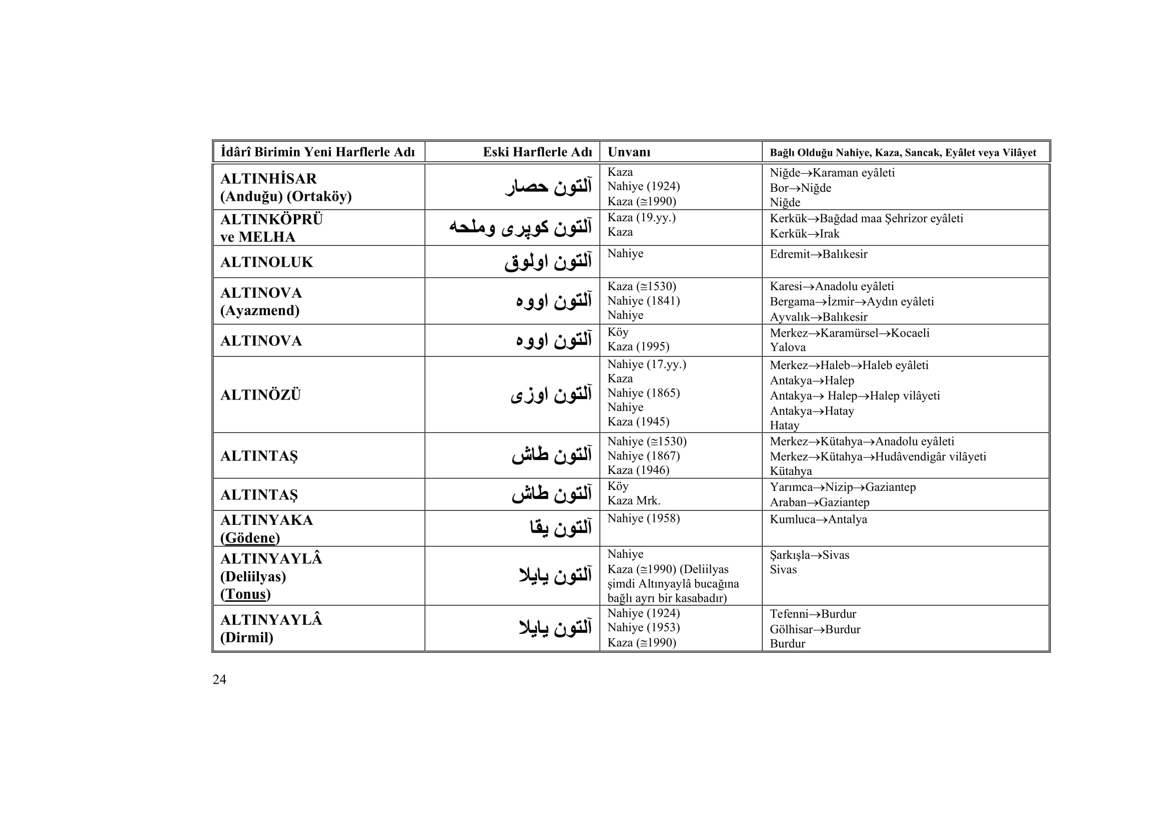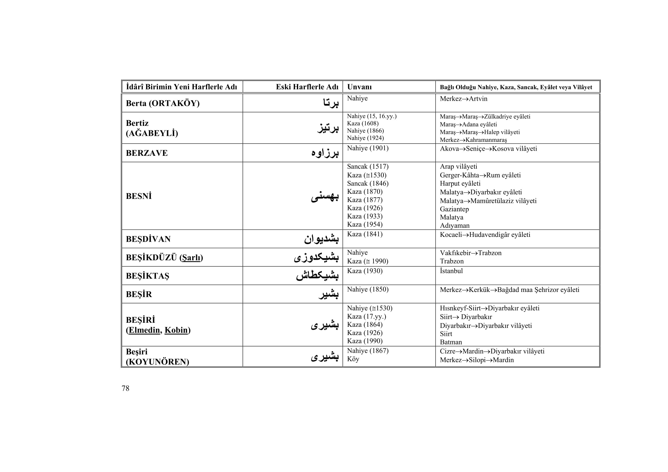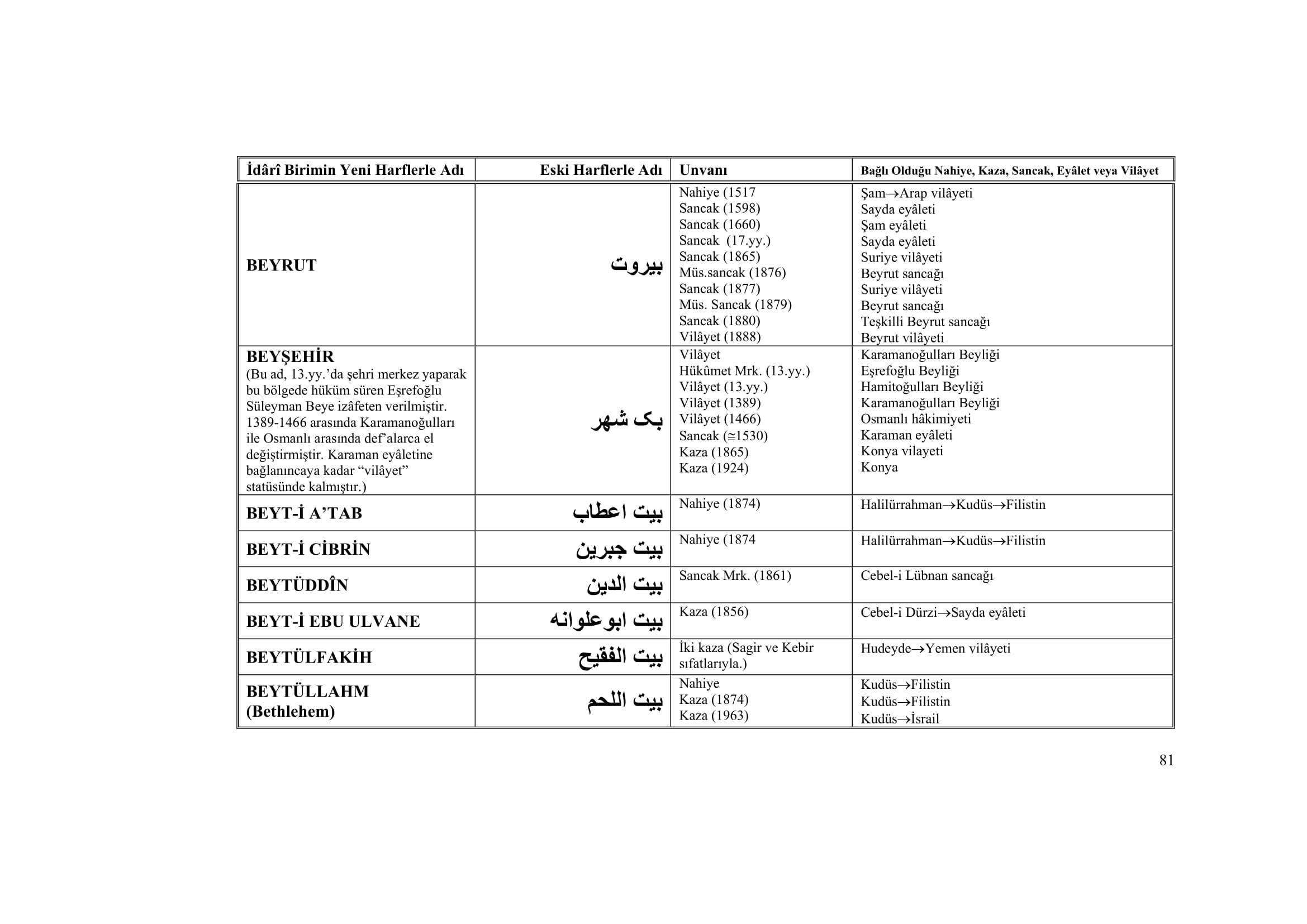 Şu an ismi bir çok kez değişen illerimiz, ilçelerimiz ve o dönemde Osmanlı hakimiyeti altında olan tüm topraklarda bulunan eyalet,vilayet, sancak, kaza ve nahiyeleri eski isimleriyle alfabetik sırada gösteren harika bir kaynakça. Eski ismi ile bildiğiniz ya da o dönem eski ismi ile anılan bir yeri bulmak adına kullanmak için güzel bir arşivdir.