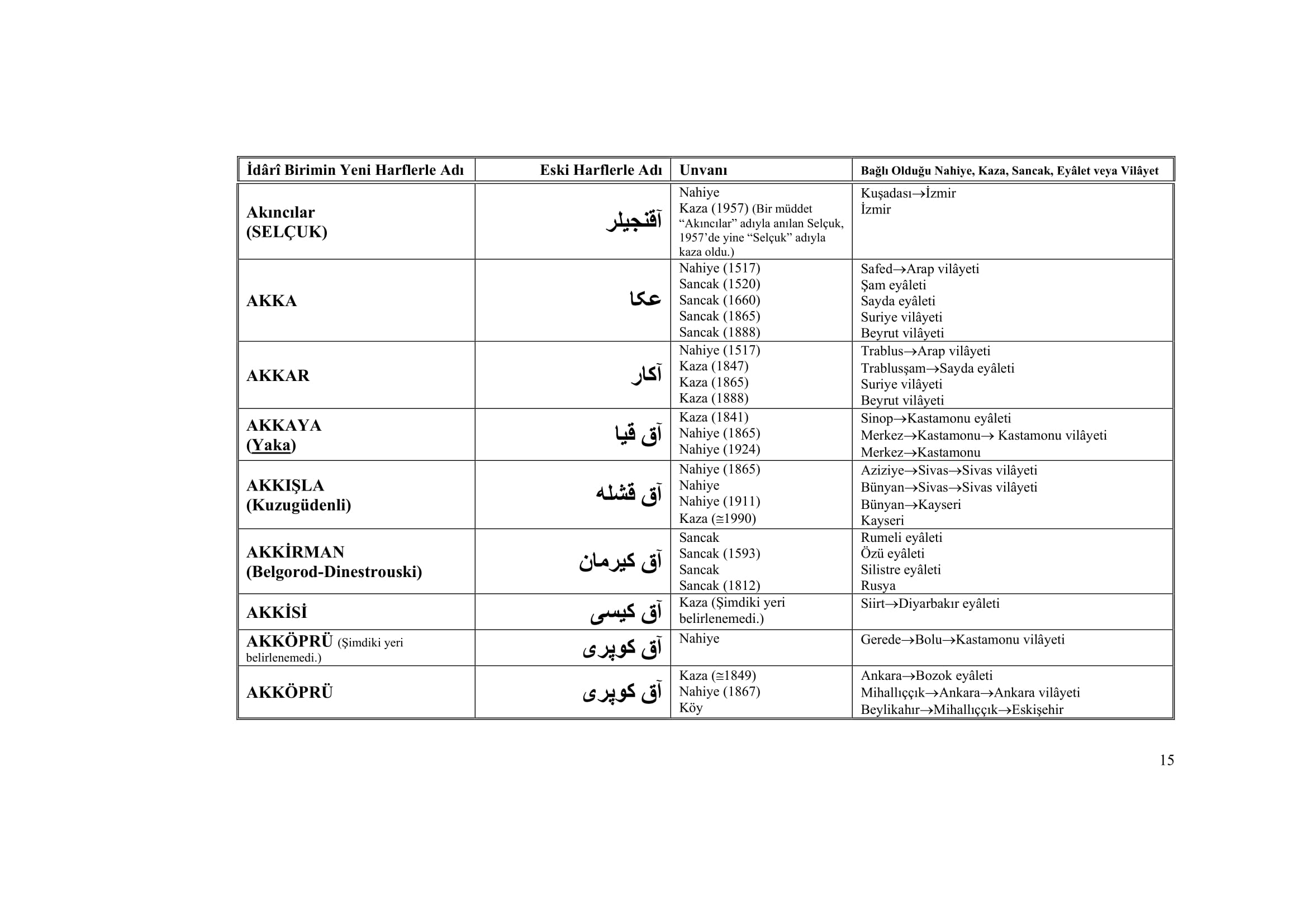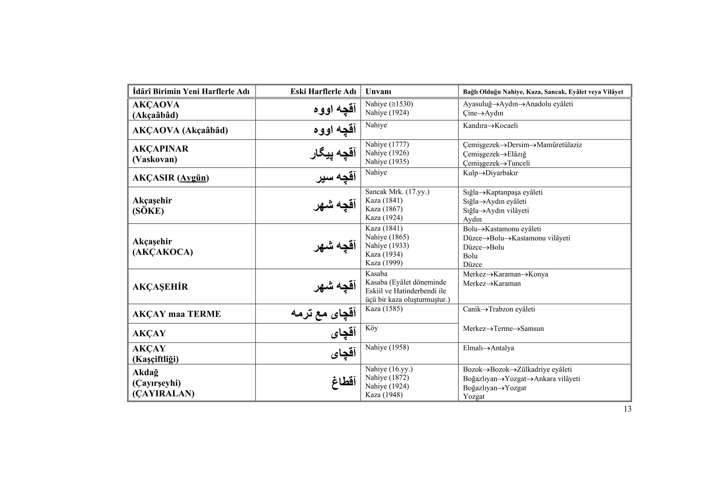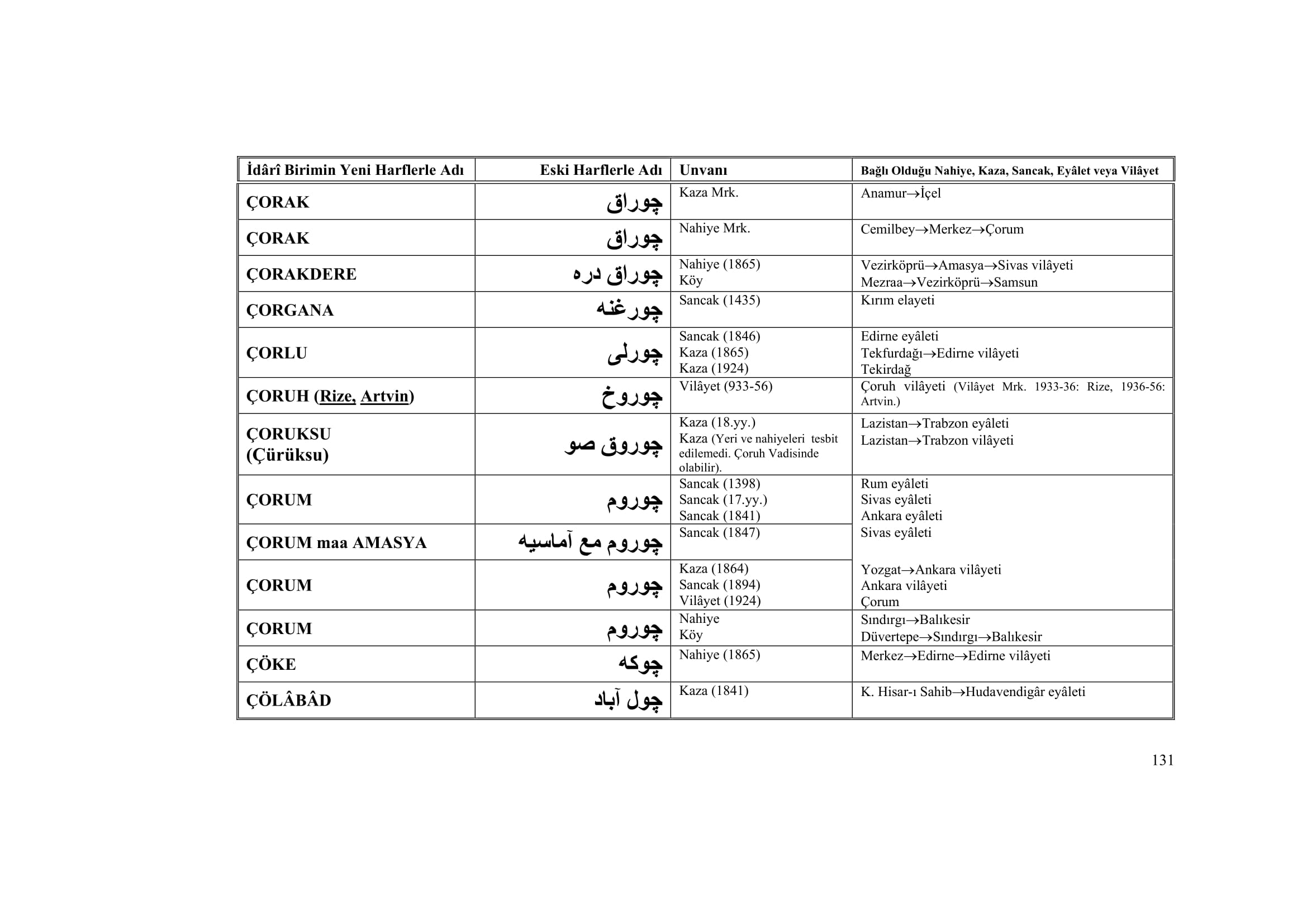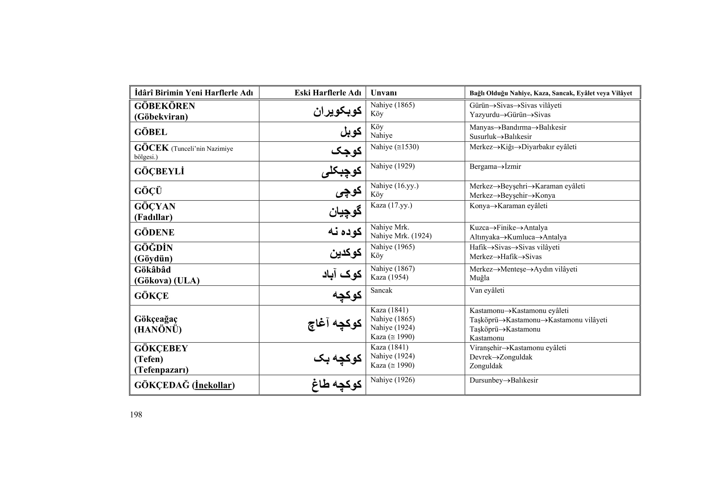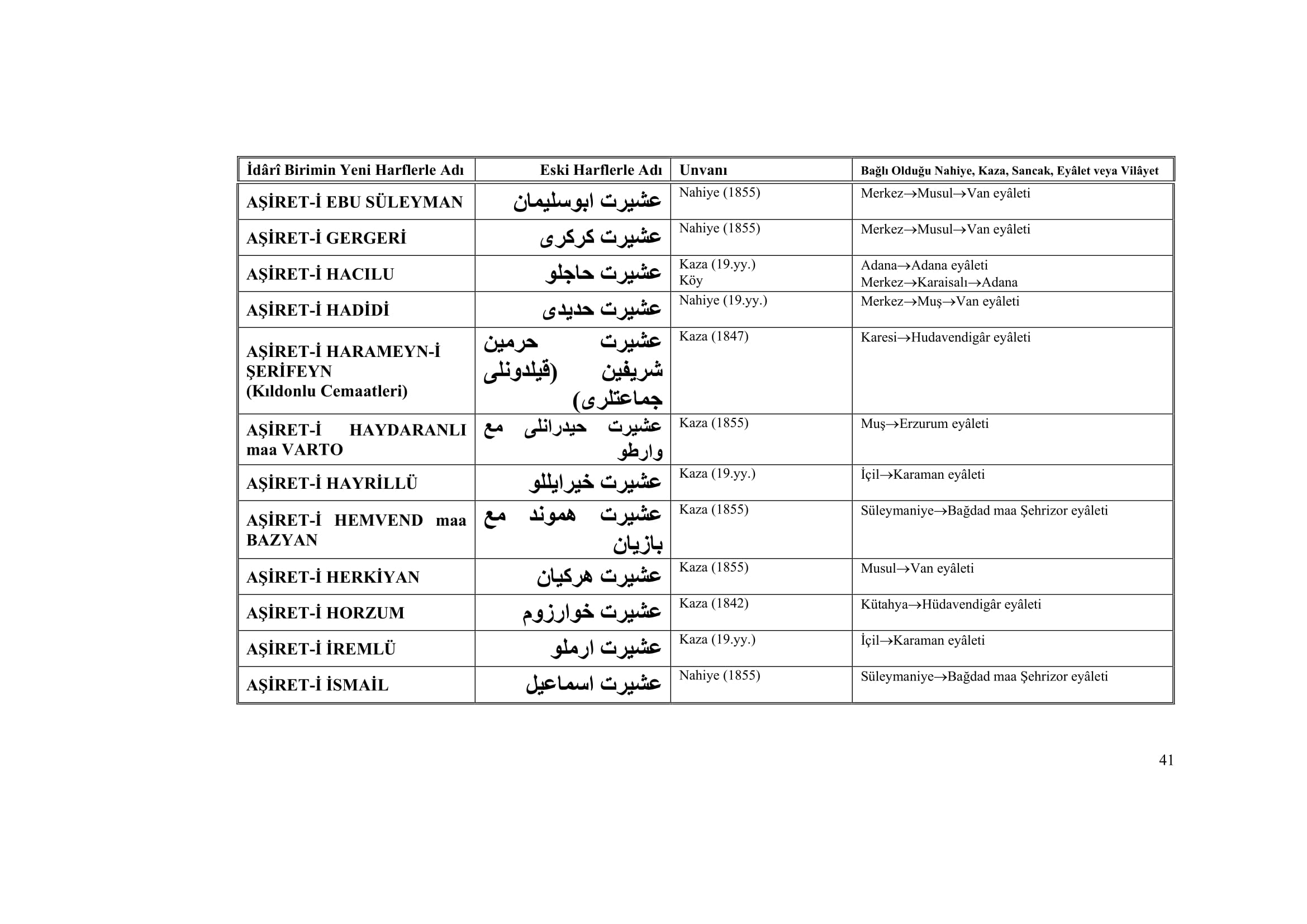 Şu an ismi bir çok kez değişen illerimiz, ilçelerimiz ve o dönemde Osmanlı hakimiyeti altında olan tüm topraklarda bulunan eyalet,vilayet, sancak, kaza ve nahiyeleri eski isimleriyle alfabetik sırada gösteren harika bir kaynakça. Eski ismi ile bildiğiniz ya da o dönem eski ismi ile anılan bir yeri bulmak adına kullanmak için güzel bir arşivdir.