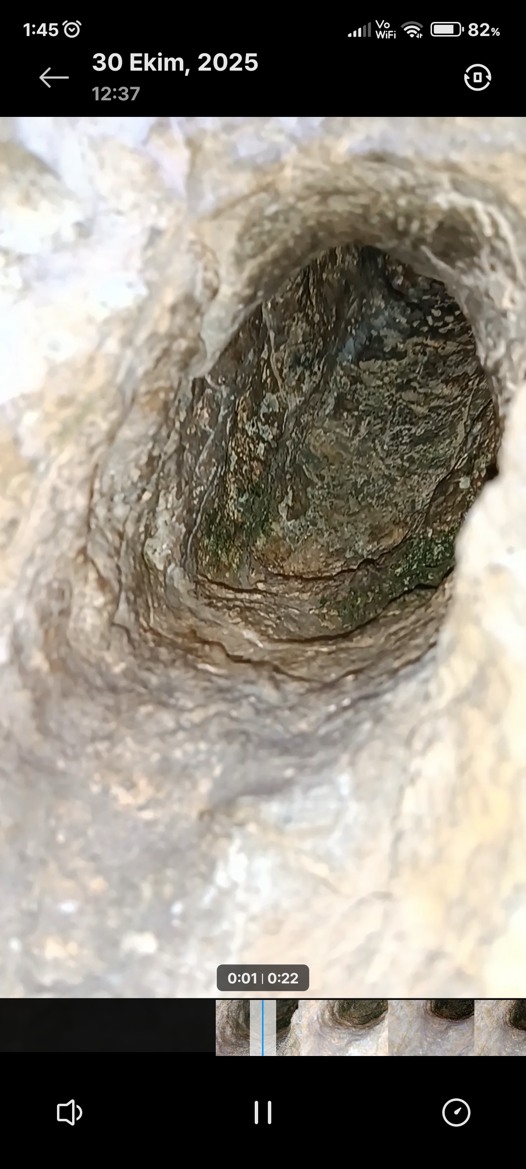 Merhaba daha çok tünel havalandırma görünüşe göre erozyona uğramış deprem bölgesi ise bu şekilde meydana çıkmış olabilir yer çökmüş emniyet siz işlem yapmayın bölgeyi detaylı resimleyin ne olduğu çıkar ortaya ne varsa devamı büyük kayaliga gider kaçış giriş tüneli gibi dusun burayı benim fikrim bu yönde.