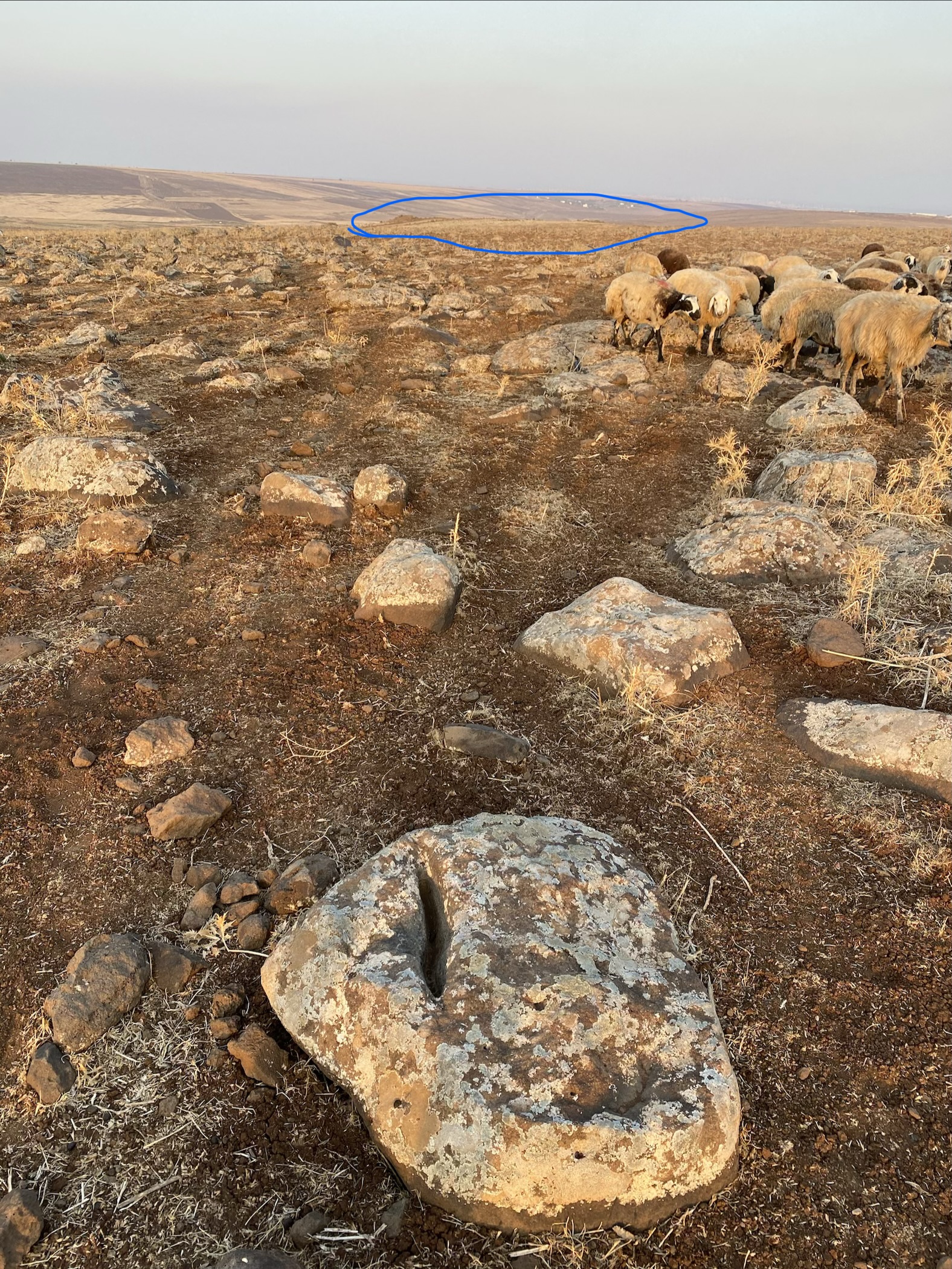 Tümülüs le alakası yok oranın tümülüsler yığmalar kendileri bizzat işarettir işarete gerek yok yığma dedin yer taş öbeği değil yayılmış kayalar üst üste bindirilmiş 1 metre 2 metre yığma çakıl taşı yumruk kadar büyük taşlar olsaydı önemli olurdu nasibin bol olsun