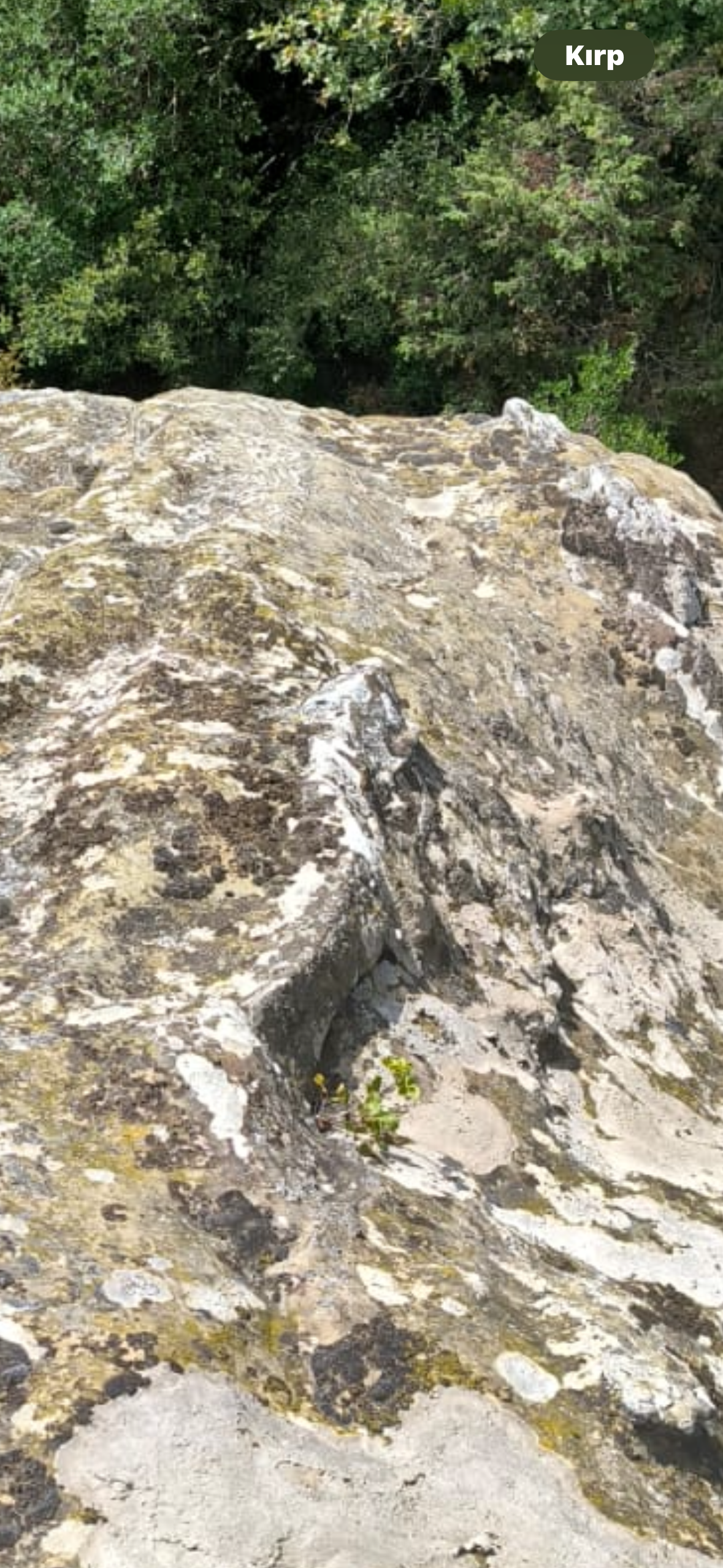 Selamın aleyküm ustalar iki tane üst üste bindirilmiş 10 metre uzunluğunda kaya var en üstünde böyle bir figür var bunun altında ise bir delik var yılan derisi vardı.girişi bulamadık ustalar yorumlarınızı bekliyorum